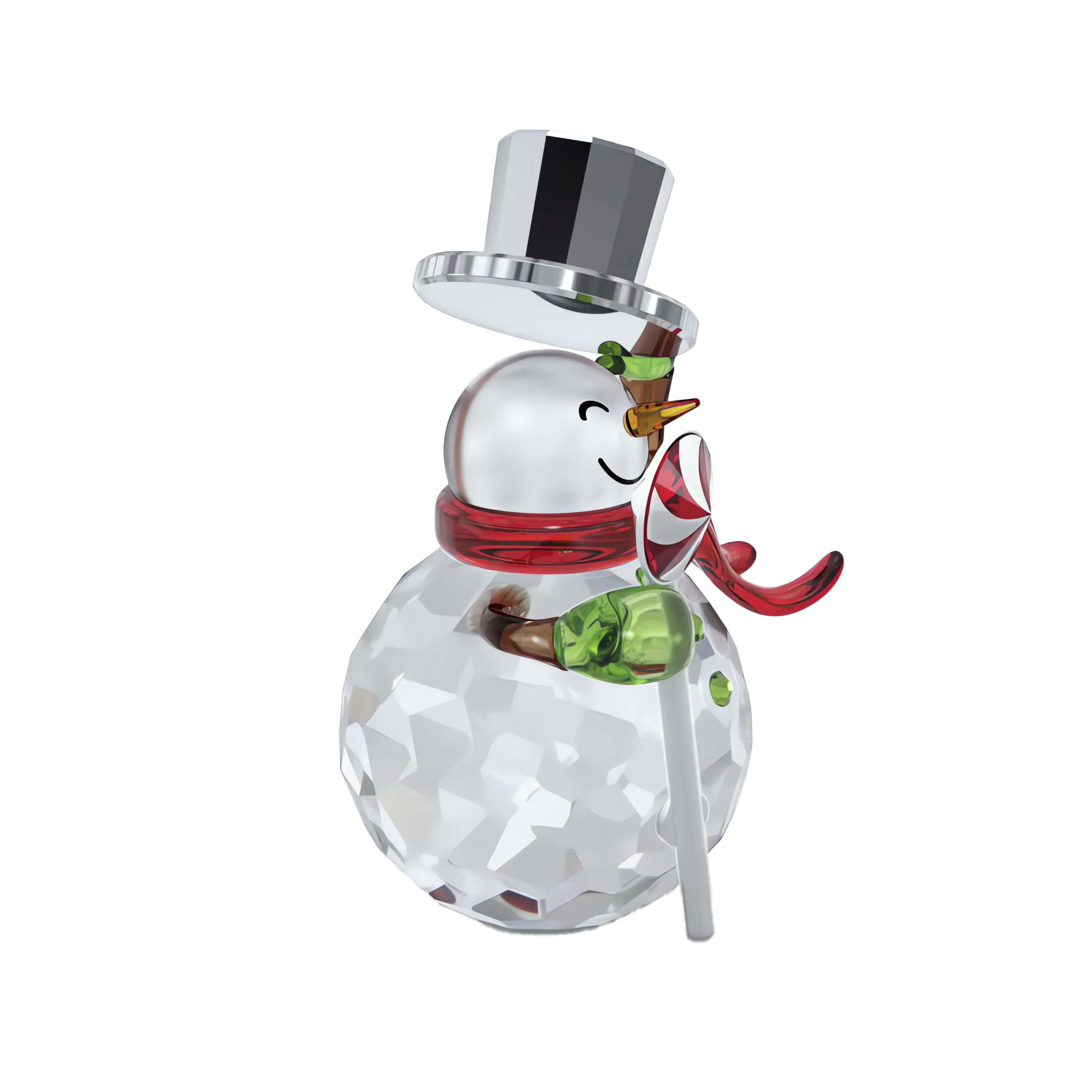 With a tip of his hat,this jolly snowman figurine welcomes in the festive season. The heart-melting design is crafted with 239 facets and features charming details,such as his cozy scarf and lollipop. The crystallized hat has a chrome effect,while metal accents have a lacquered white finish. An adorable piece that will bring seasonal joy to your home. Decoration object. Not a toy. Not suitable for children under 15.