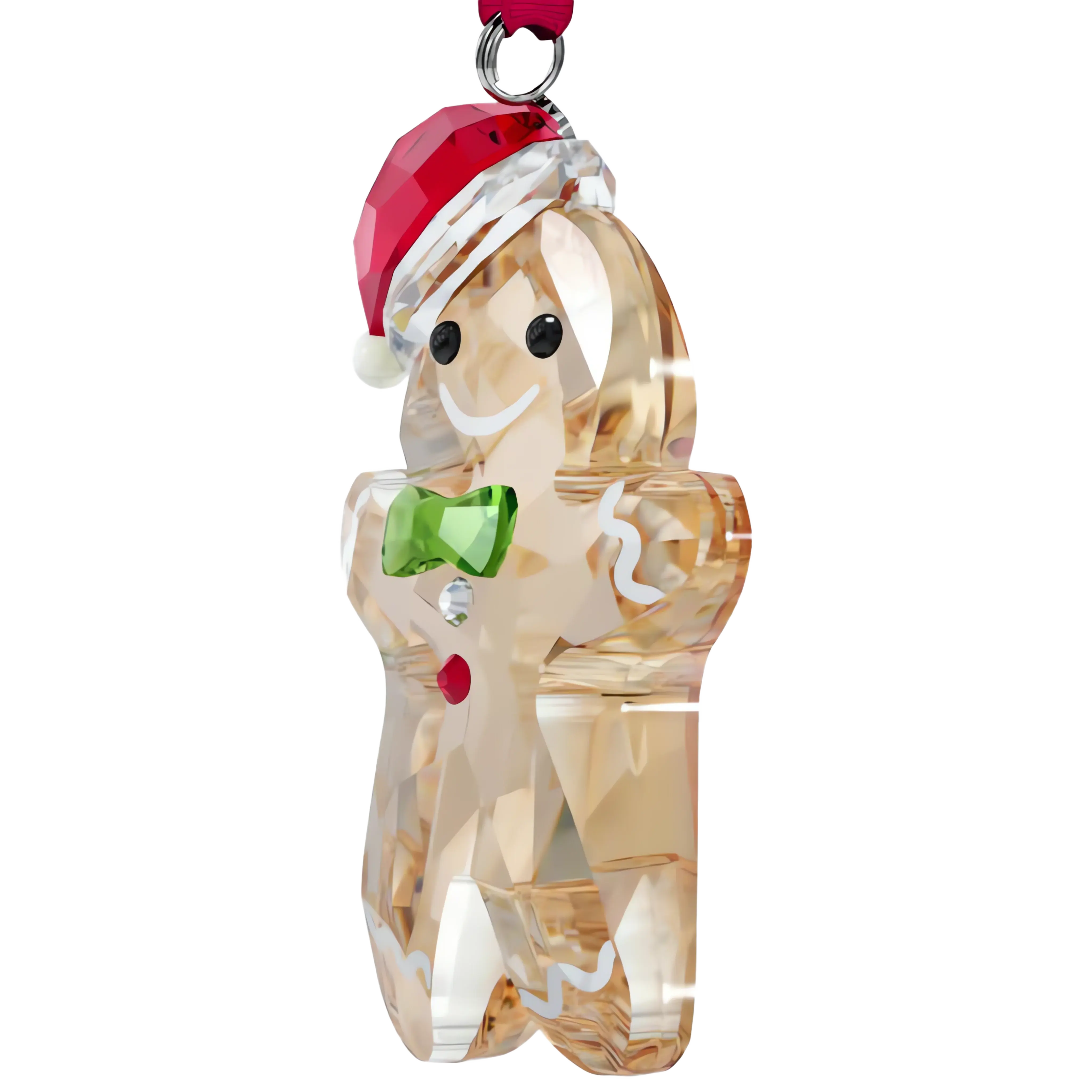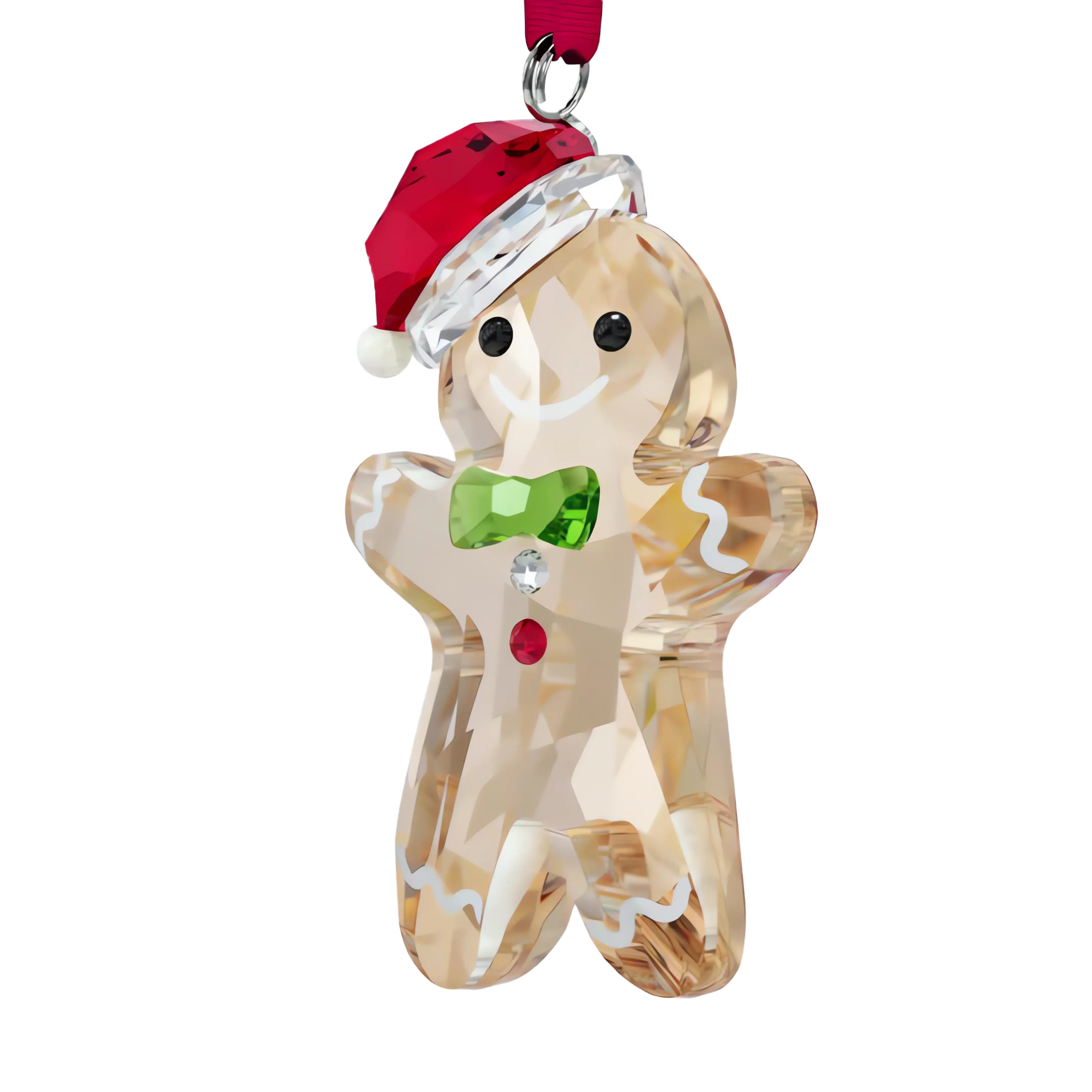 This jolly gingerbread man ornament is a fun addition to your seasonal curation. It shines with 195 facets of gold-toned crystal with white print detailing and green,red,black,and clear crystal accents. A cute and charming character to trim your tree or hang in your window on its red grosgrain rayon ribbon,it will awaken childhood memories of festive baking. A wonderful gift,especially when combined with the other pieces in the nostalgic Holiday Cheers collection. Decoration object. Not a toy. Not suitable for children under 15.