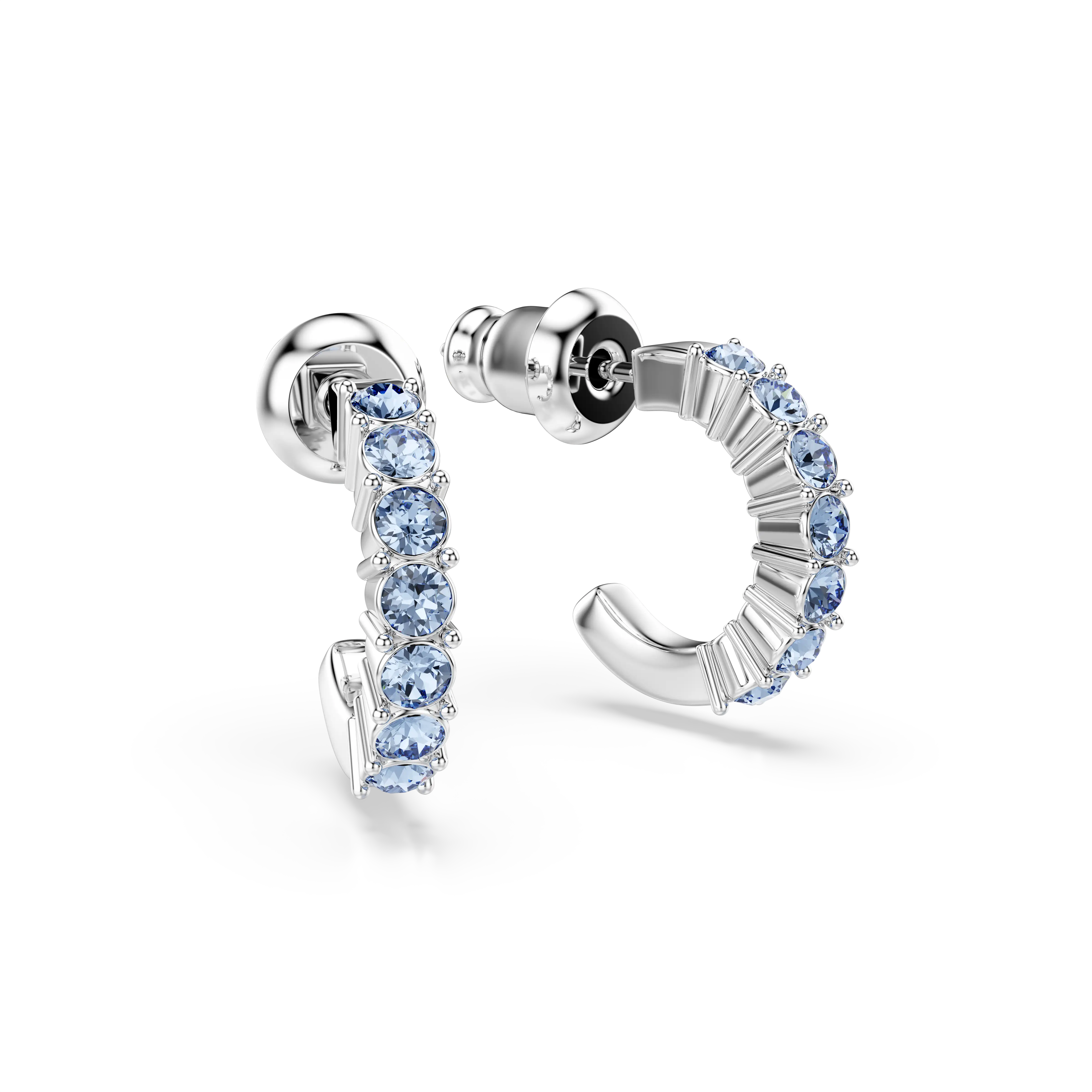 Essential to any wardrobe,pierced mini hoops can add a classic touch of luxury to your work or weekend look. Each of these pieces is rhodium plated and radiantly adorned with a pavé of light blue crystals for instant impact. A go-to favorite you can wear time and time again.