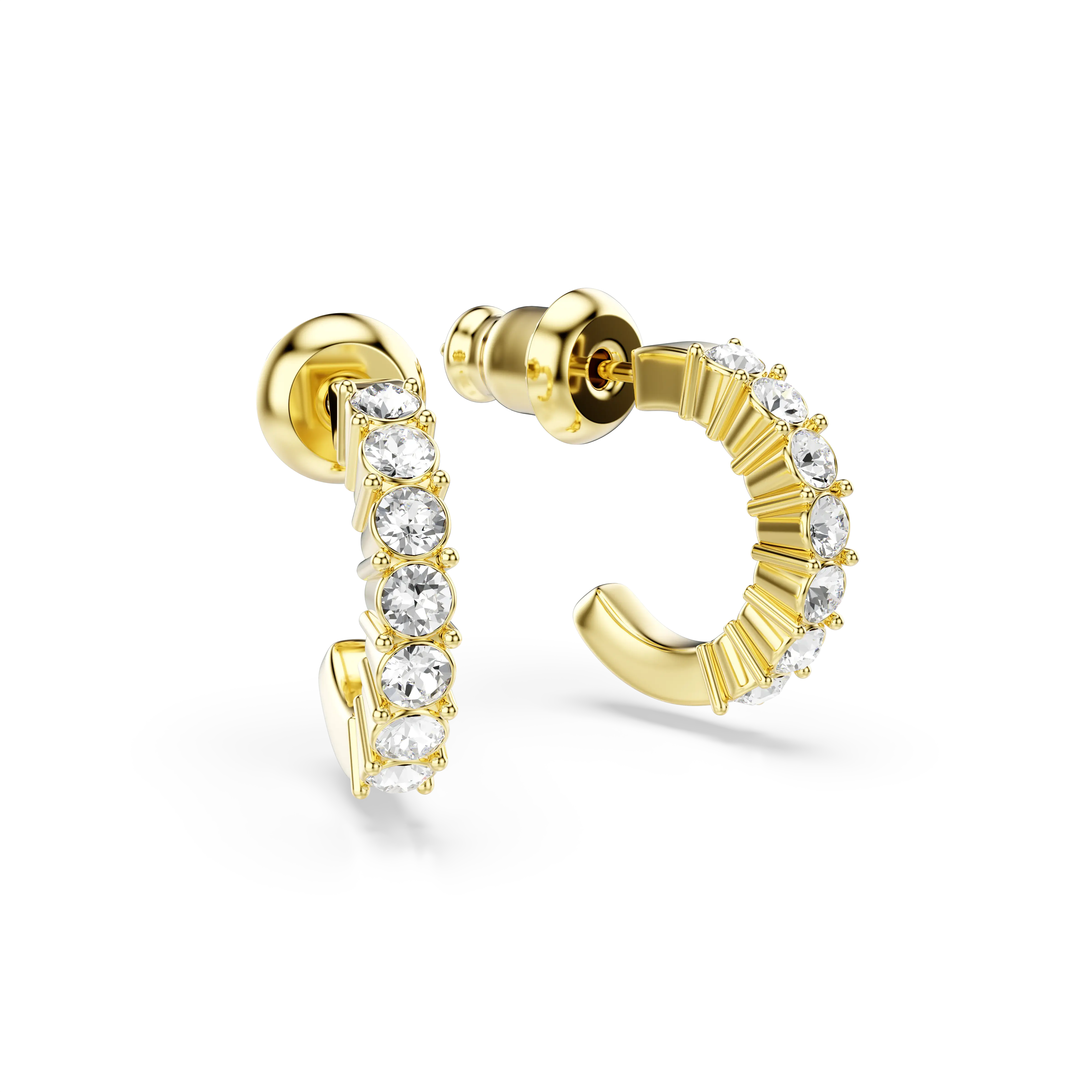 Essential to any wardrobe,pierced mini hoops can add a touch of luxury to your work or weekend look. Each of these pieces is gold-tone plated and radiantly adorned with a pavé of clear crystals for instant impact. A go-to favorite you can wear time and time again.