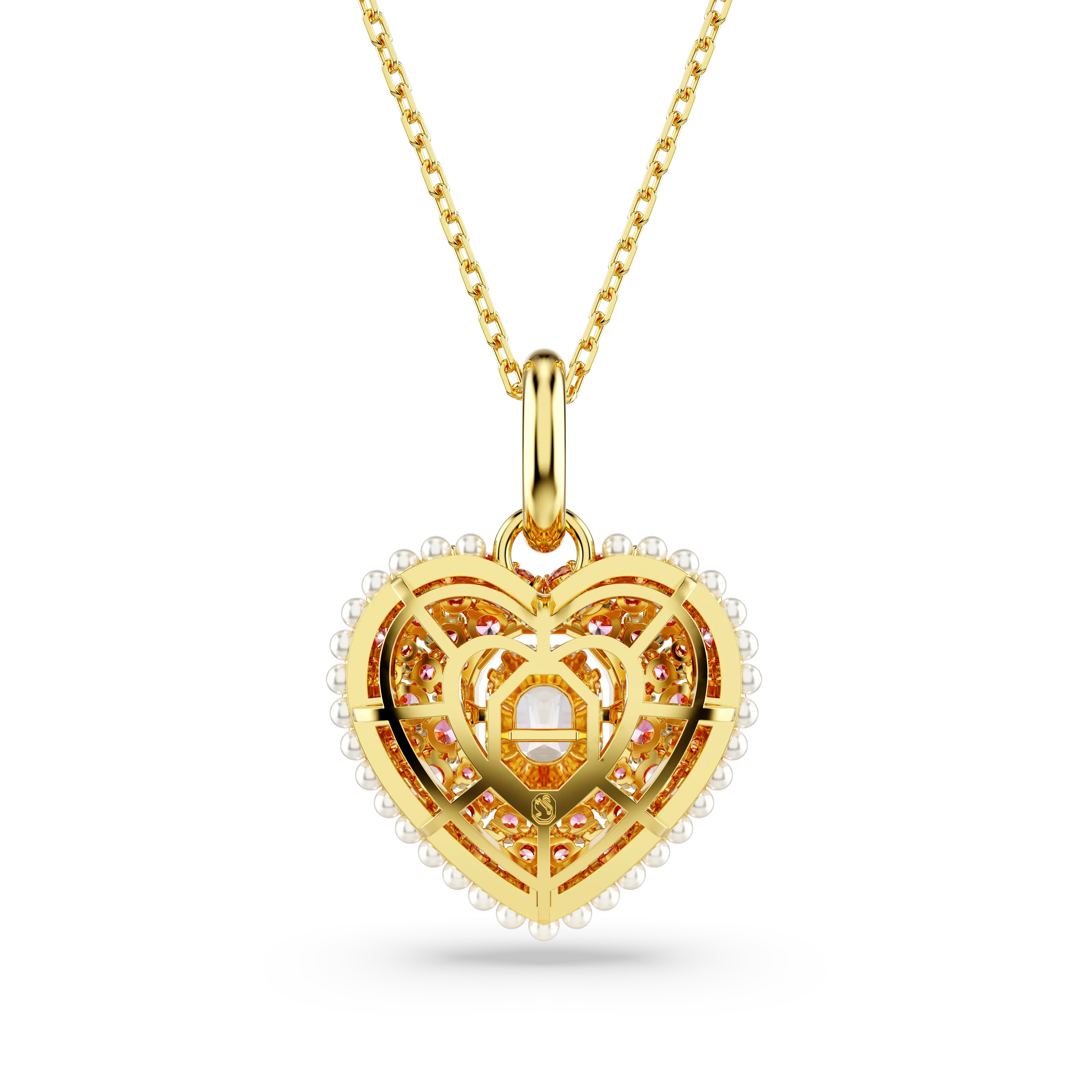 Hyperbola pendant Octagon cut/Crystal pearls/Heart/Pink/Gold-tone plated