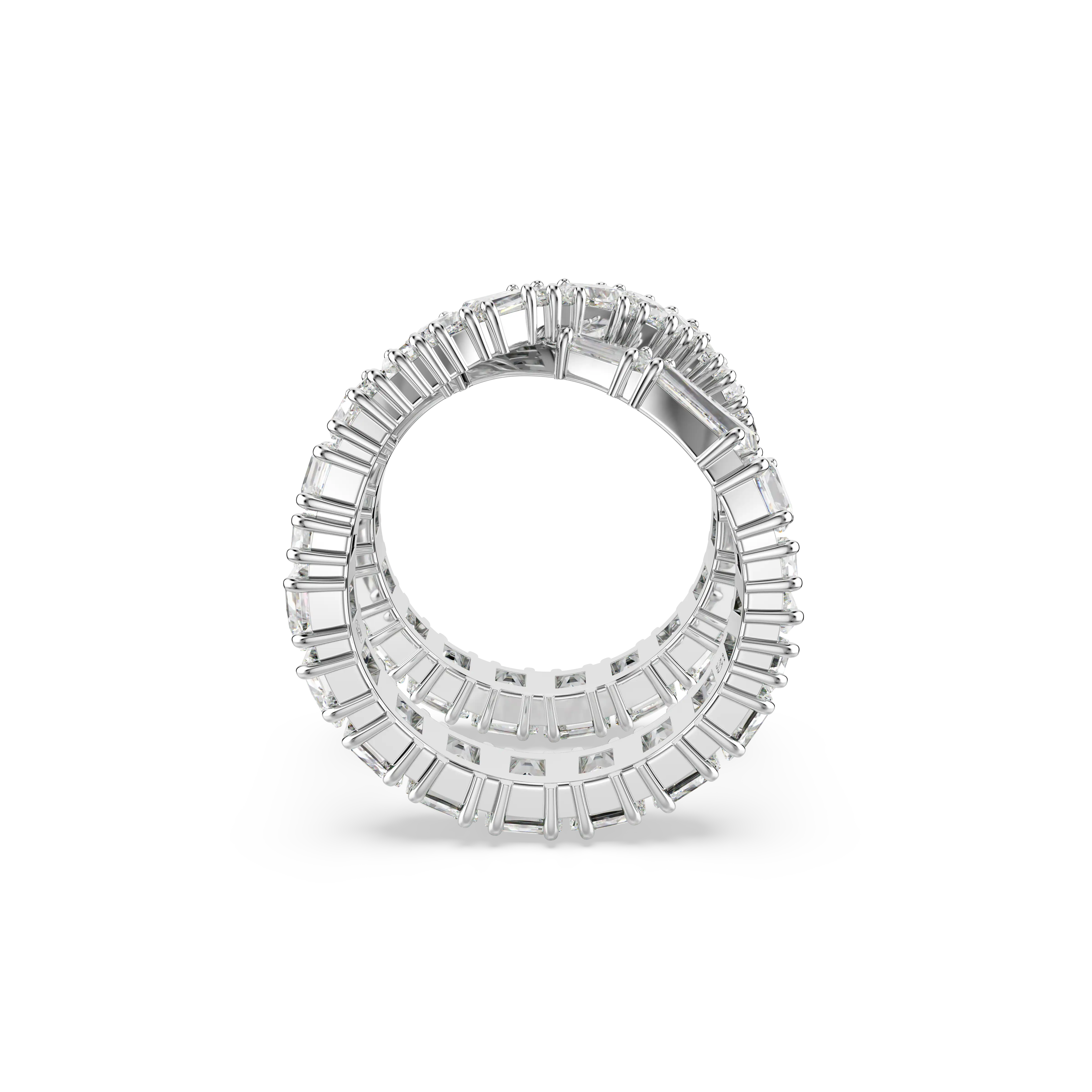 Inspired by the elegant and timeless infinity motif,this mesmerizing Hyperbola ring is a unique way to energize your style. The rhodium-plated jewelry features a never-ending band,which crosses over at the middle. Brightly embellished with an array of clear Swarovski Zirconia,the versatile piece can be worn either way around depending on your mood. Pair this ring with a matching bangle or necklace for ultimate evening glamour.