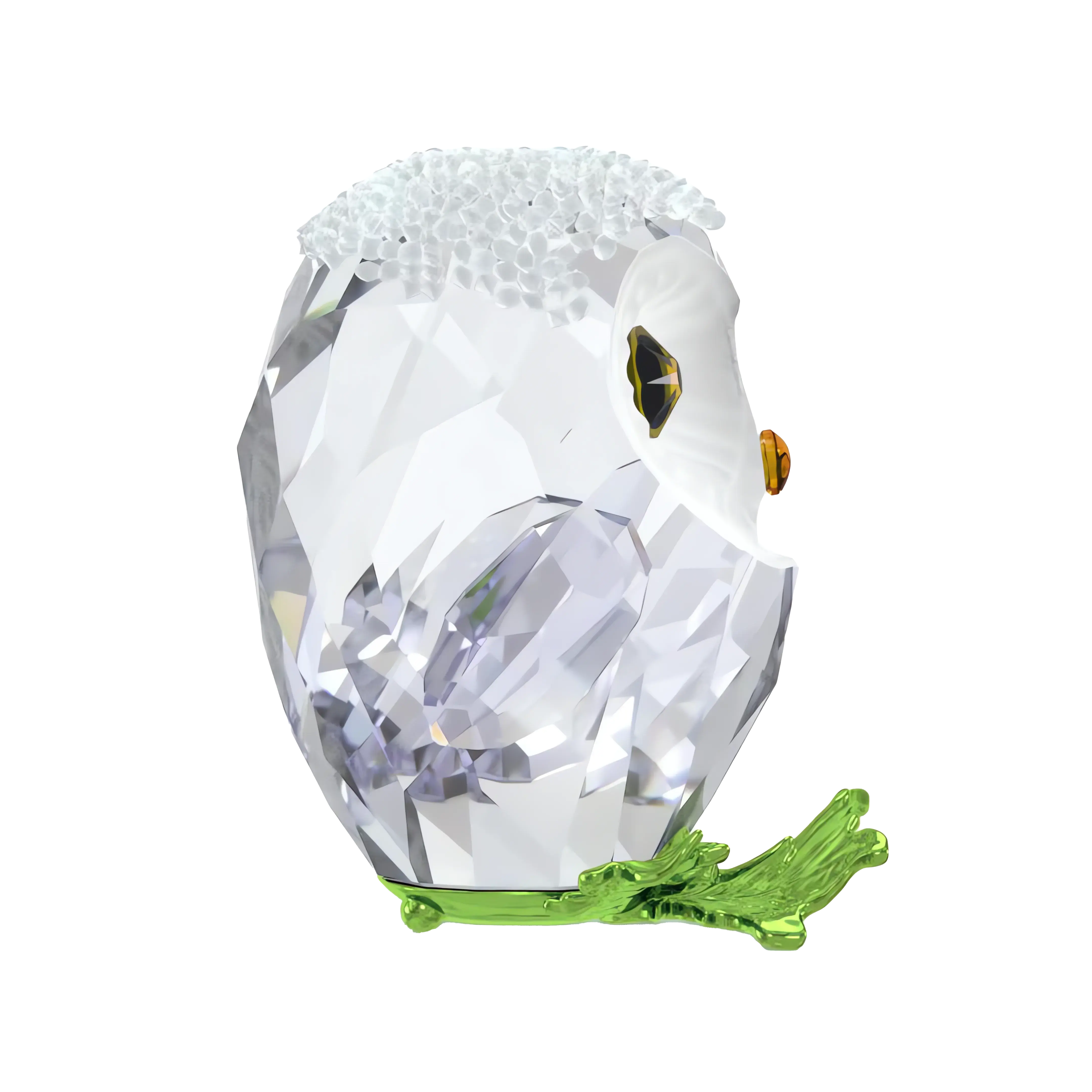 With its bright wide eyes and snow-covered head,this baby owl is irresistibly charming. Inspired by the Idyllia family,the ornament is crafted from 226 facets and approximately 420 crystal rocks. The owl sits atop a branch that is formed from metal with a green surface finish. An enchanting piece that is sure to bring joy to your home décor. Decoration object. Not a toy. Not suitable for children under 15.