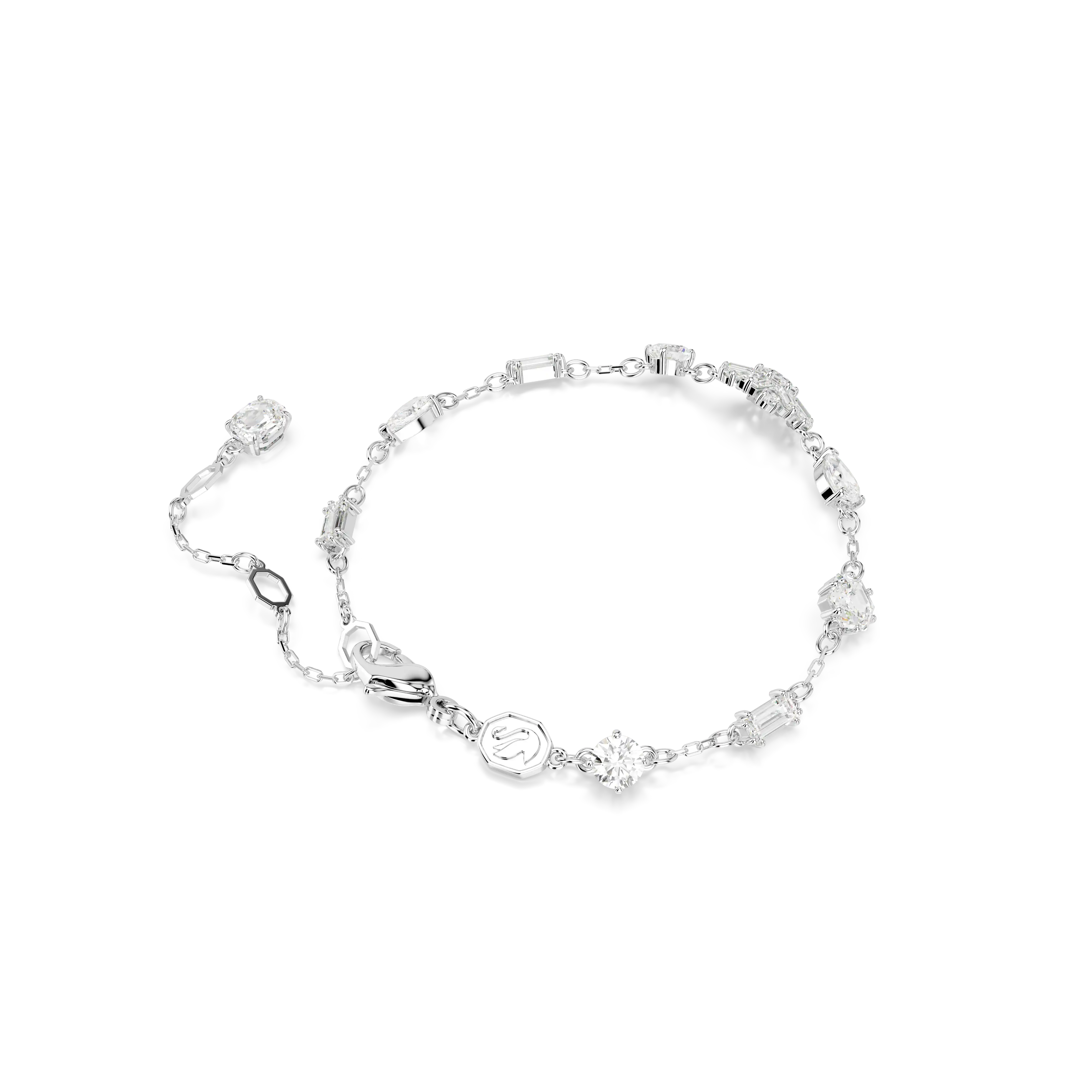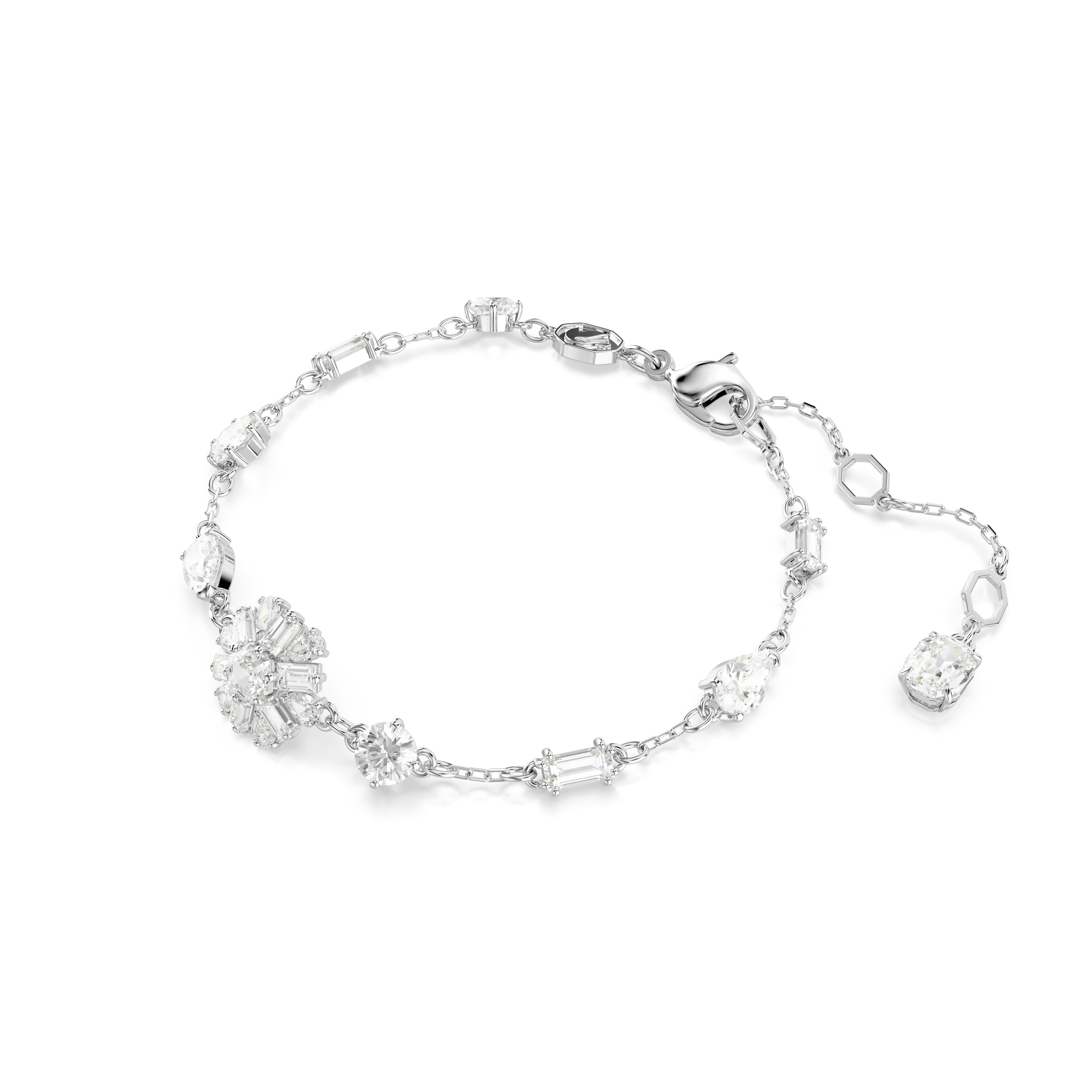 Magical and mesmerizing,this ice-inspired bracelet is the perfect statement piece. The rhodium plated jewelry features a delicate chain,accented with clear Swarovski Zirconia in various shapes,and a stunning central snowflake motif. Style with matching earrings to shine even brighter.