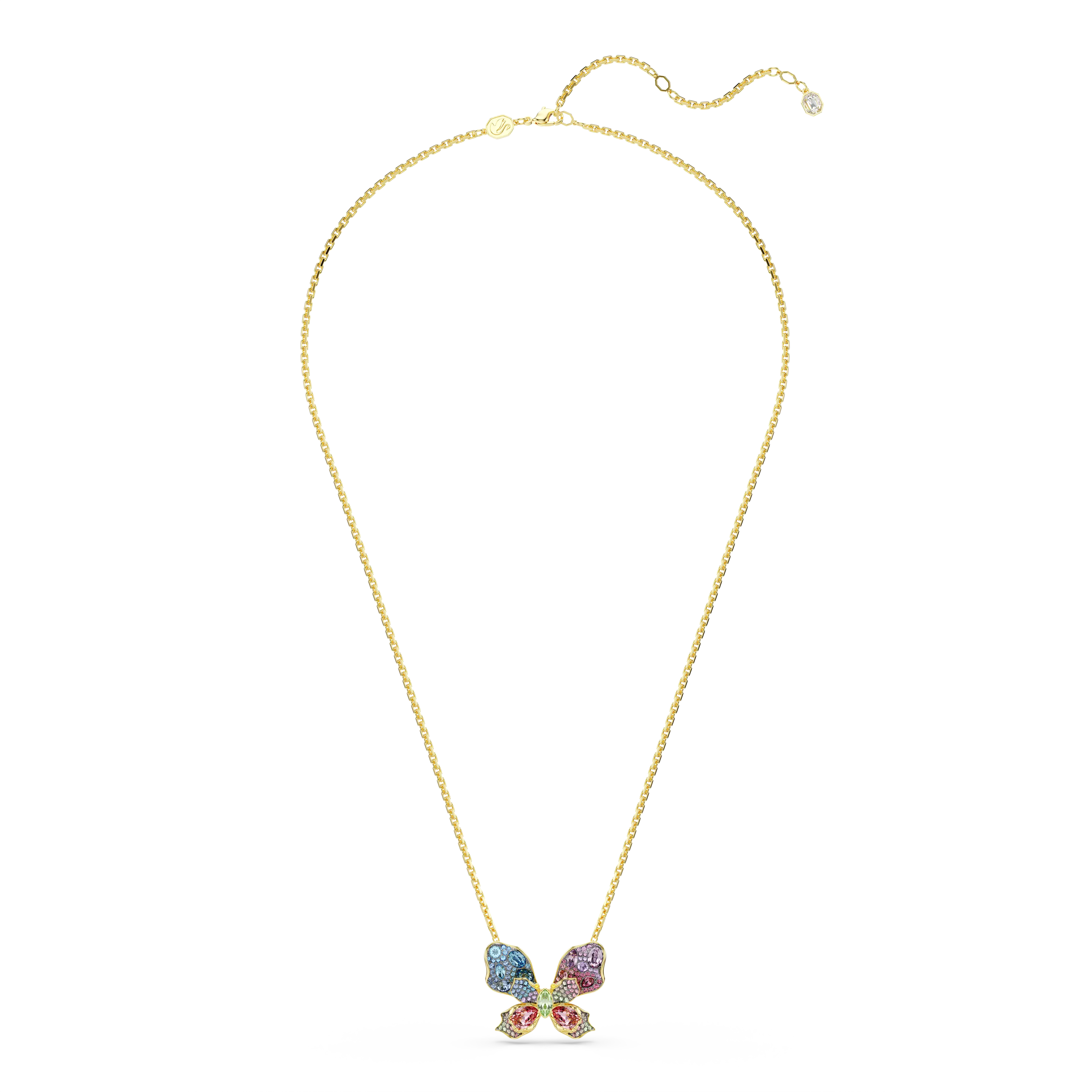 Awaken the joy in your style with this magnificent butterfly jewelry. Doubling as a pendant or brooch,the design can be worn on a delicate chain and features a central motif that is decorated in crystals of varying shapes and colors. All of Swarovski’s finest savoir-faire is brought to life in this one astonishing creation,including pavé,Pointiage™,and chatonnage techniques,resulting in a truly emblematic piece from the wondrous Idyllia garden. Gift it to someone you love for a special occasion and allow their dreams to flourish.