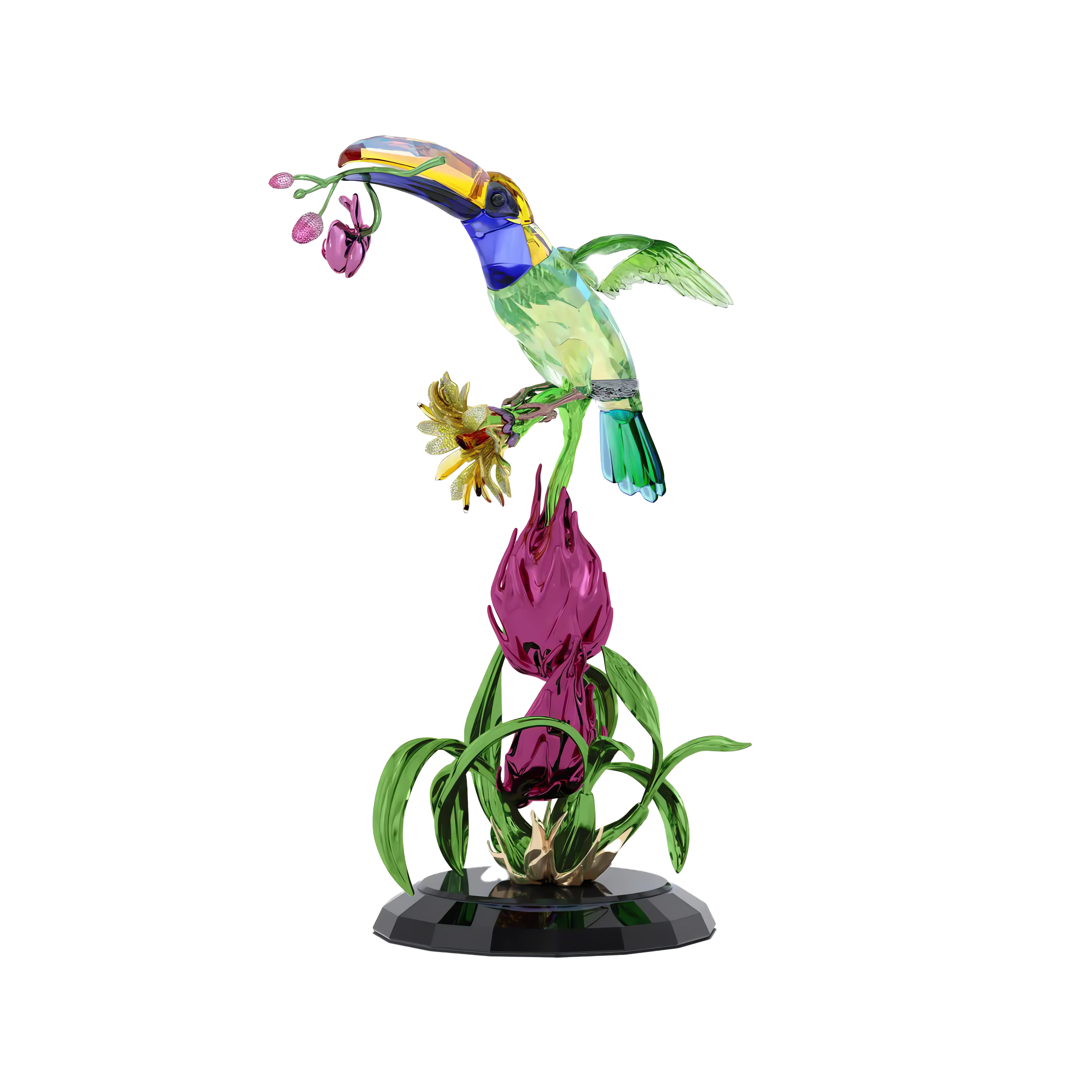 Crafted especially for SCS members,this small and colorful Gouldian Finch is sure to ignite the imagination. Known locally as “winged jewels,” these native Australian birds are famous for painting rainbows across the sky. Swarovski has captured this incredible vibrancy with a kaleidoscope of colors,featuring 400 facets and lacquered metal feet. A precious and joyful piece that will make your heart sing. Decoration object. Not a toy. Not suitable for children under 15.
