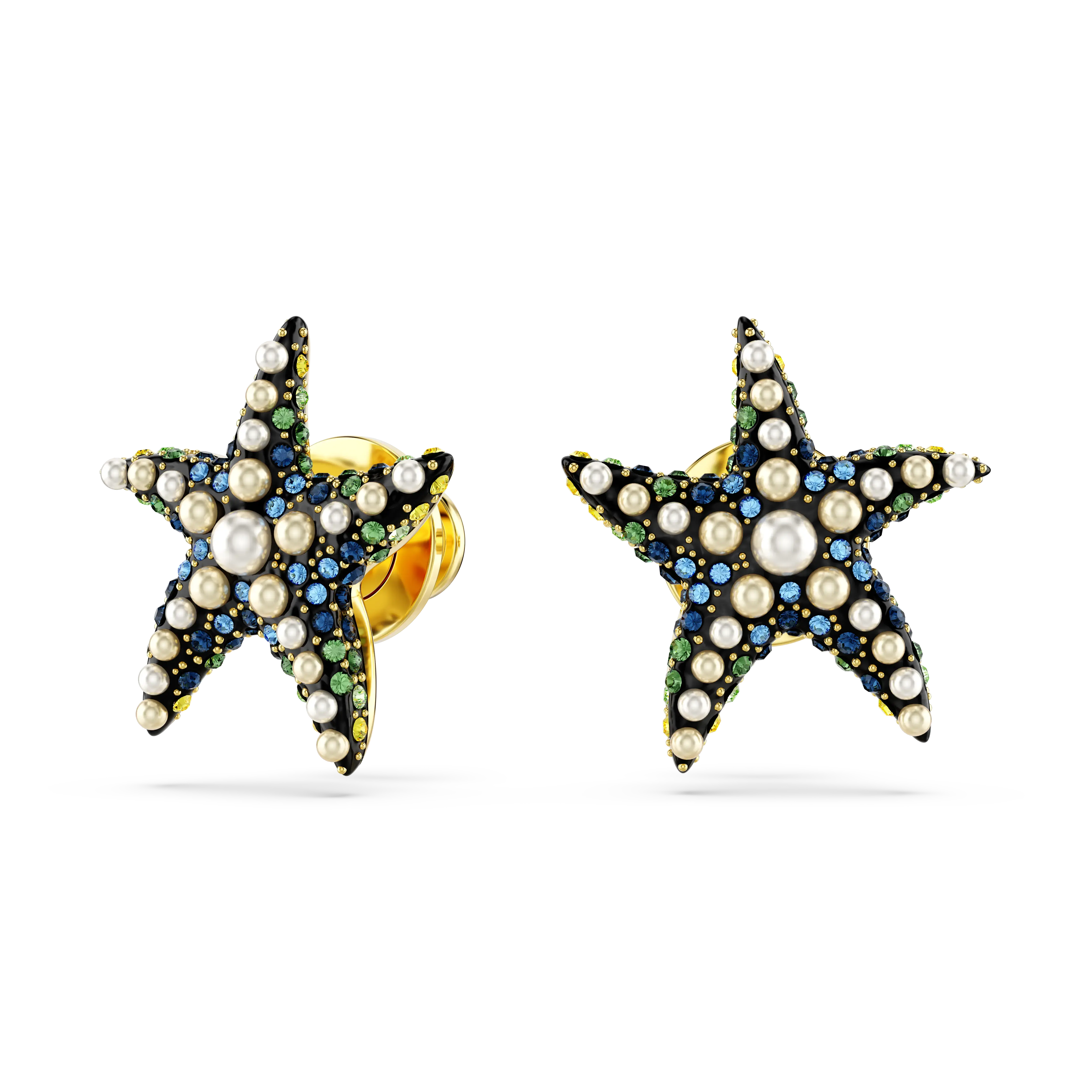 Idyllia stud earrings Crystal pearl/Starfish/Small/Multicolored/Gold-tone plated
