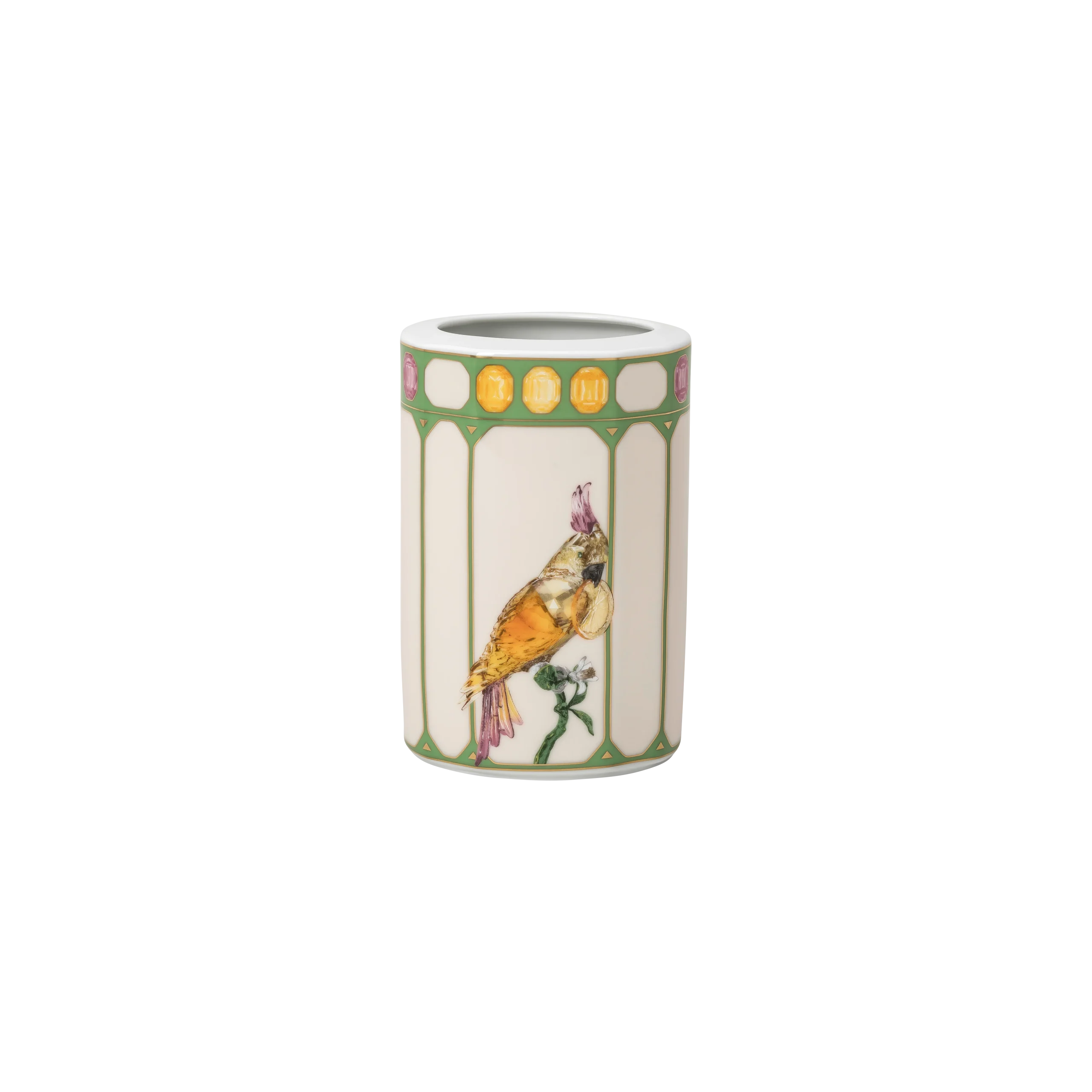 Idyllia vase Porcelain/Crystal print motif/Cockatoo/Small/Multicolored