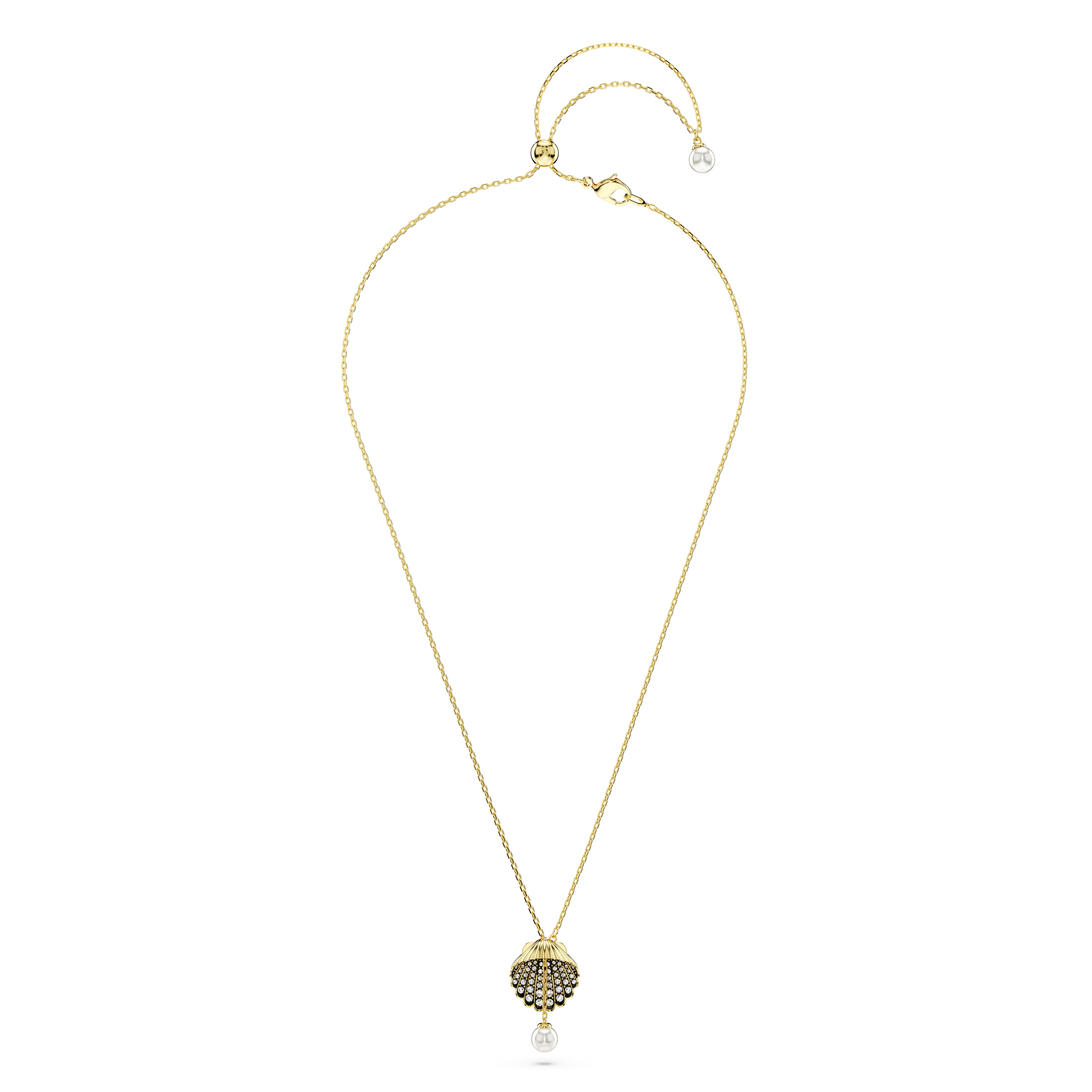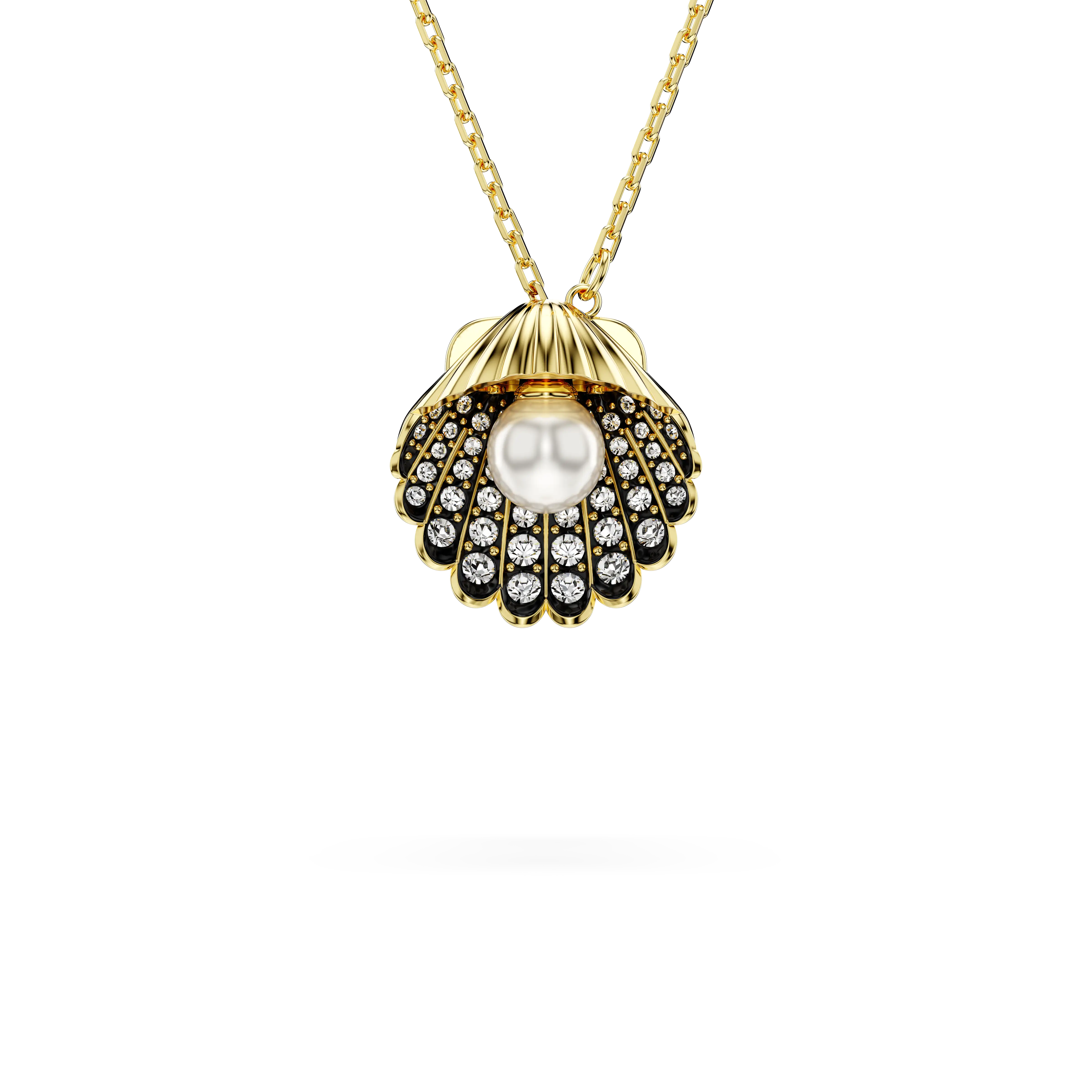 Capturing the serenity and beauty of the ocean,this Idyllia pendant will bring a touch of marine inspiration to your style. The gold-tone plated piece is worn on a delicate necklace and features a shell motif at the center. This has been artistically adorned with clear round crystals placed within a black setting,while a single Crystal Pearl sits inside. For extra versatility,the pearl can be pulled out of the shell,adjusting the style into a Y-shape design. A simple and captivating way to feel at one with the sea.