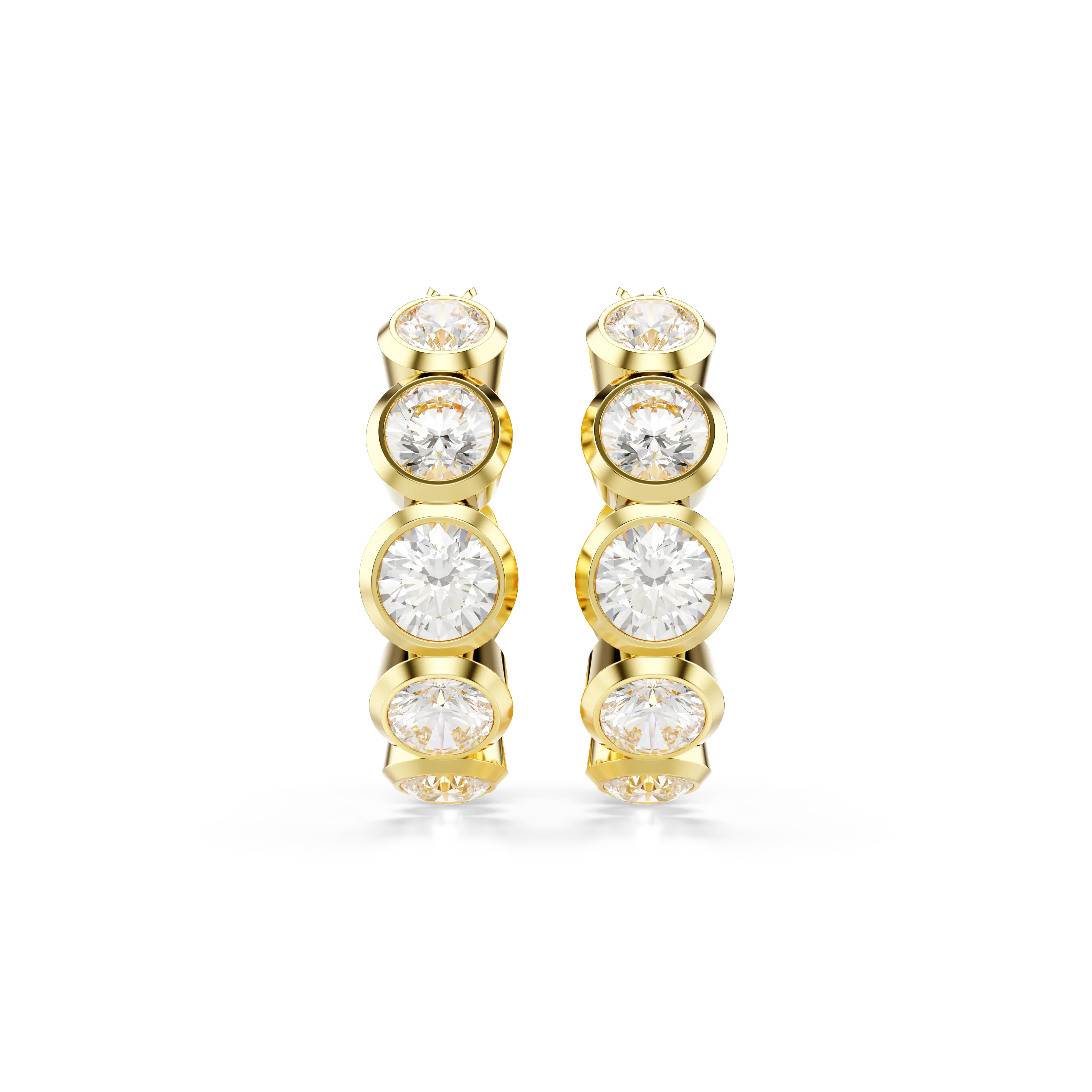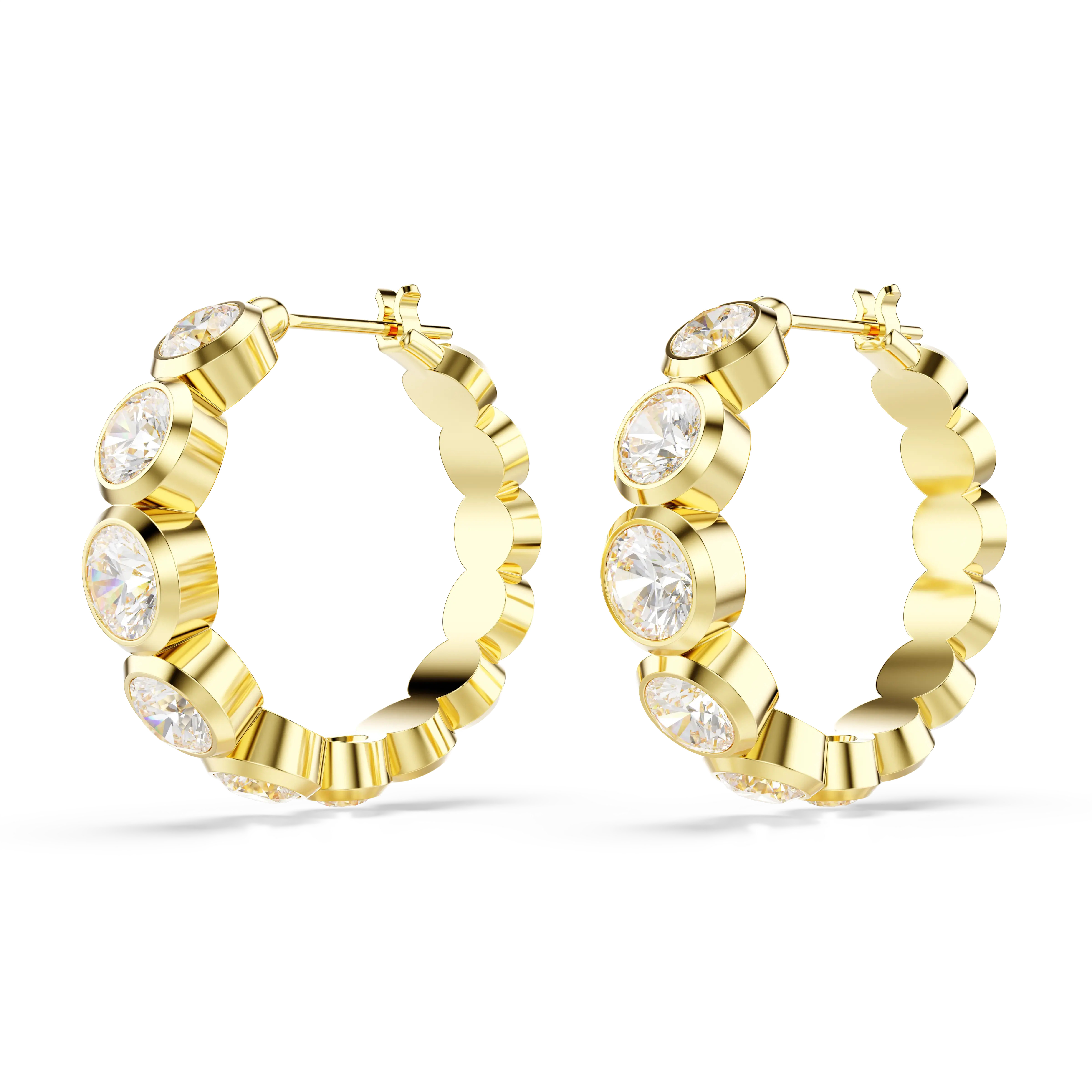 Imber hoop earrings Round cut/White/Gold-tone plated