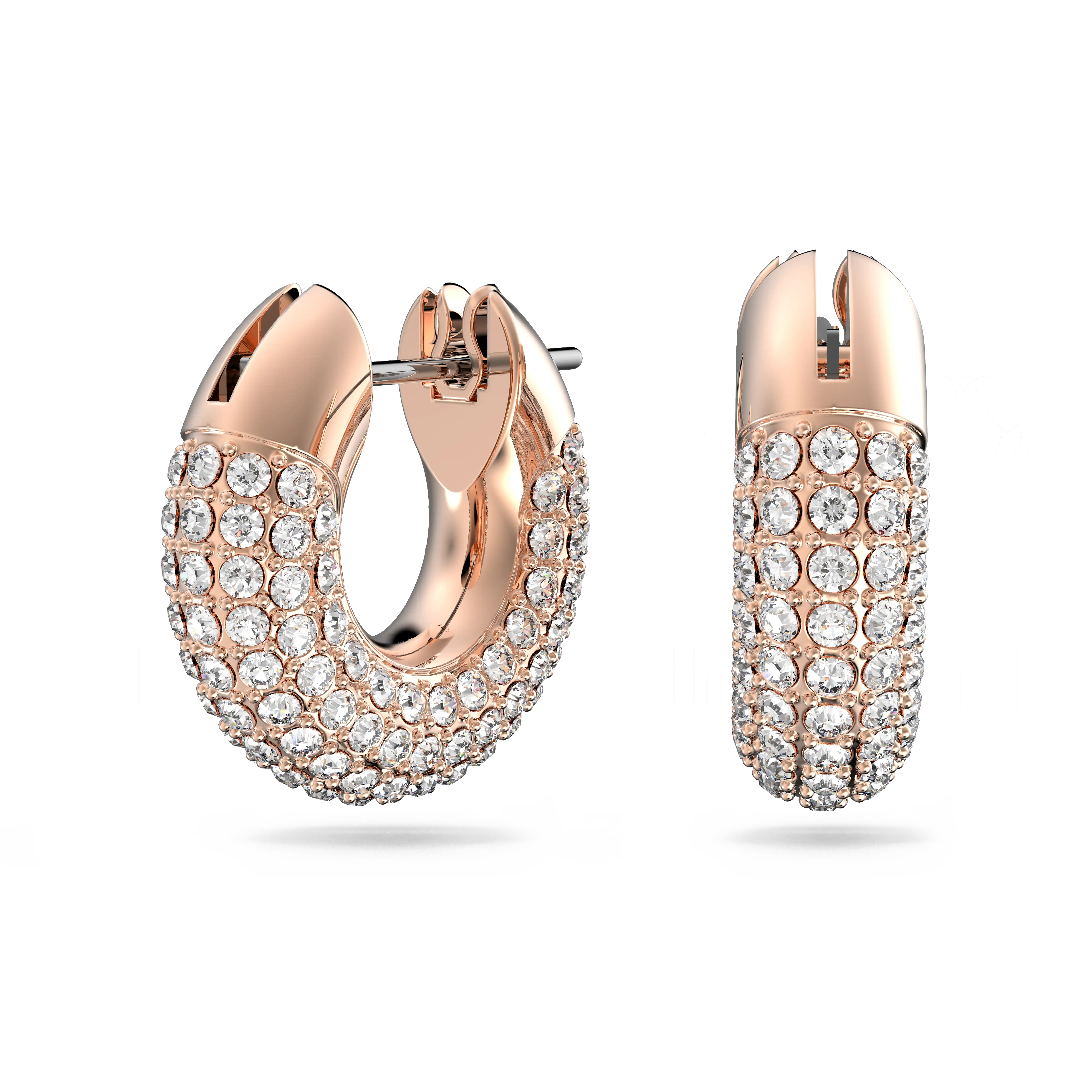 These mesmerizing mini hoop earrings are an exquisite example of Swarovski’s mastery of light. Each clear crystallized hoop features a discreet post fastening and an easy-to-open hinge mechanism. A striking graphic piece with a sports luxe edge.