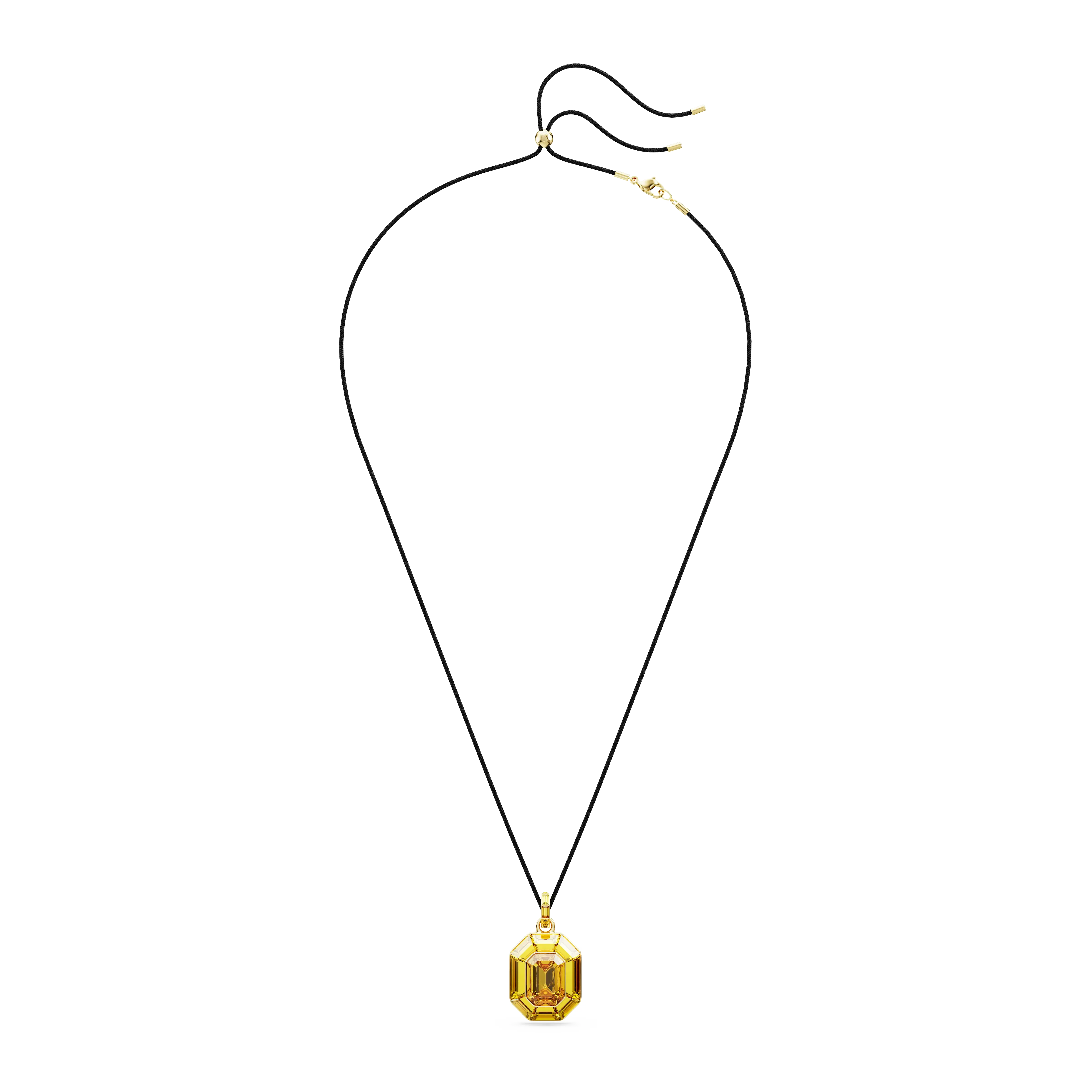 Crafted like a burst of sunshine,this Lucent pendant will place color and light at the center of your style. The design features a fully-cut yellow crystal,expertly faceted in Swarovski’s iconic octagon shape,attached to a bail with small baguette-cut yellow crystals. For ultra versatility,it can be worn on a metallic chain or a delicate fabric cord with an adjustable sliding mechanism,giving you various styling possibilities. Pair this pendant with Lucent’s matching yellow jewelry or wrap it up as a radiant gift.