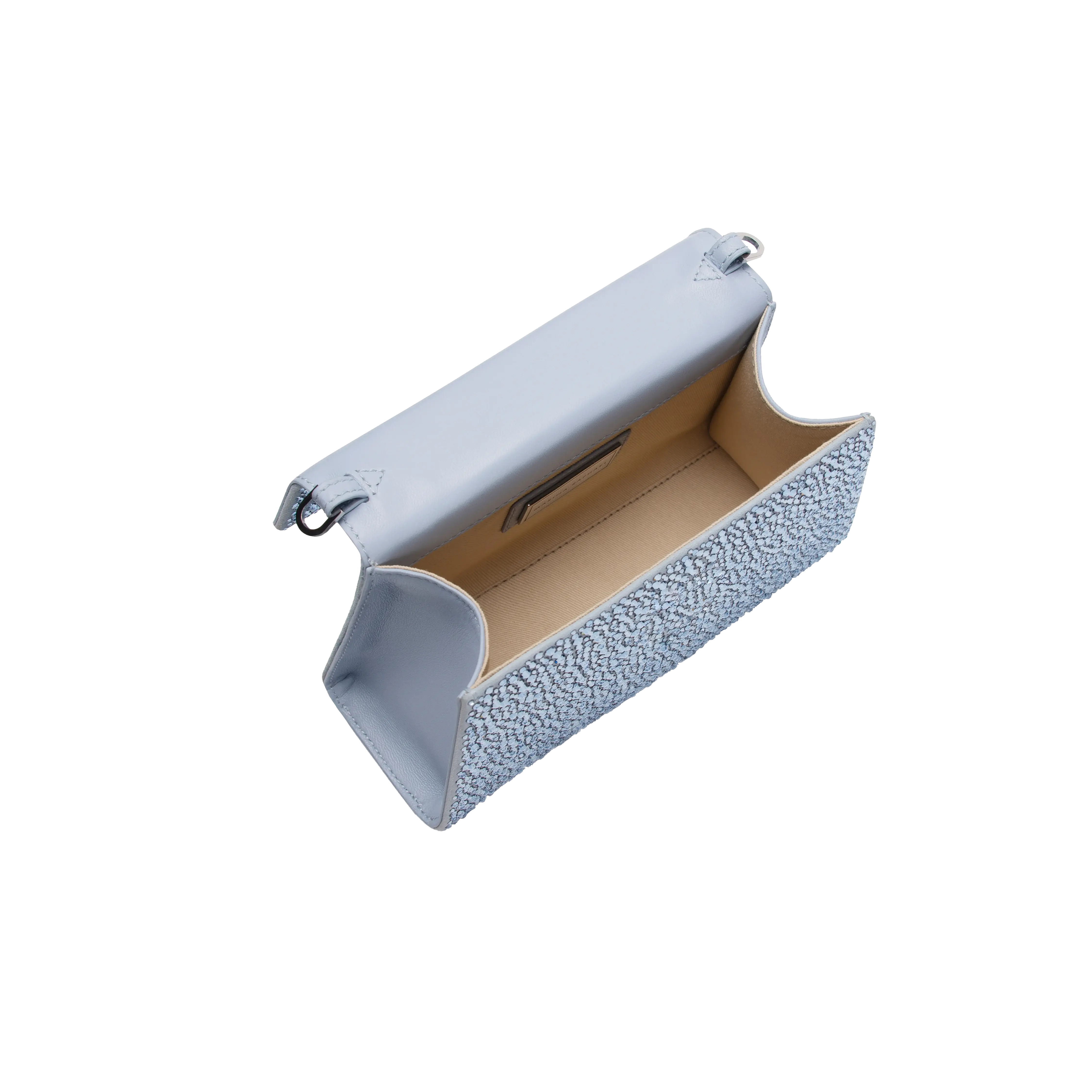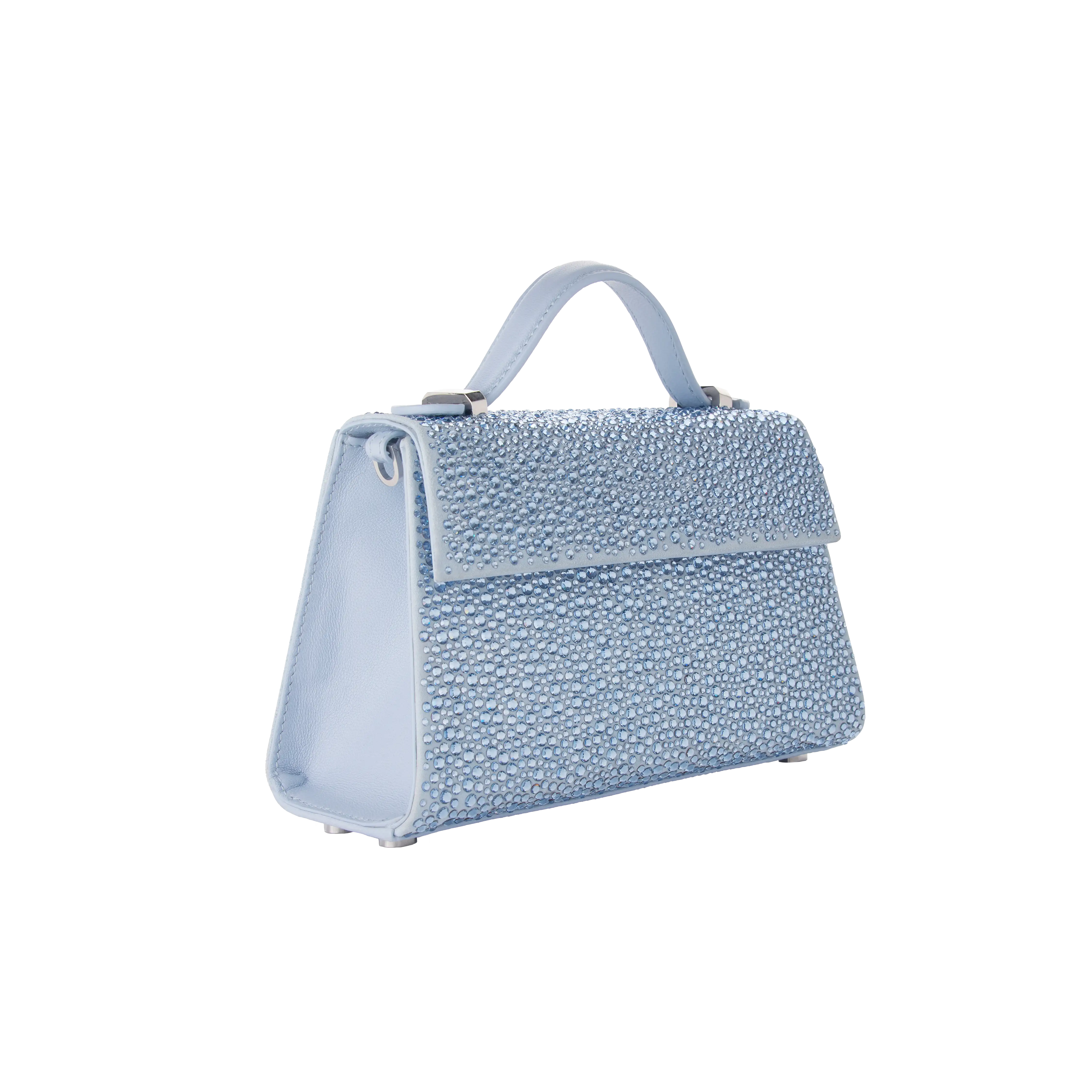 Made exclusively for the Swarovski Creators Lab in collaboration with Marina Raphael,this head-turning Micro Stella bag will infuse your evening style with glamour. The blue suede design is drenched in Swarovski Crystals of different sizes and features matching napa leather detailing and a beige cotton interior. For bold nights on the go,the inside of the bag also includes an adjustable blue napa leather strap,allowing you to wear it as a cross-body accessory. Romantic,joyful,and designed with true creative mastery,this limited-edition bag is only available online and in select Swarovski stores.