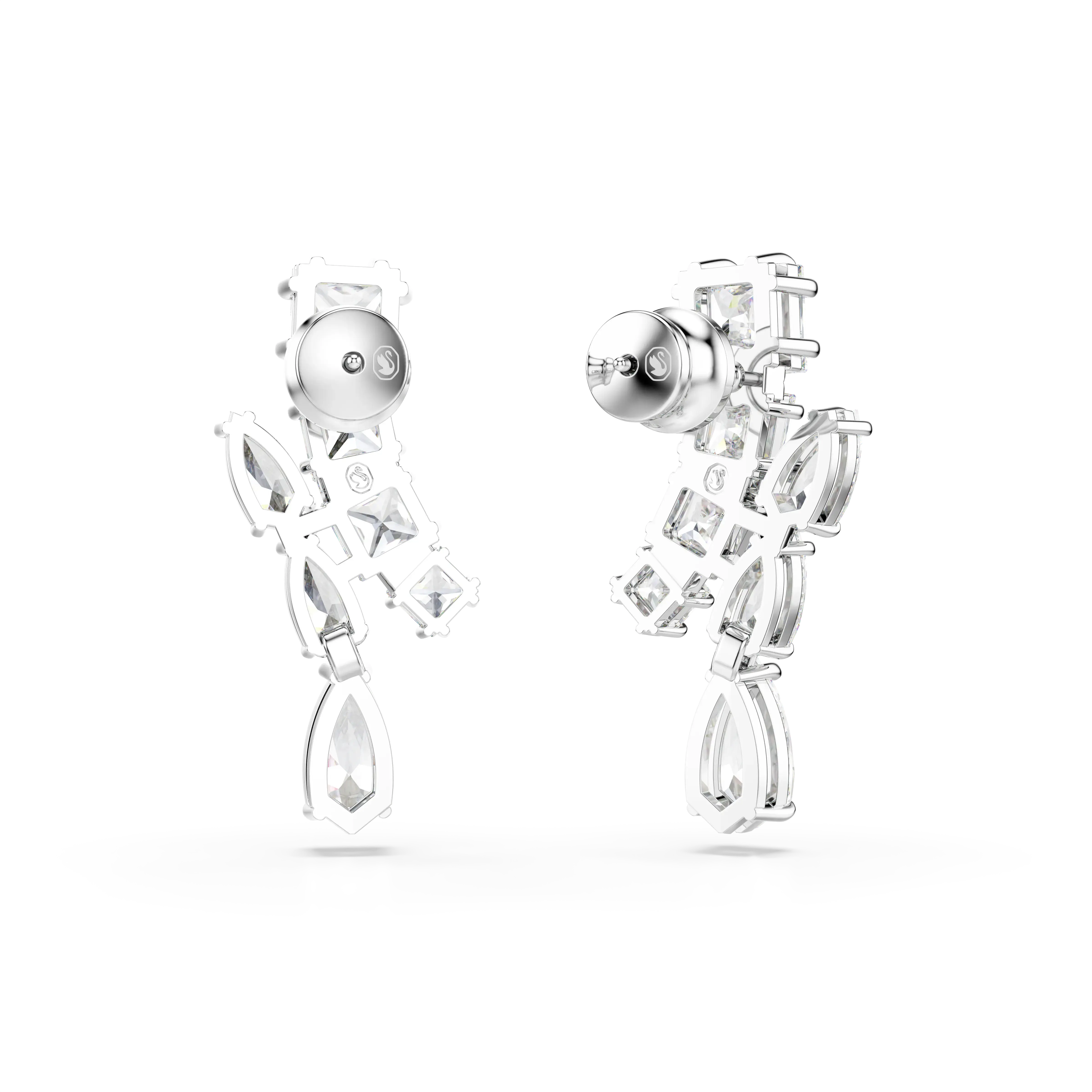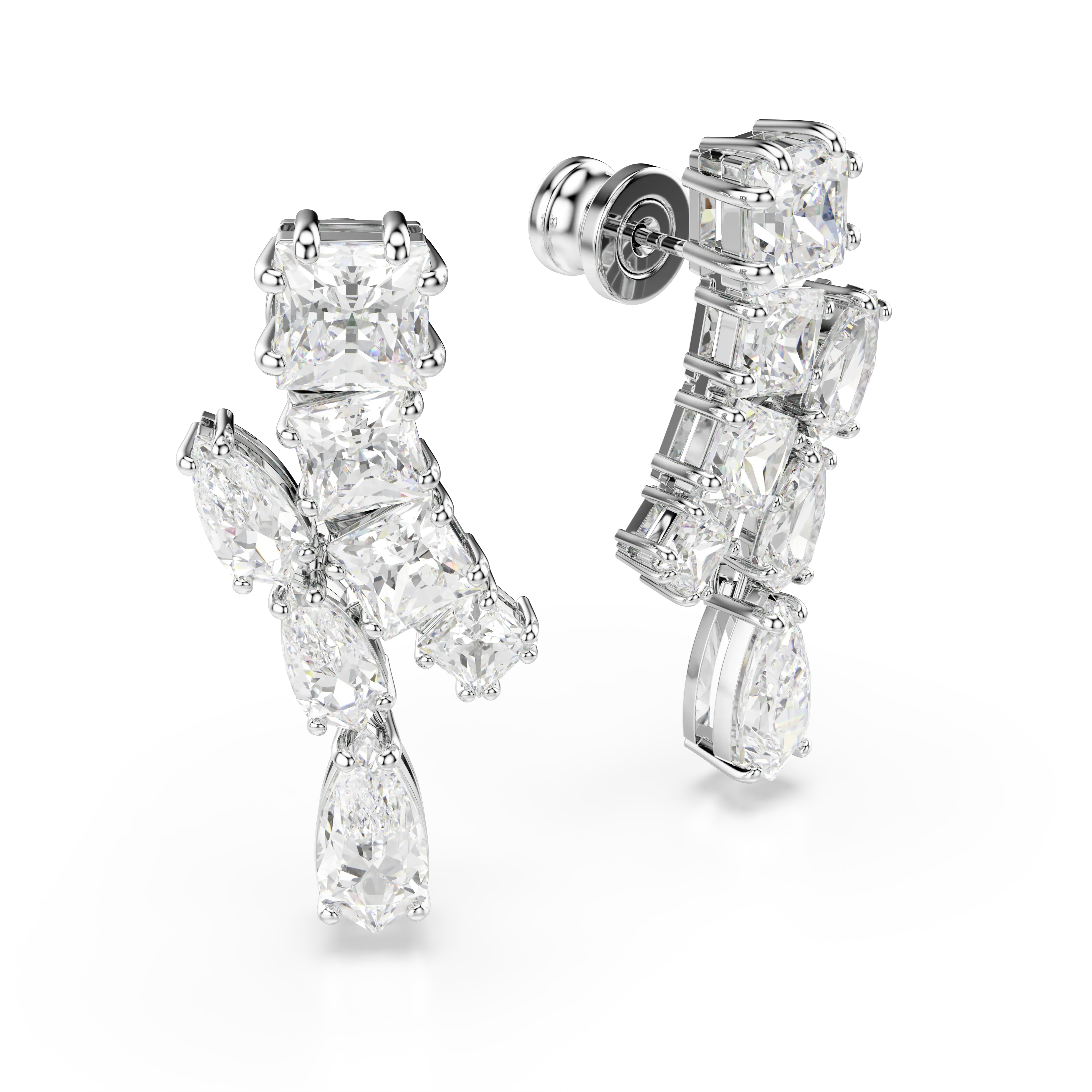 Matrix drop earrings Mixed cuts/White/Rhodium plated