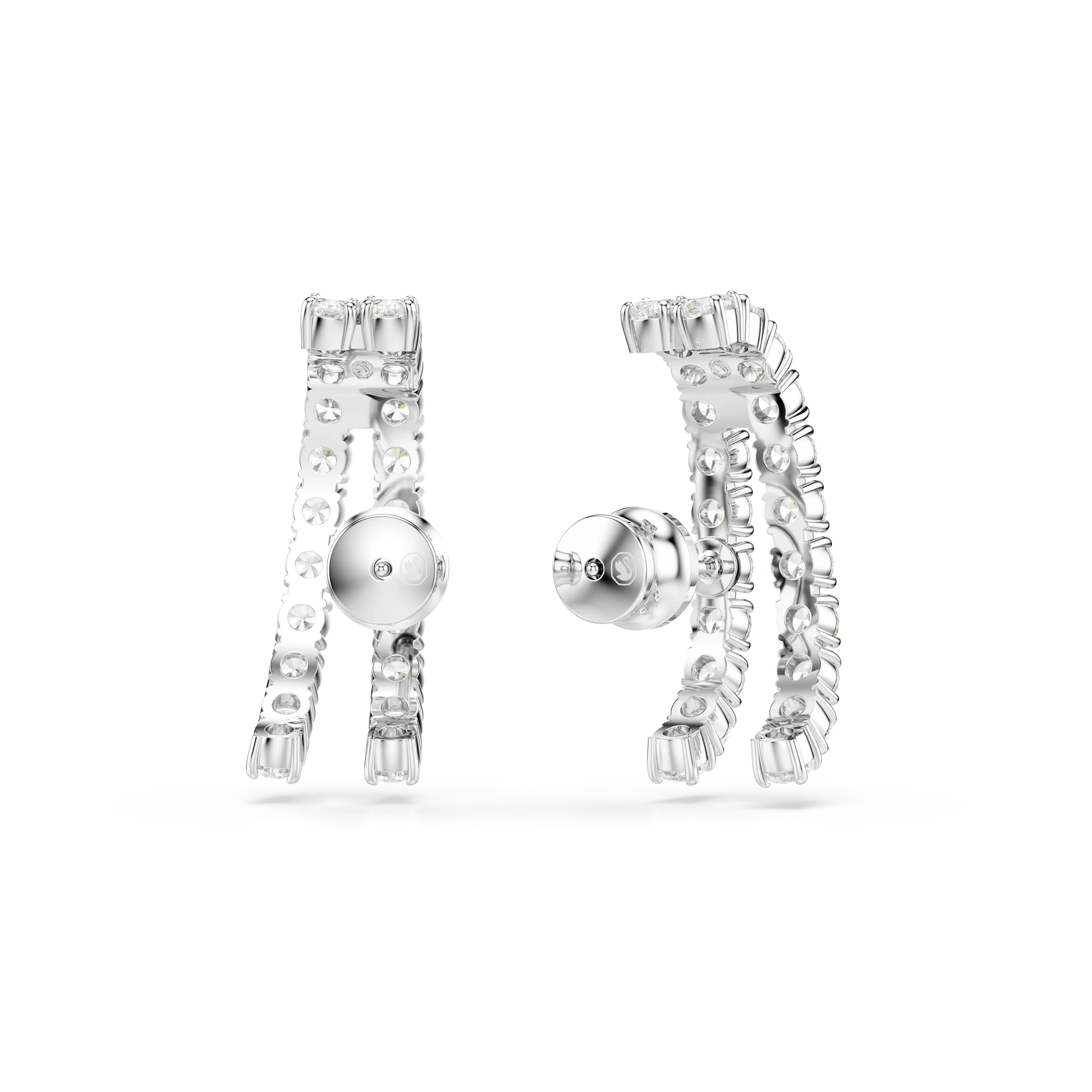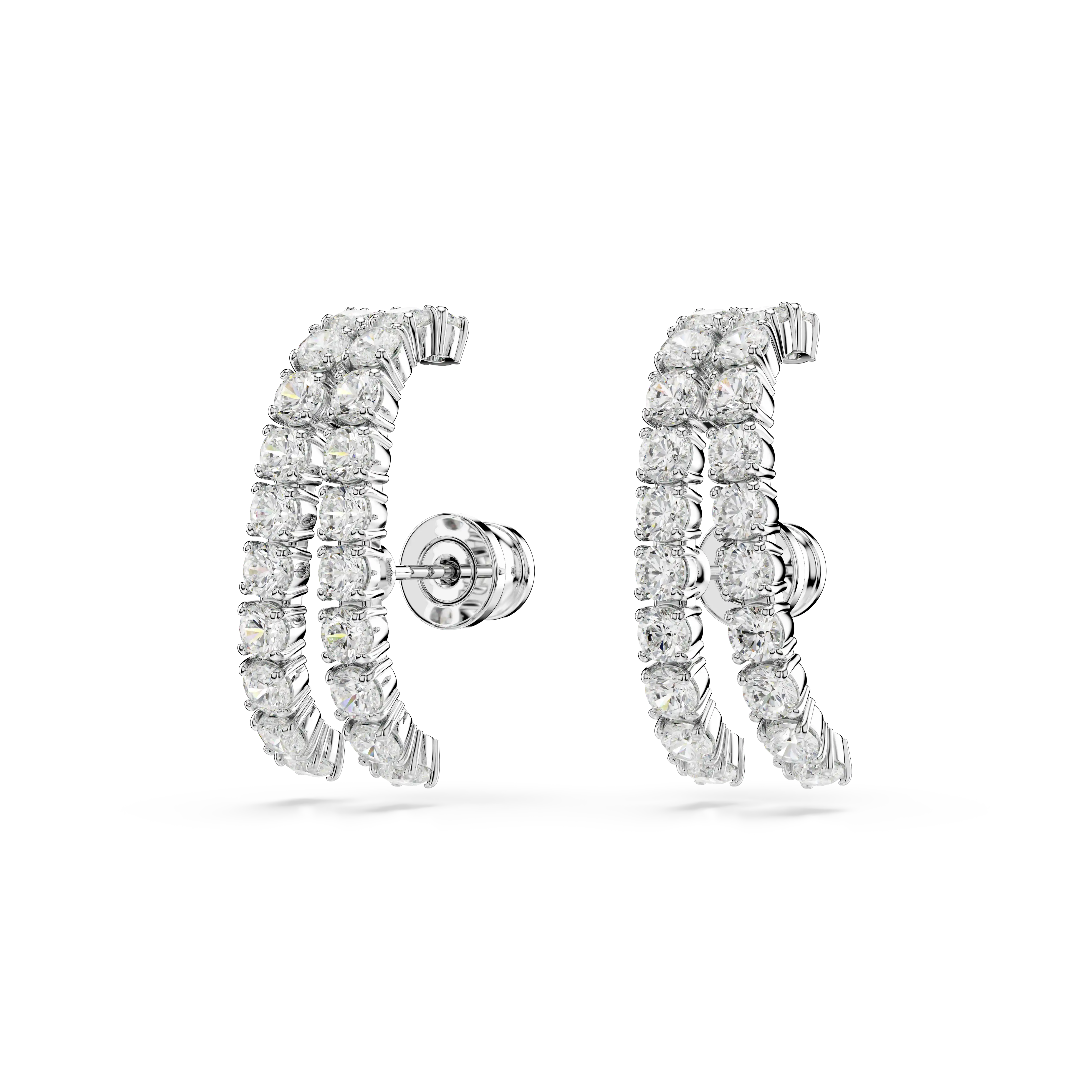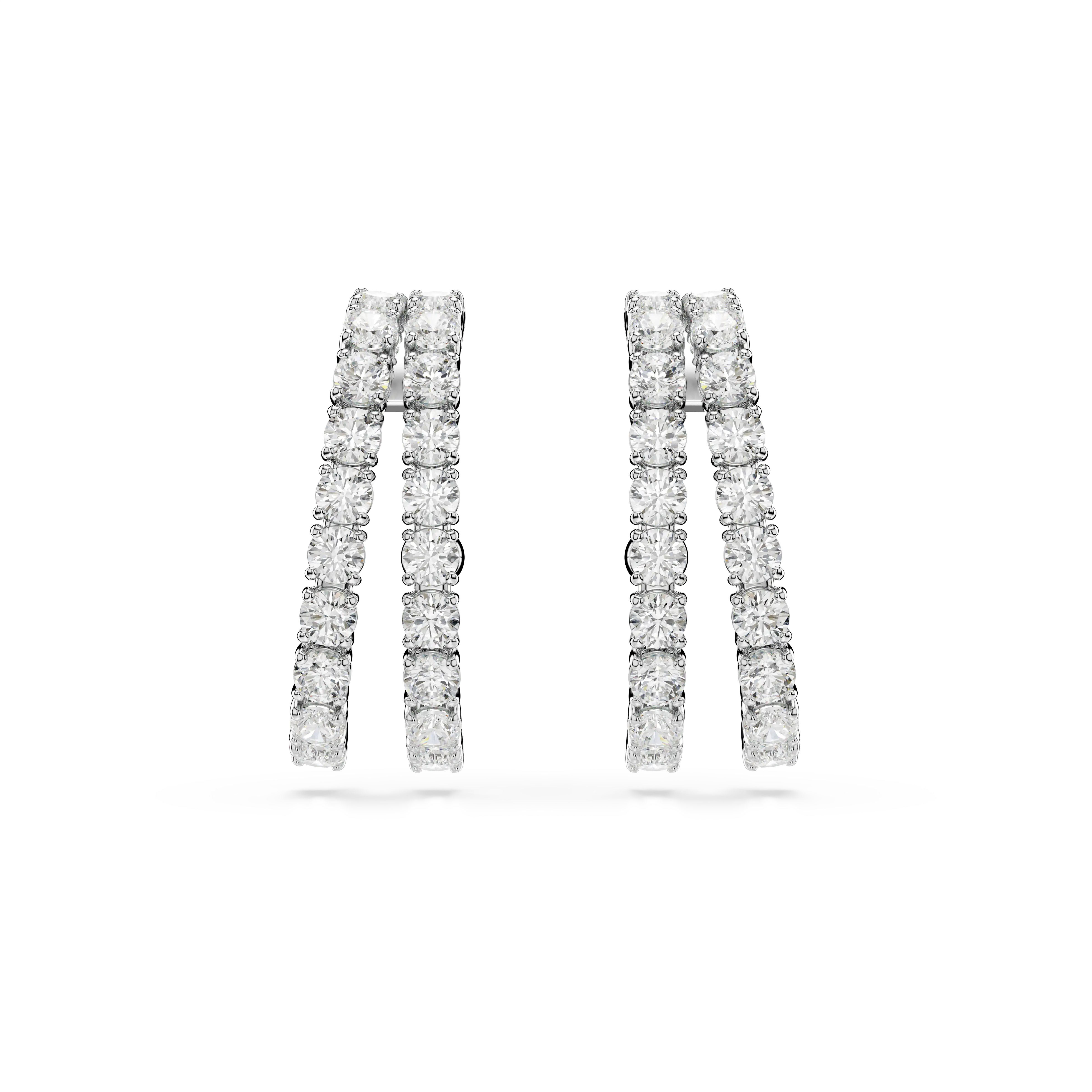 Extreme elegance meets radiant light in this stunning pair of Matrix pierced earrings. Each rhodium plated piece features two bands adorned in round-cut Swarovski Zirconia,presented in a clear hue. A captivating choice to express the sophisticated side of your style.