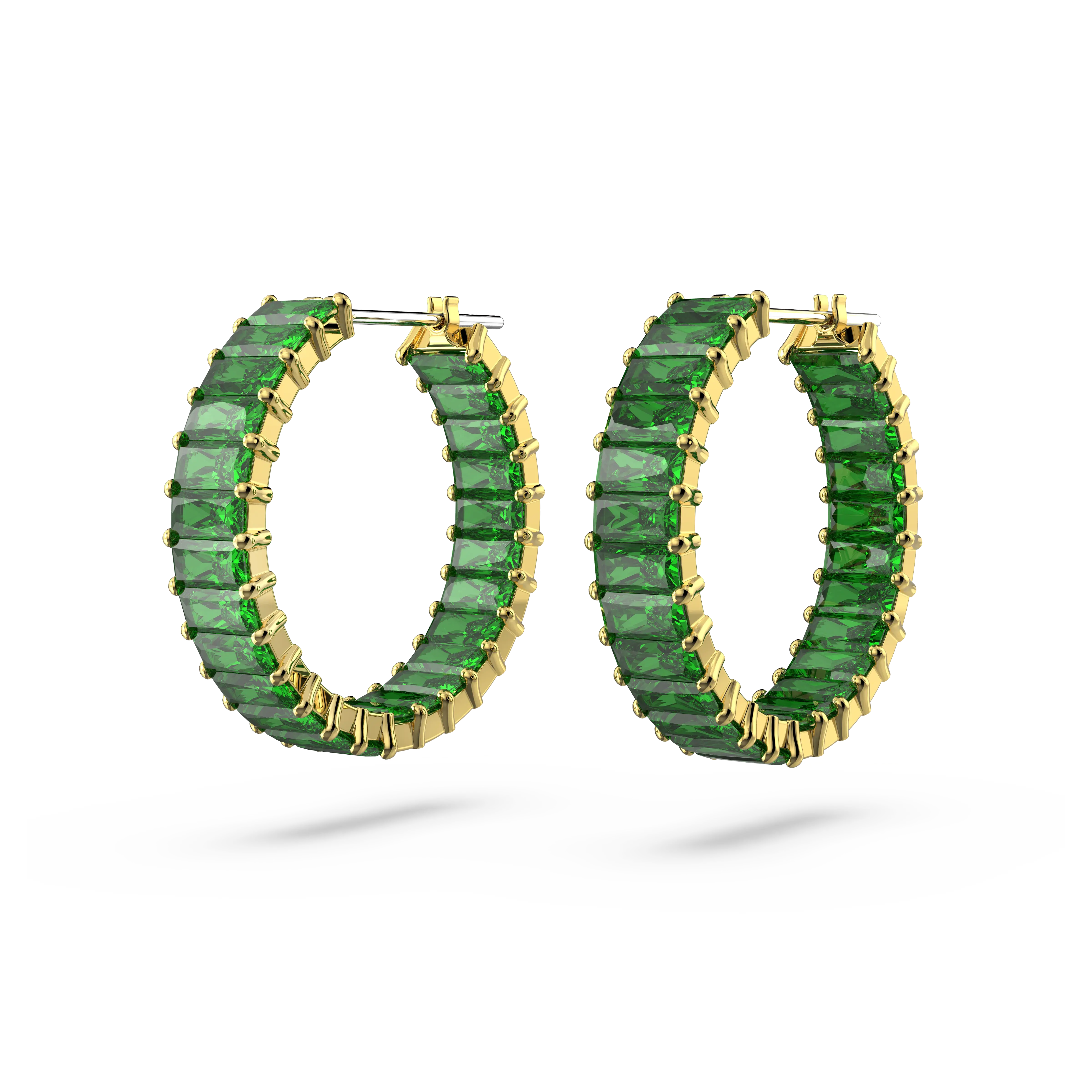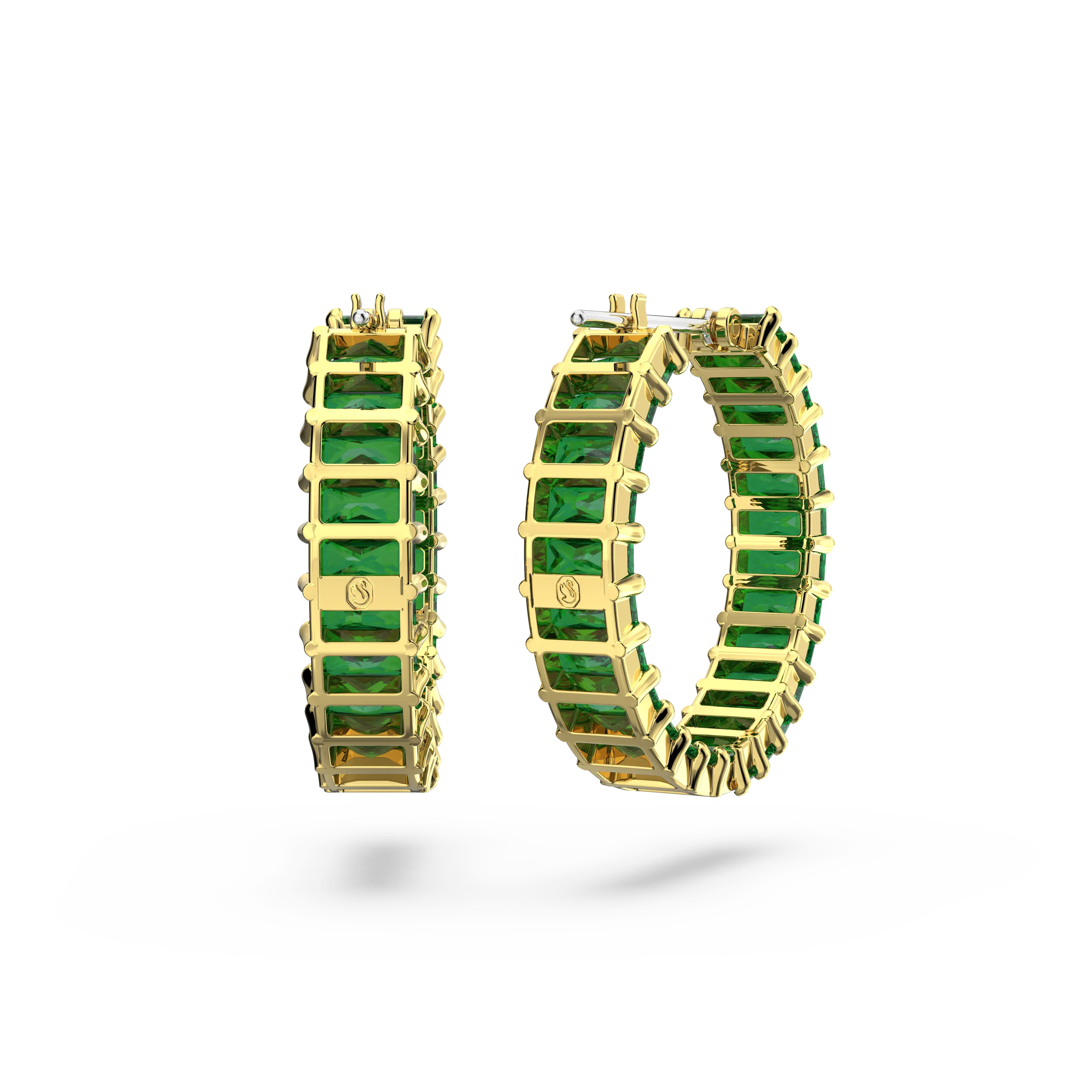 Matrix hoop earrings Baguette cut/Green/Gold-tone plated