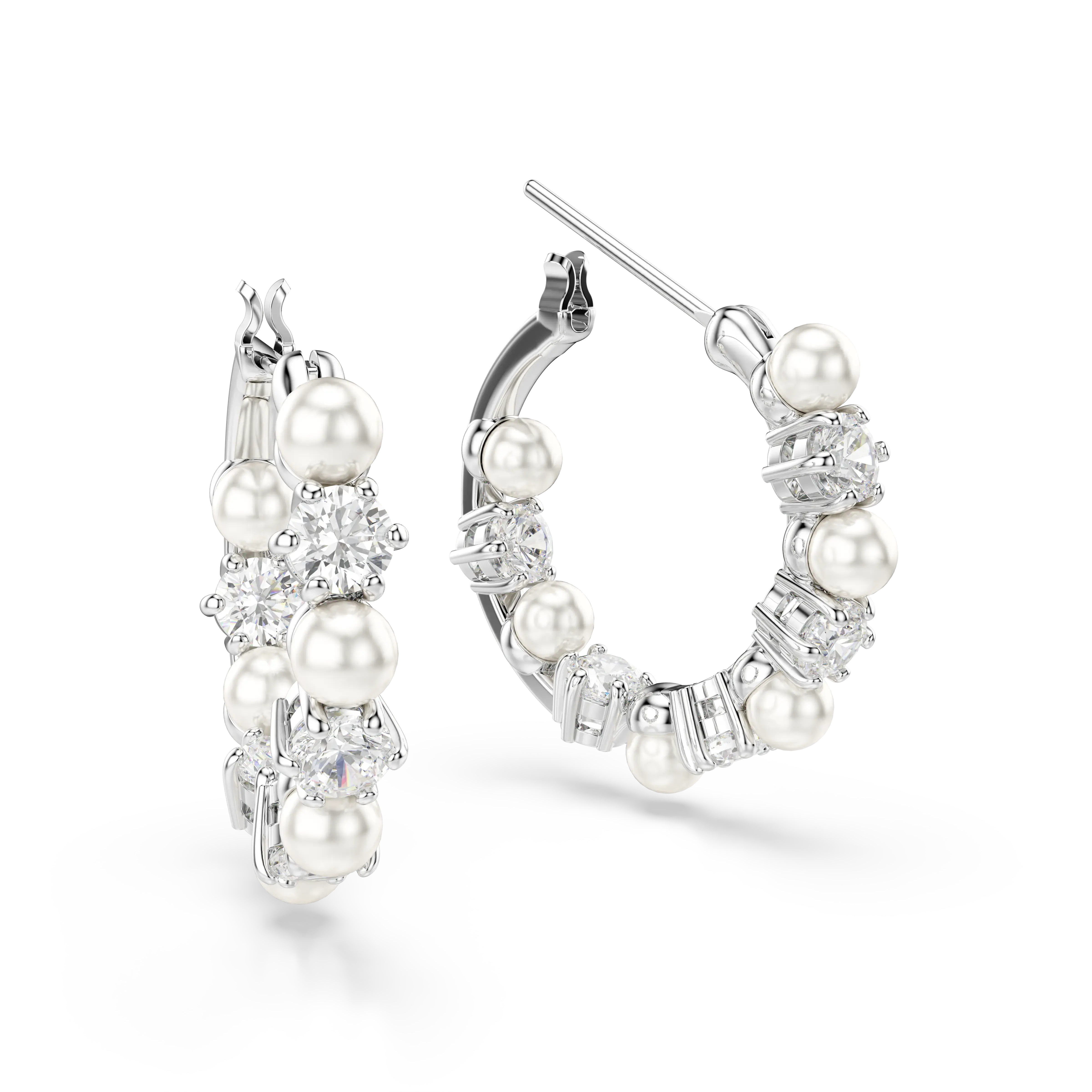 Be the first to review “Matrix hoop earrings Crystal pearl/Round cut/White/Rhodium plated” Cancel reply