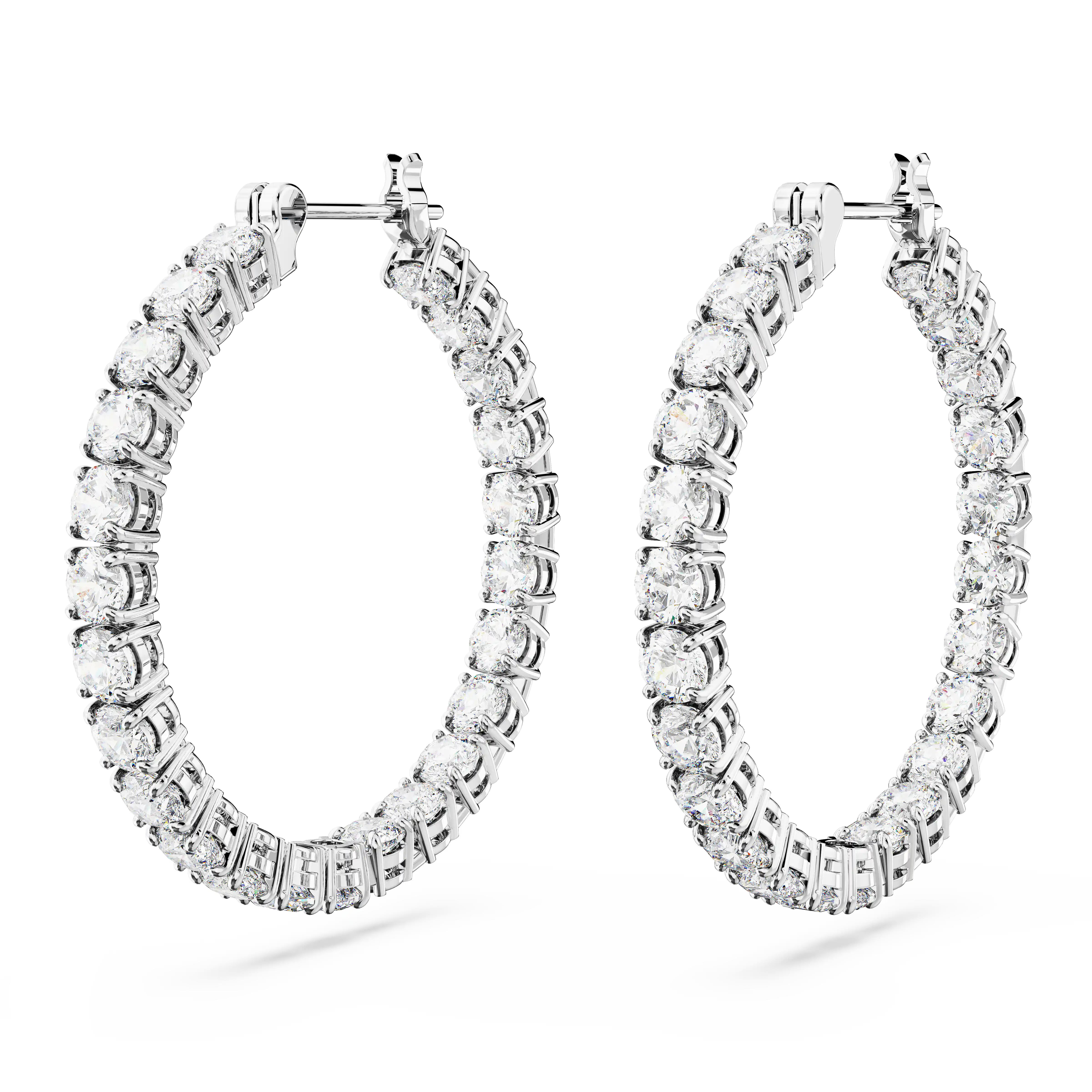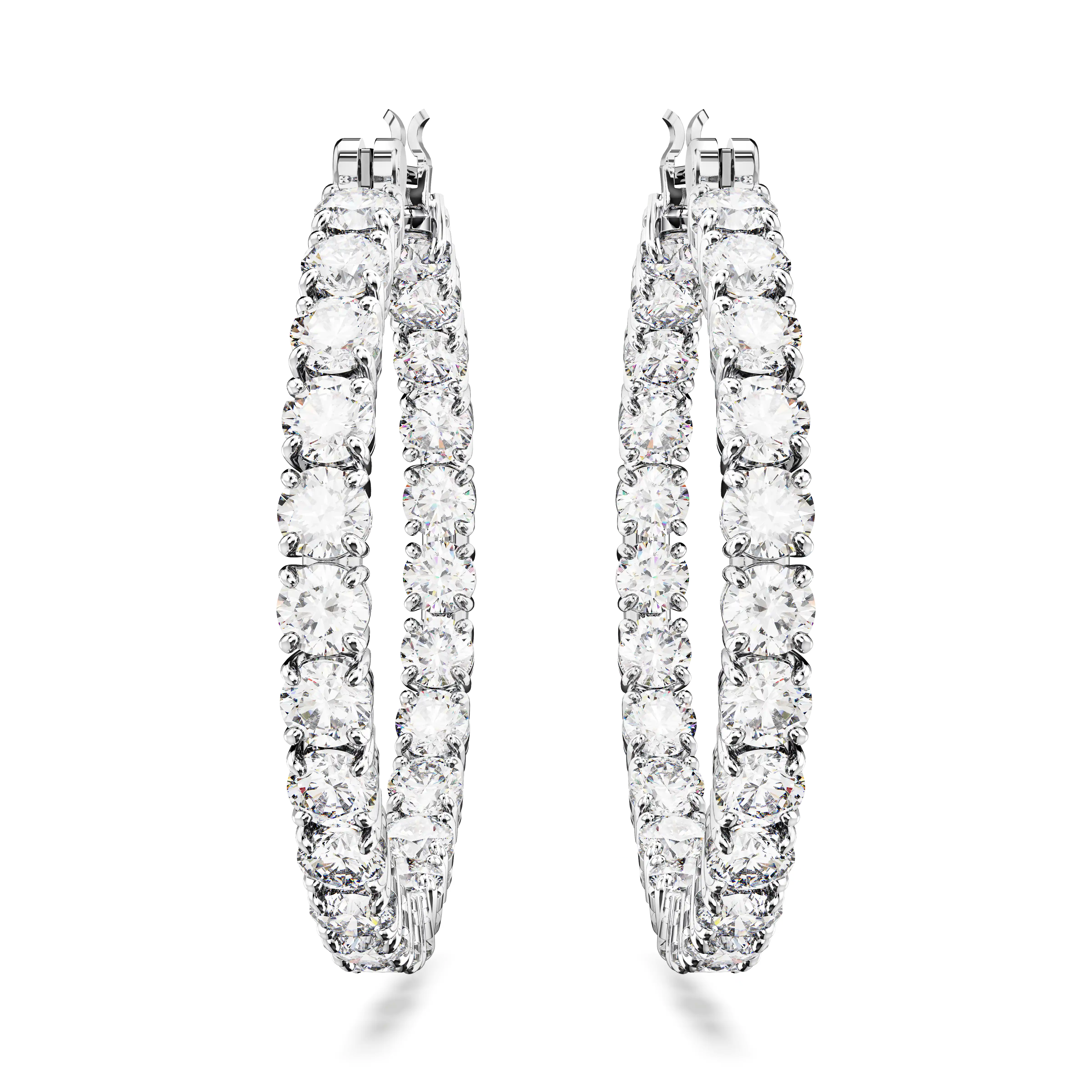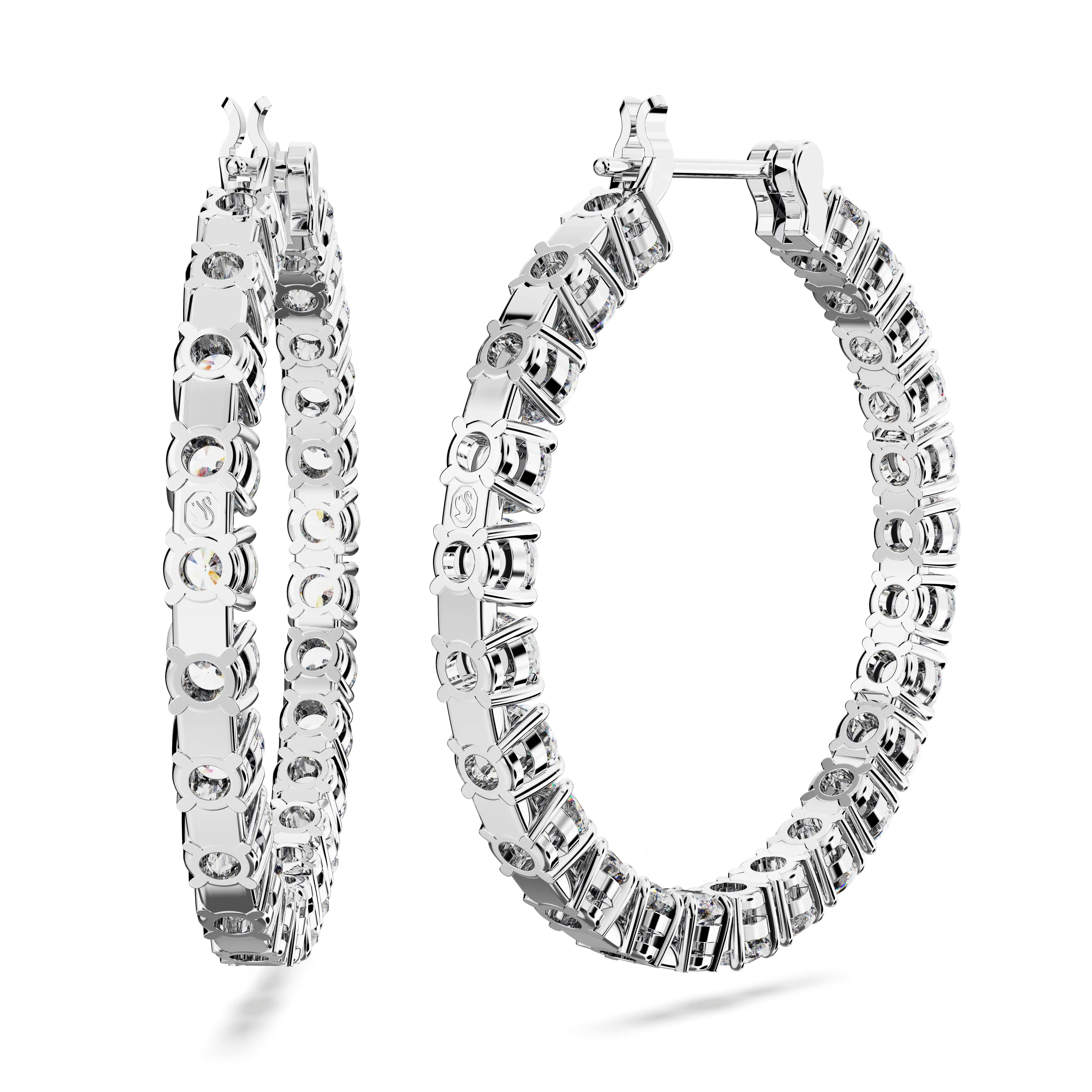 Matrix hoop earrings Round cut/White/Rhodium plated