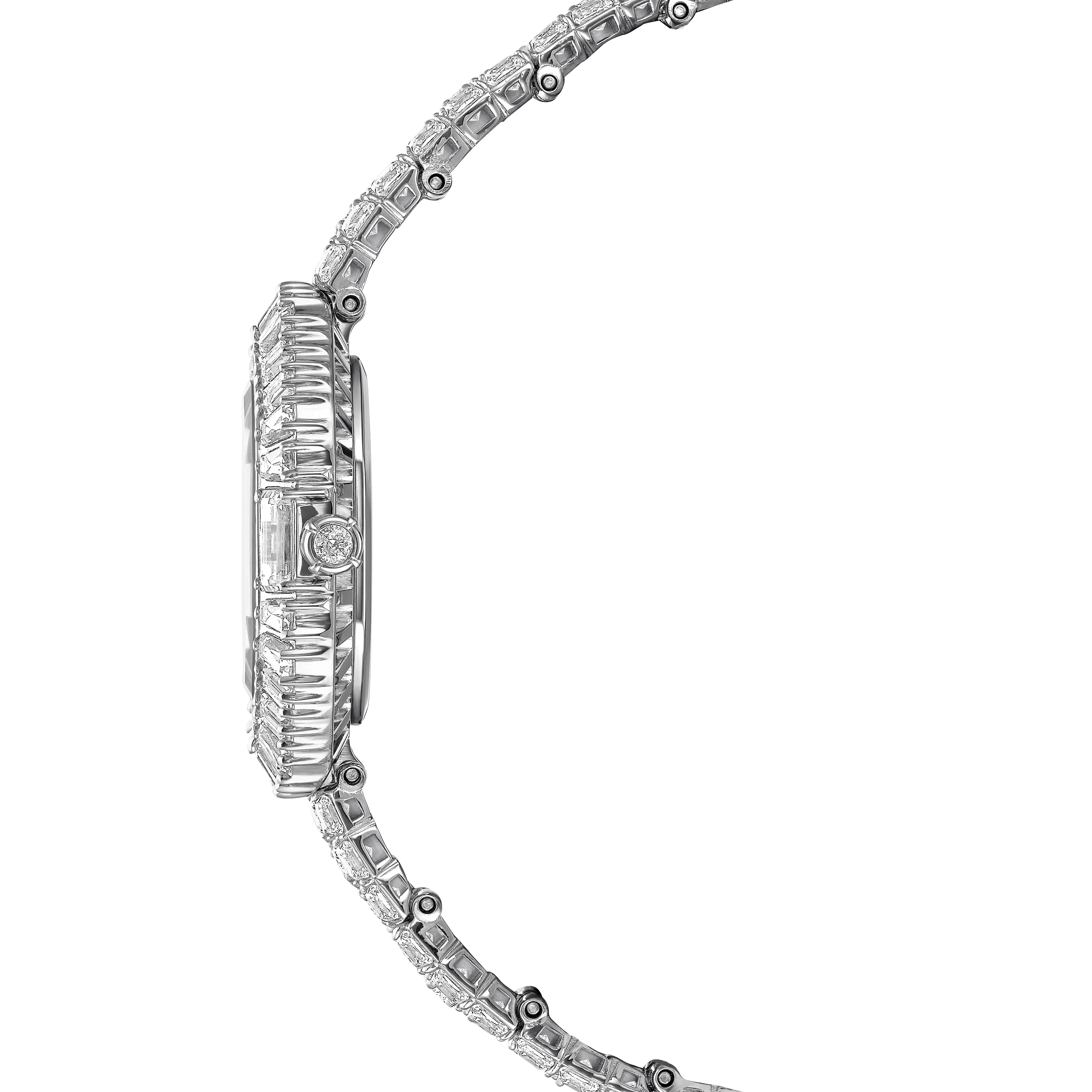 This innovative timepiece is a one-of-a-kind creation that combines signature design with mastery of light. Crafted with genuine savoir-faire,the watch is inspired by the Matrix jewelry family and features a 13 x 18 mm case in stainless steel. The bezel is presented in the House’s signature octagon shape and is set with a stunning mix of 78 round and fancy cut crystals and Swarovski Zirconia. This provides a radiant frame for the minimalist sunray dial,which elegantly displays three crystal hour markers and a swan logo. A single crystal is also placed within the crown,while around the wrist,the luxury is heightened further by a radiant bracelet set with 72 Swarovski Zirconia. This watch is water-resistant to 50m and symbolizes Swarovski’s modern luxury at its very finest.