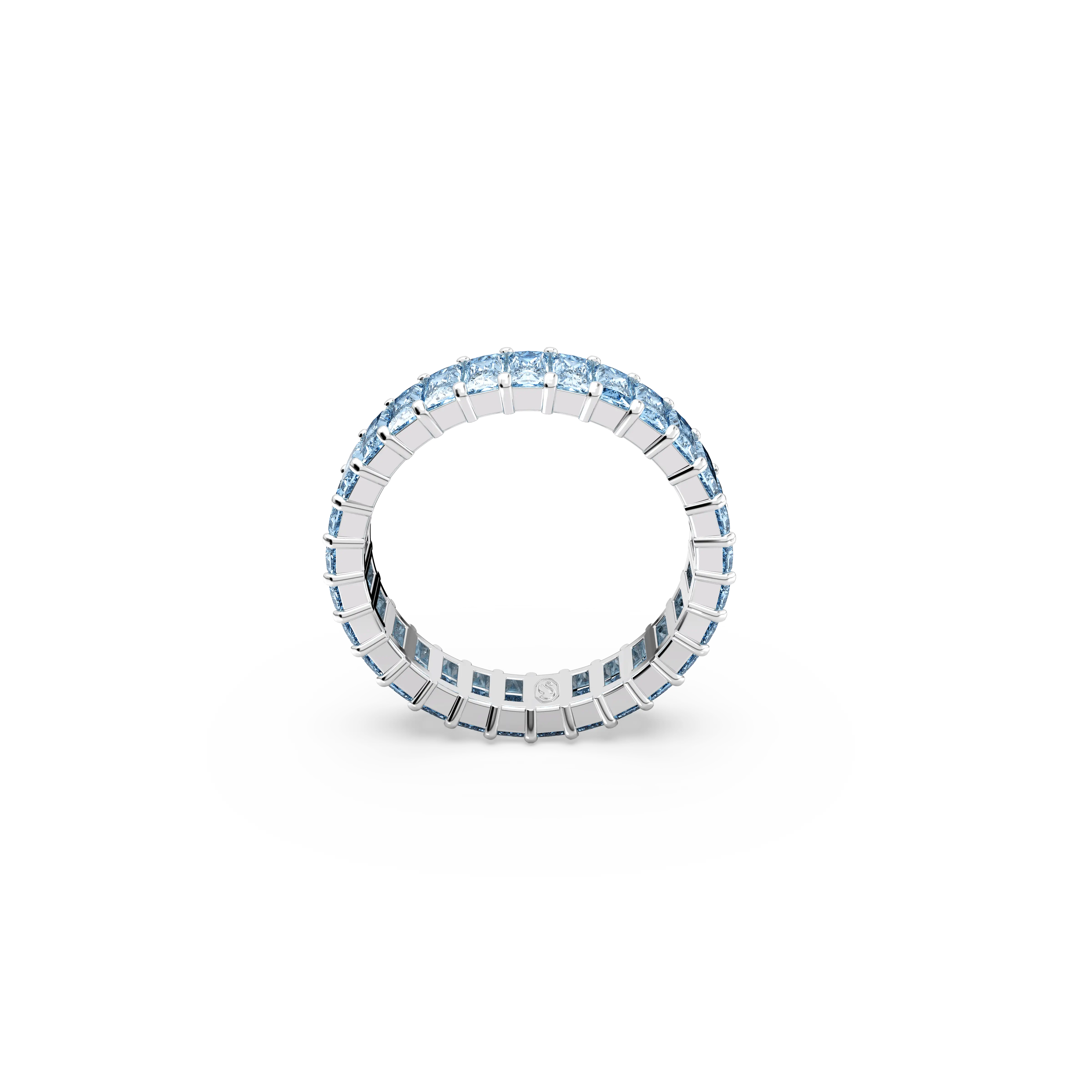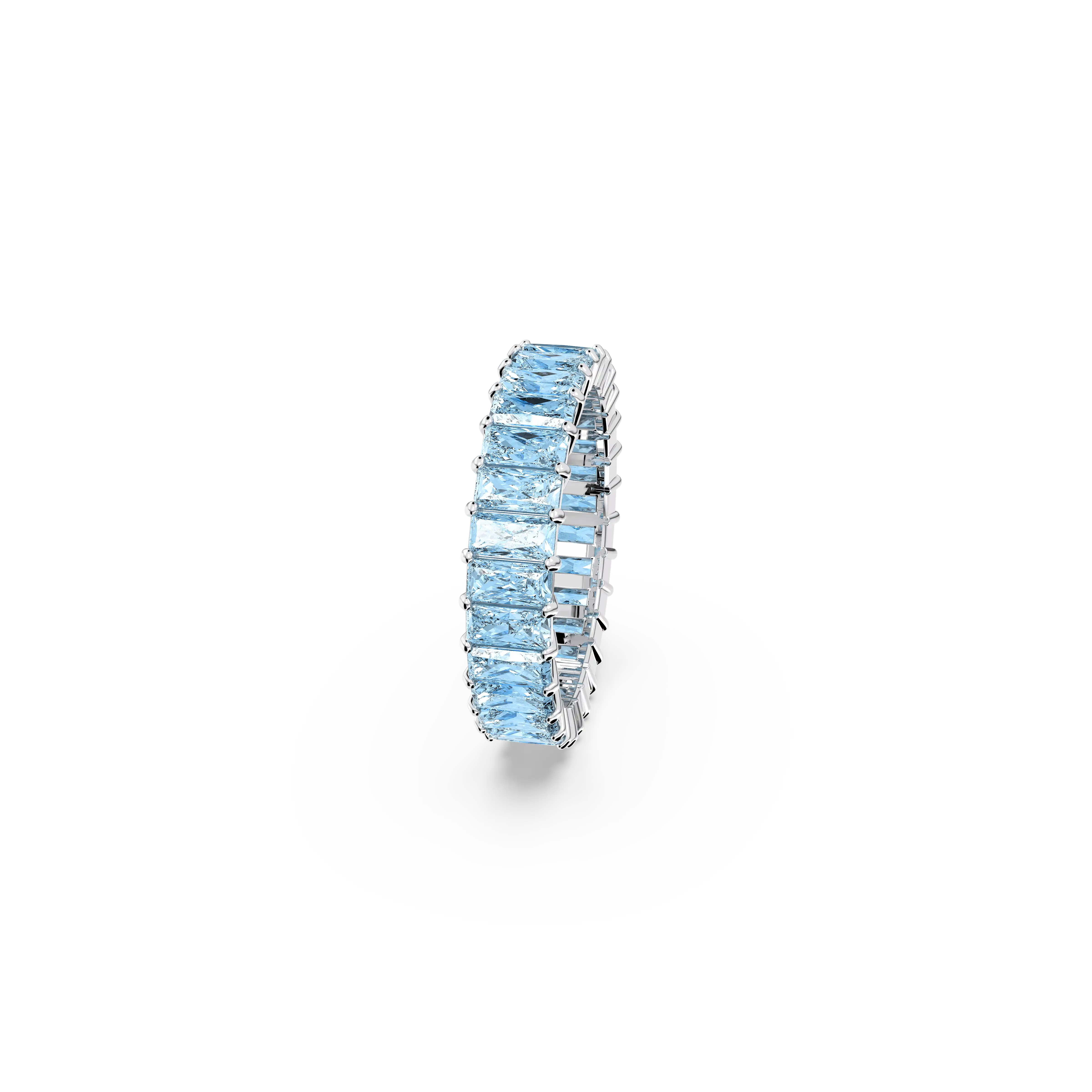 Catching the eye with its radiant aquamarine tone,this Matrix ring will make a beautiful addition to your jewelry box. In a process that unites science and magic,blue princess baguette-cut stones are set on a rhodium plated band. This shining accessory that is perfect for stacking,allowing multiple combinations for all occasions.