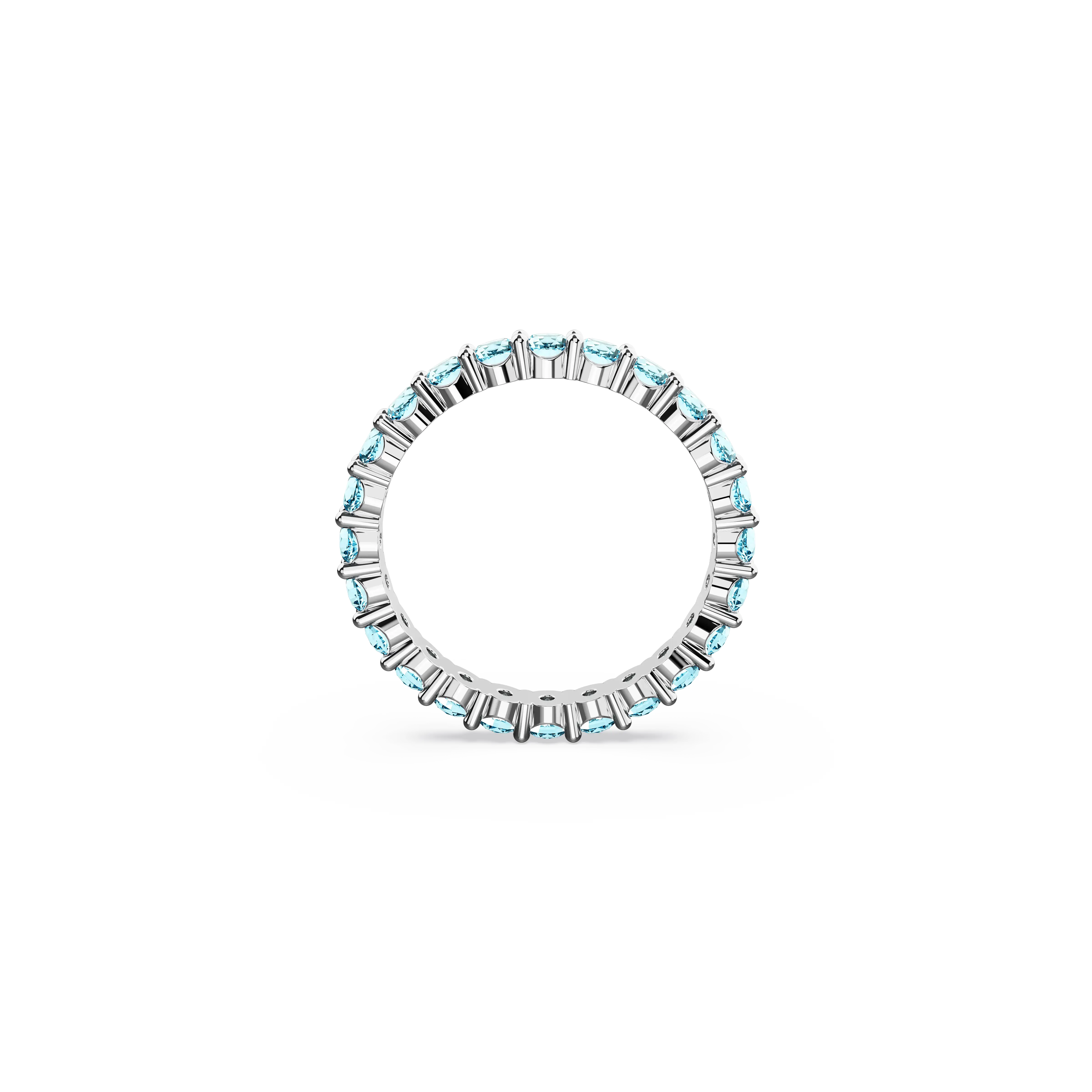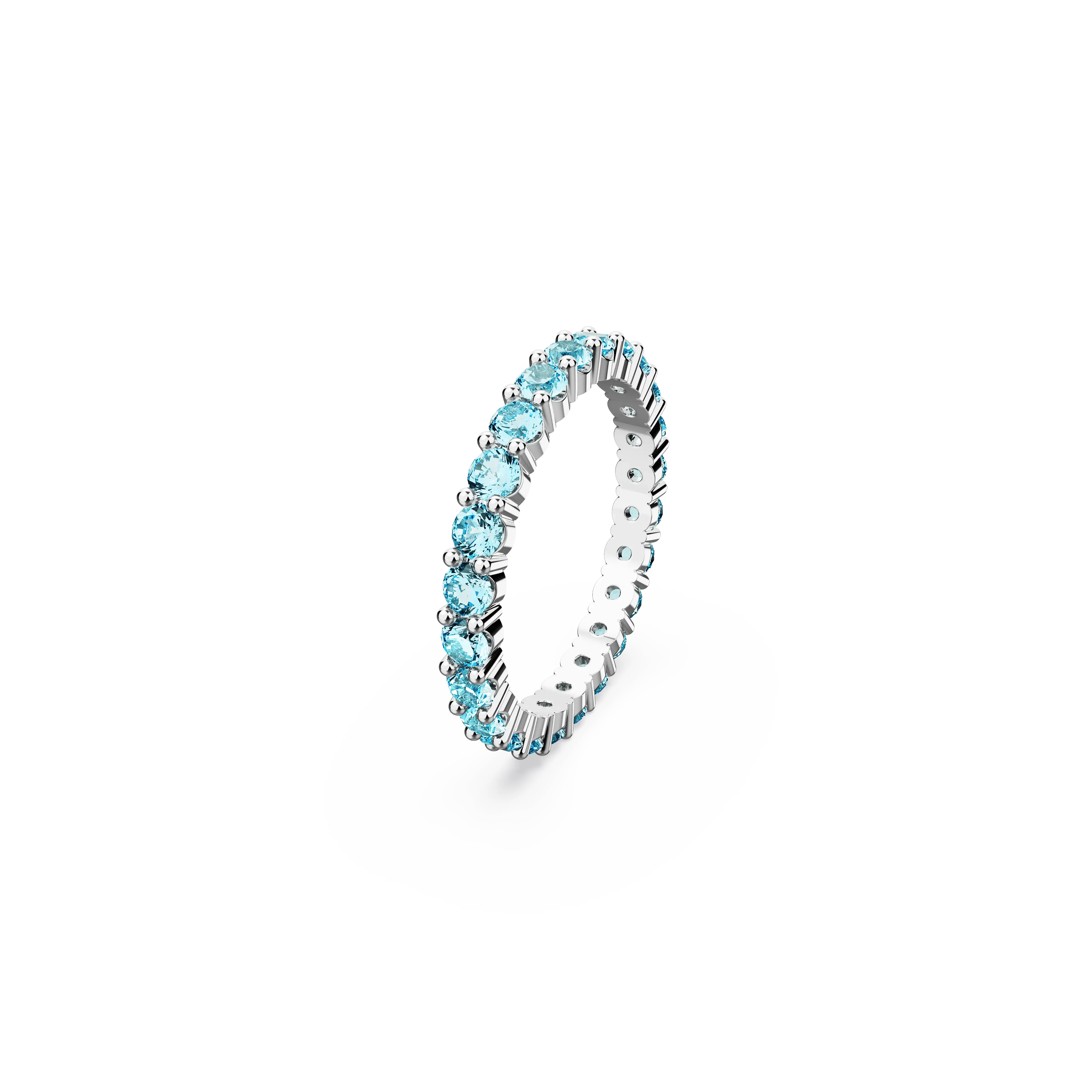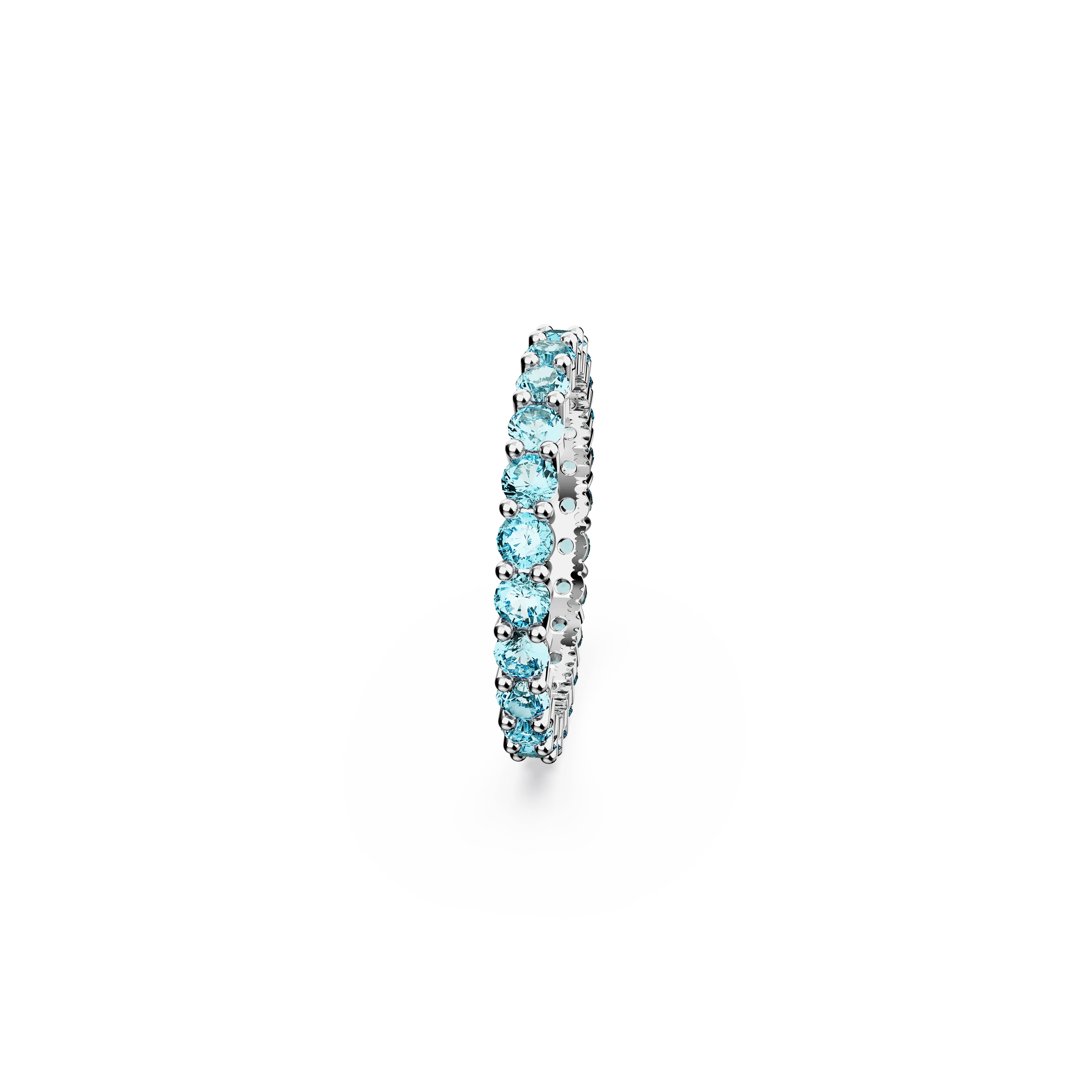 This playful ring has been made with vibrancy in mind. Set on rhodium plating,the design is embellished all-around with eye-catching stones in light aquamarine. Stack with other styles from the Matrix Vittore family to create your own dazzling combinations.