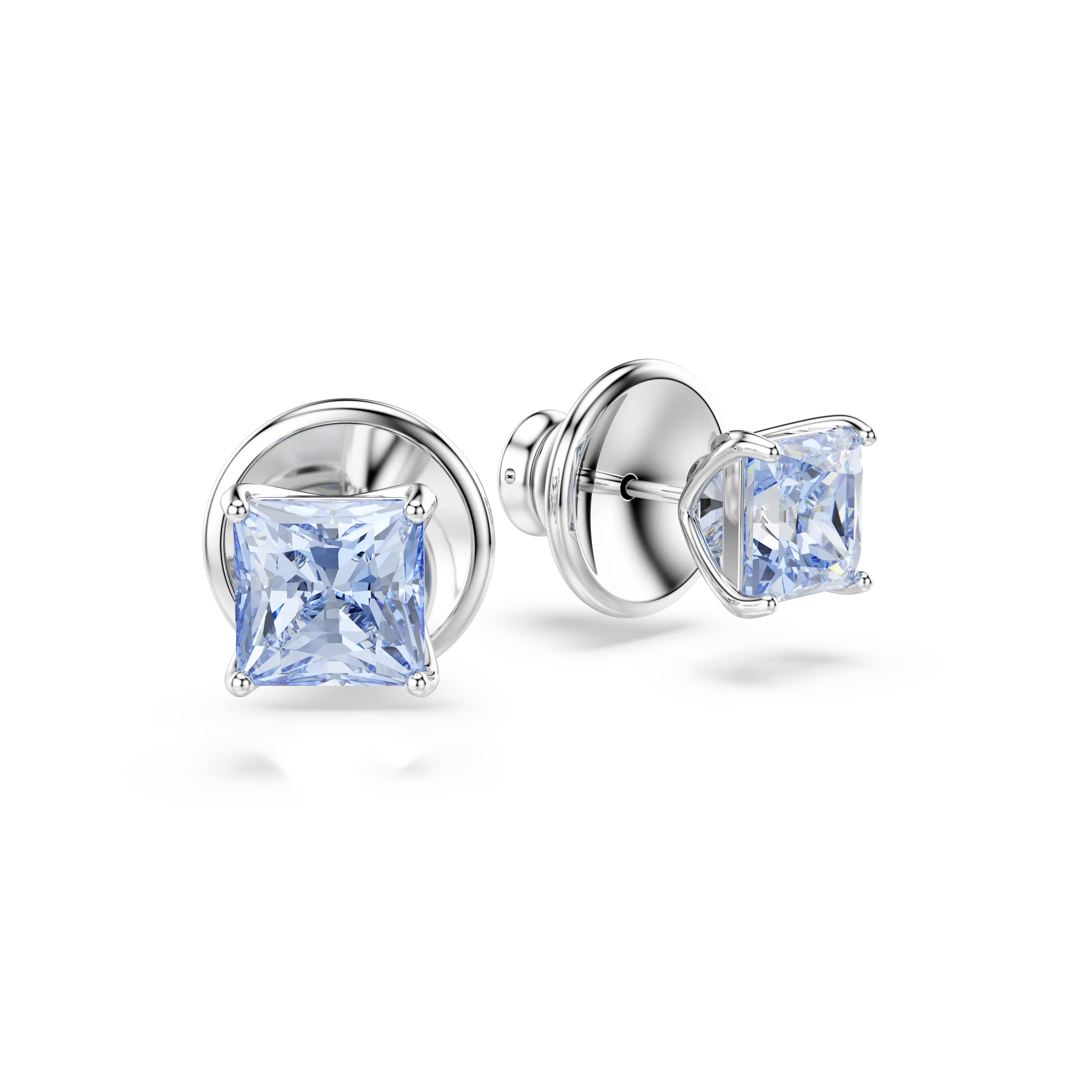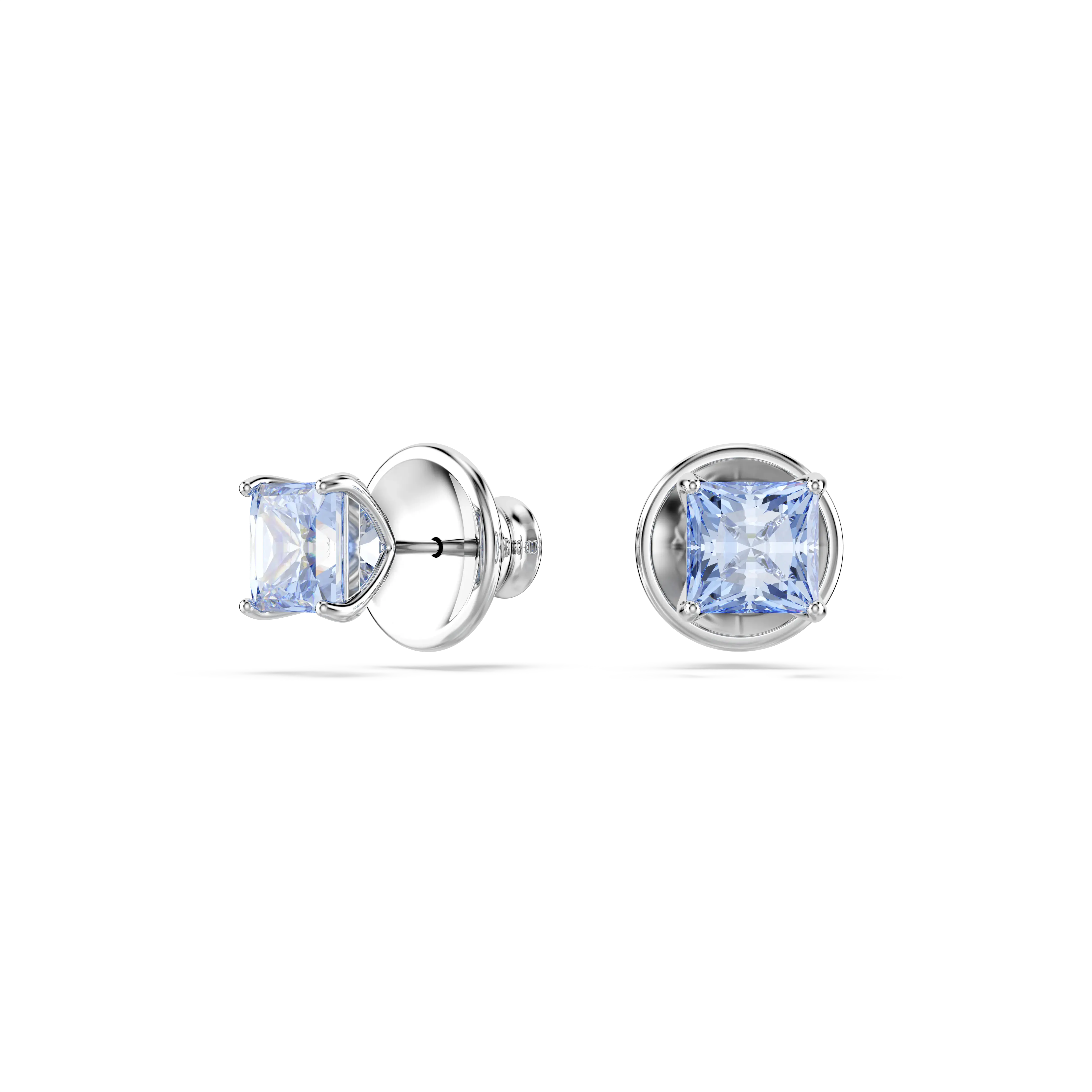 Matrix stud earrings Square cut/Blue/Rhodium plated