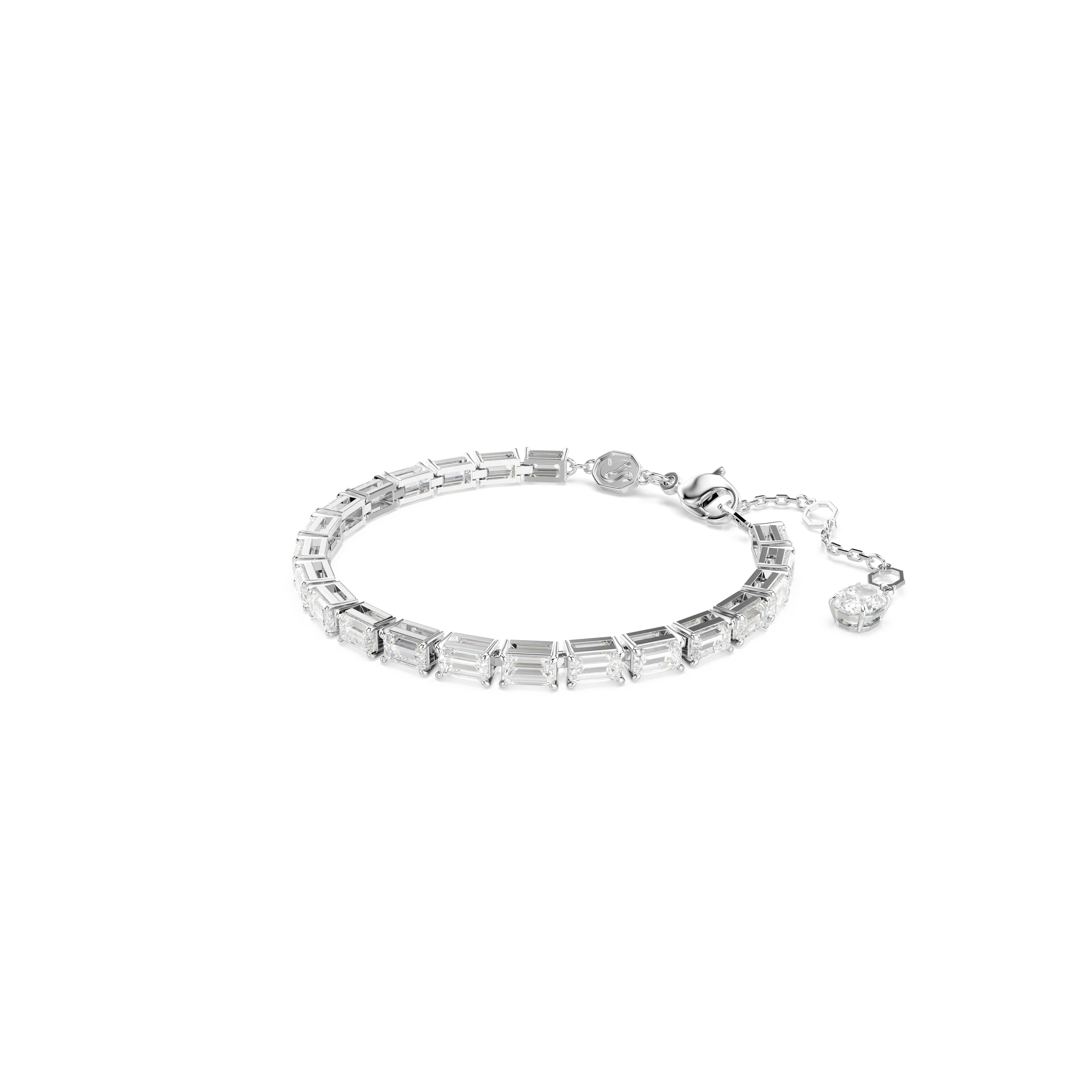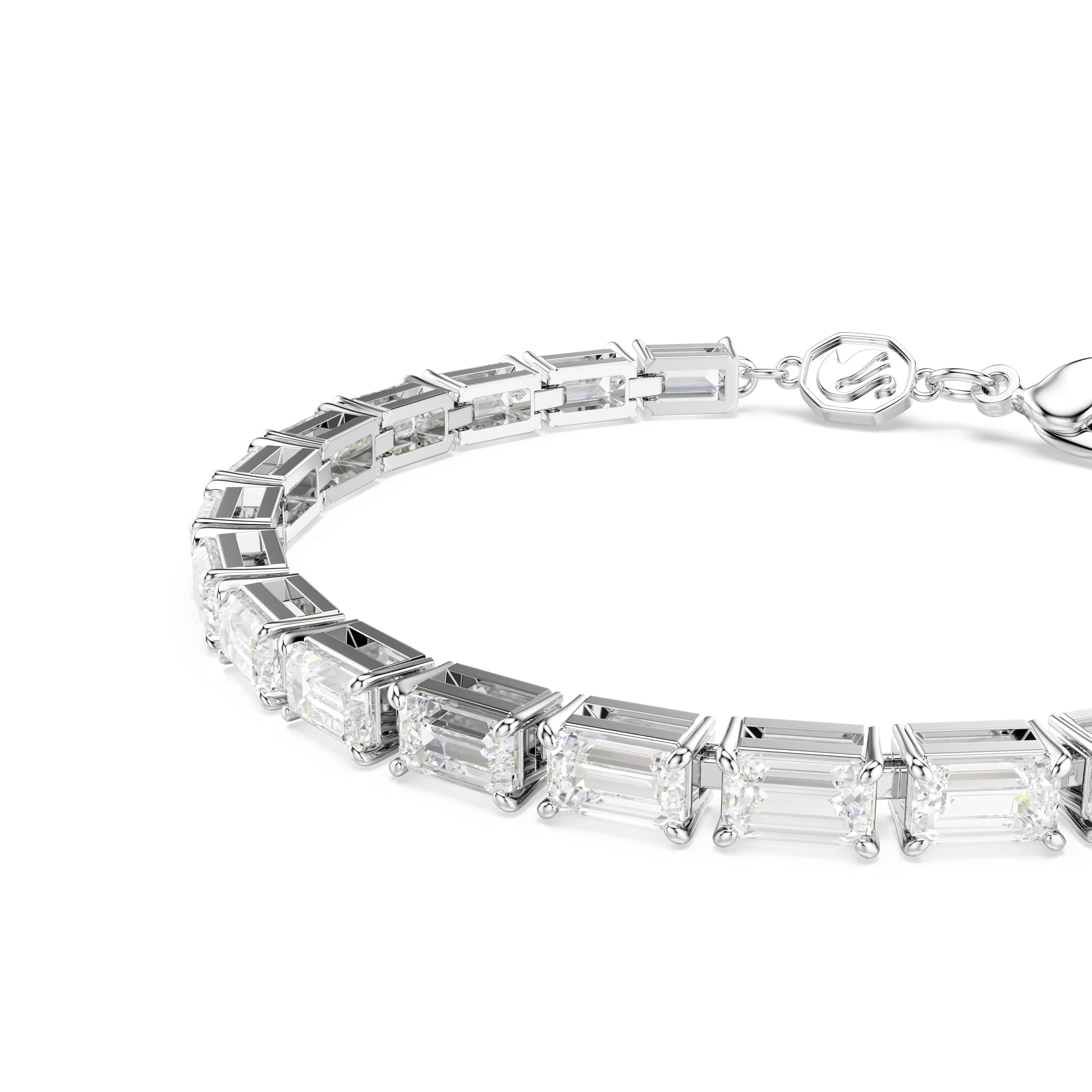 This delicate Matrix bracelet reimagines a timeless classic. Crafted with a lobster closure,the rhodium plated design features a full strand of octagon step-cut Swarovski Zirconia,creating a light-filled look that is simple yet eye-catching. Wear it as a pure piece of elegance for any occasion,day or night.