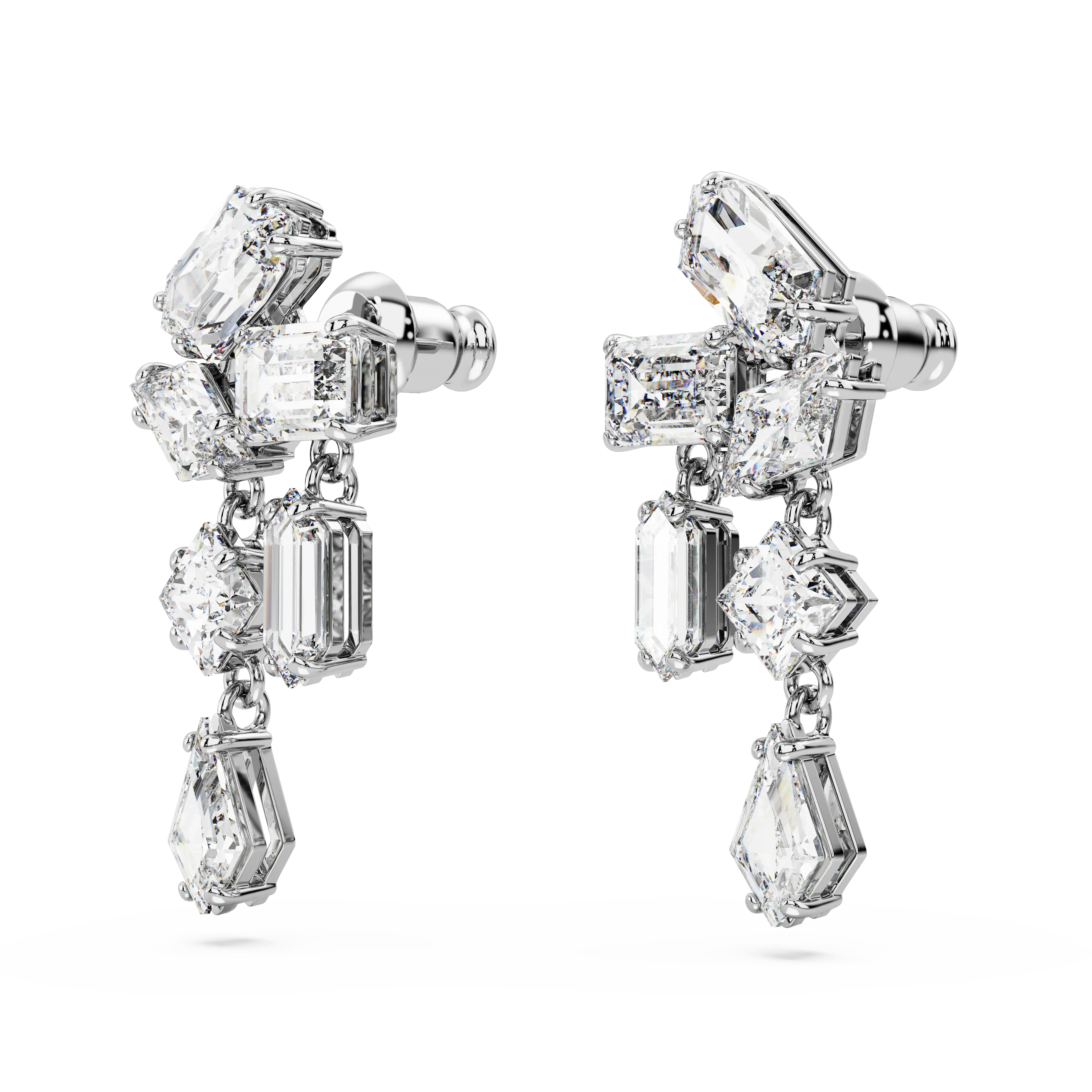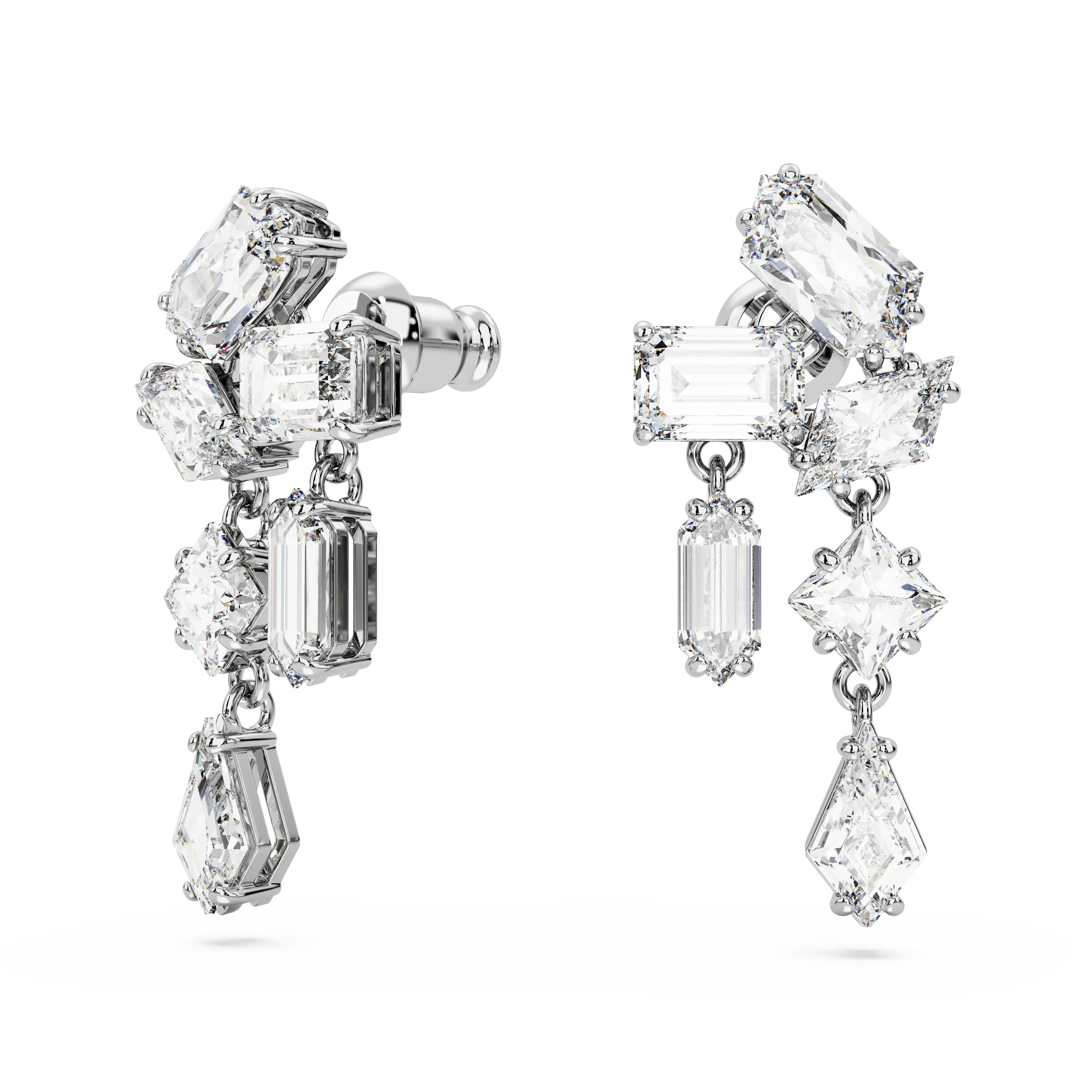 Mesmera drop earrings Mixed cuts/White/Rhodium plated