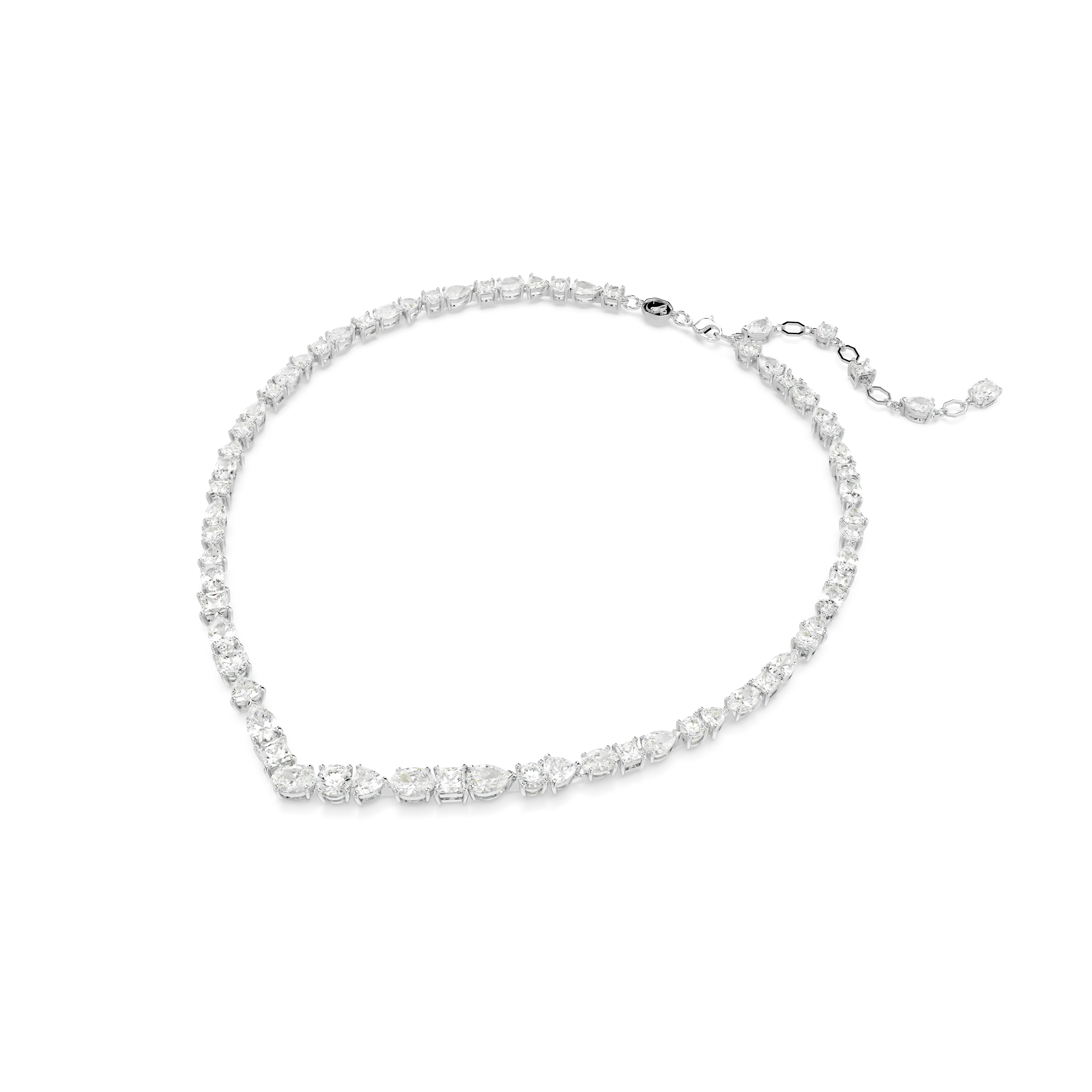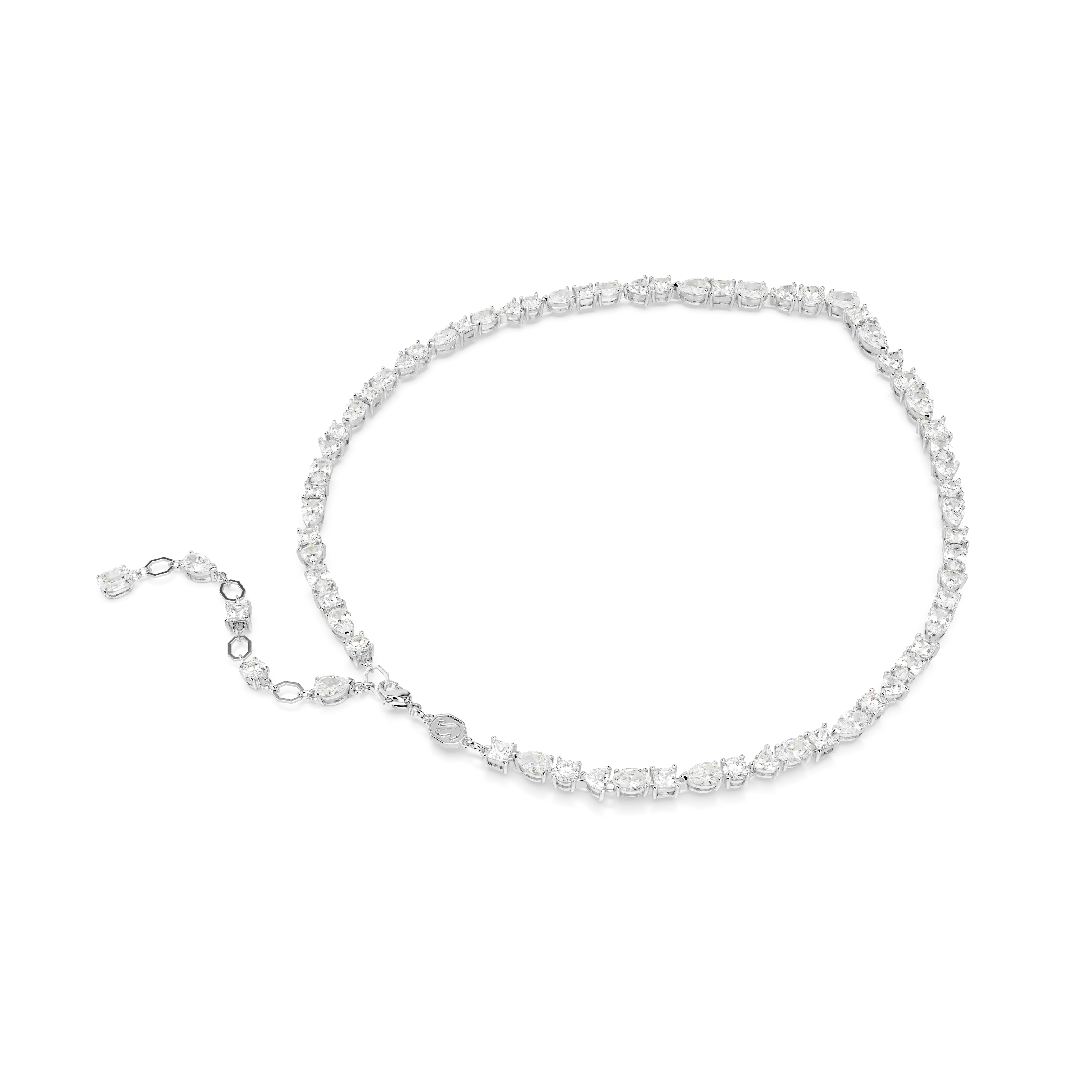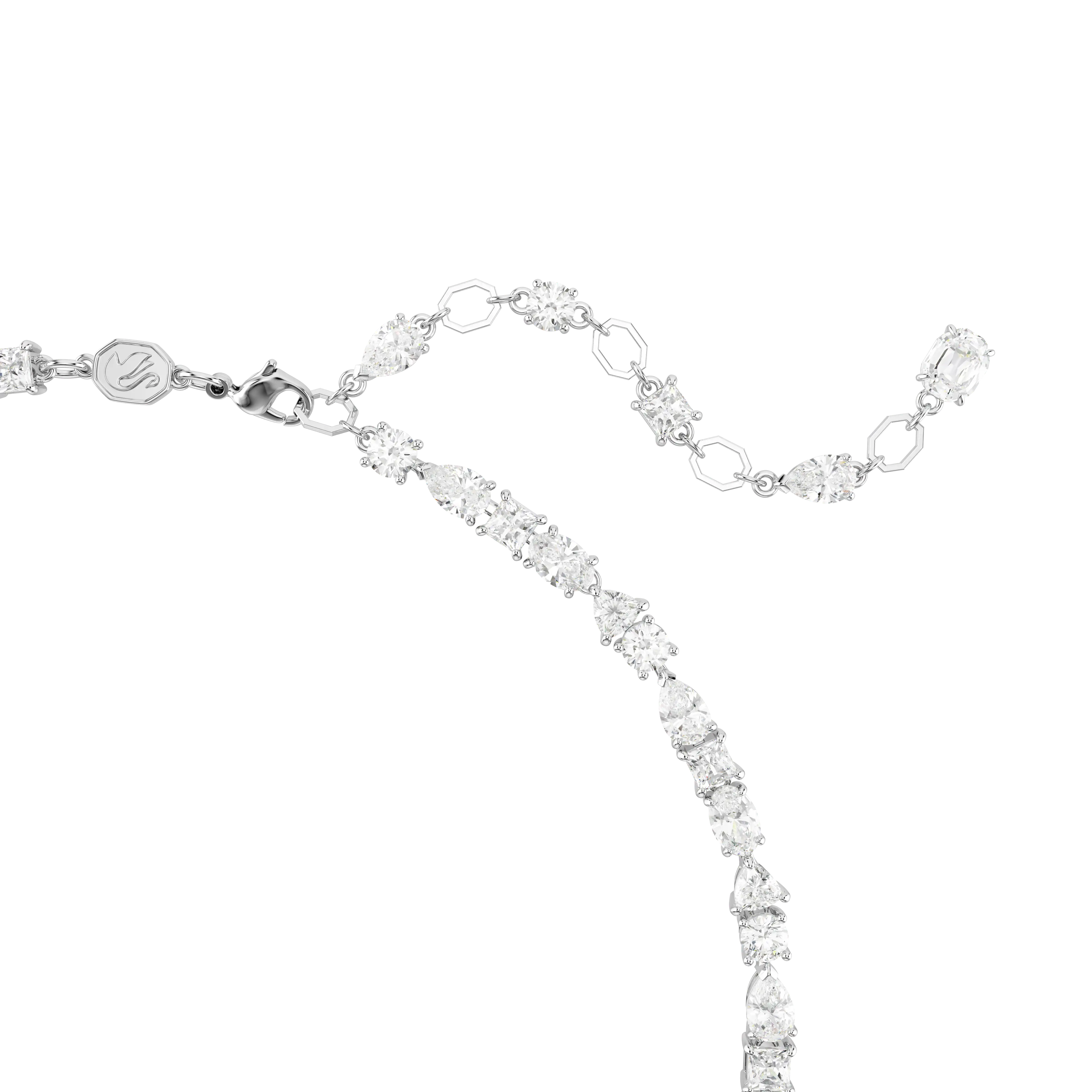 Embrace the pure refinement of this dazzling Mesmera necklace. The luminous design is made with a string of eye-catching Swarovski Zirconia on a rhodium plating setting in a surprising mix of cuts and sizes. For extra luxury,the elongation is completed with a lobster closure and a scattering of striking Swarovski Zirconia. Gift this to a loved one for a style to be worn again and again.