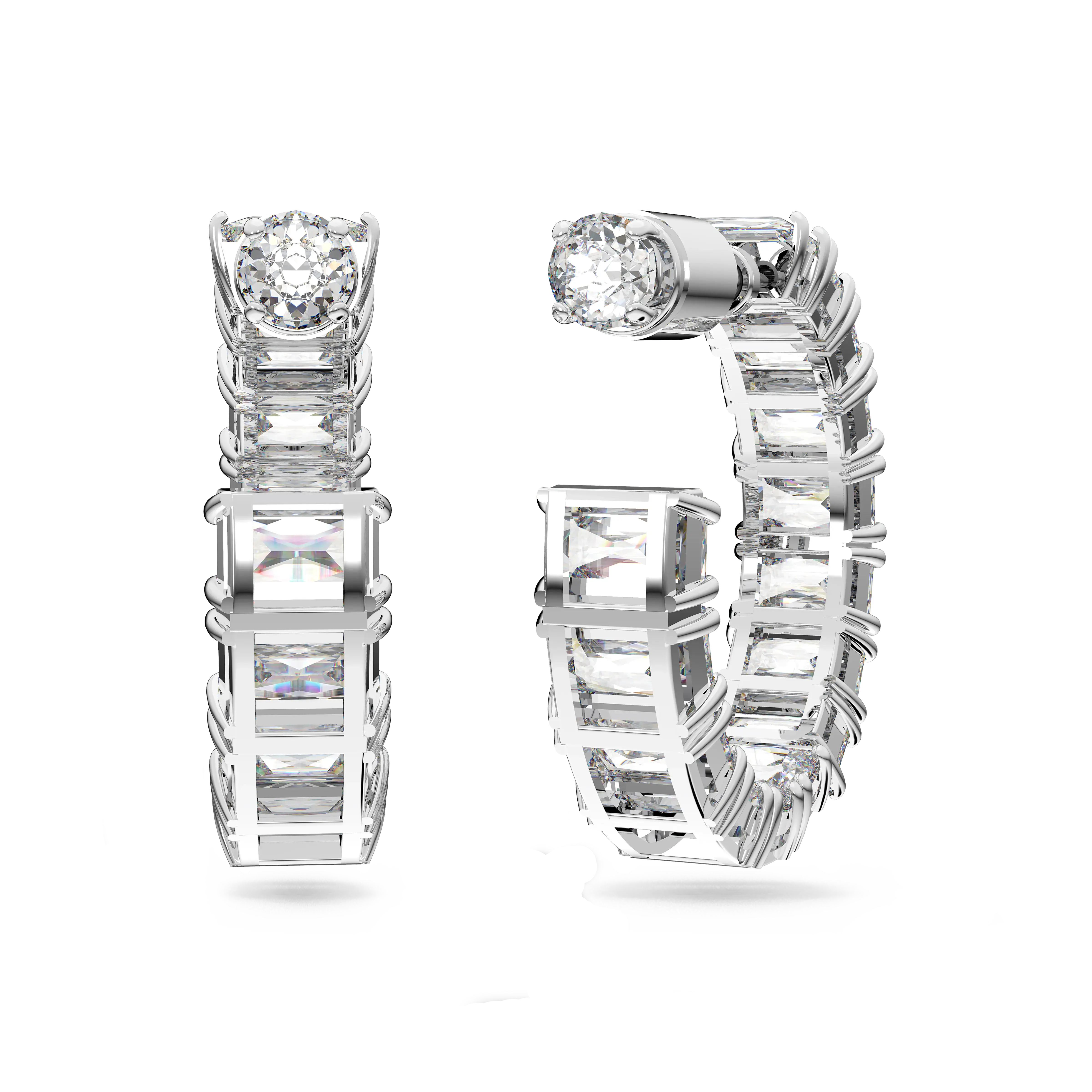 Millenia hoop earrings Octagon cut/White/Rhodium plated