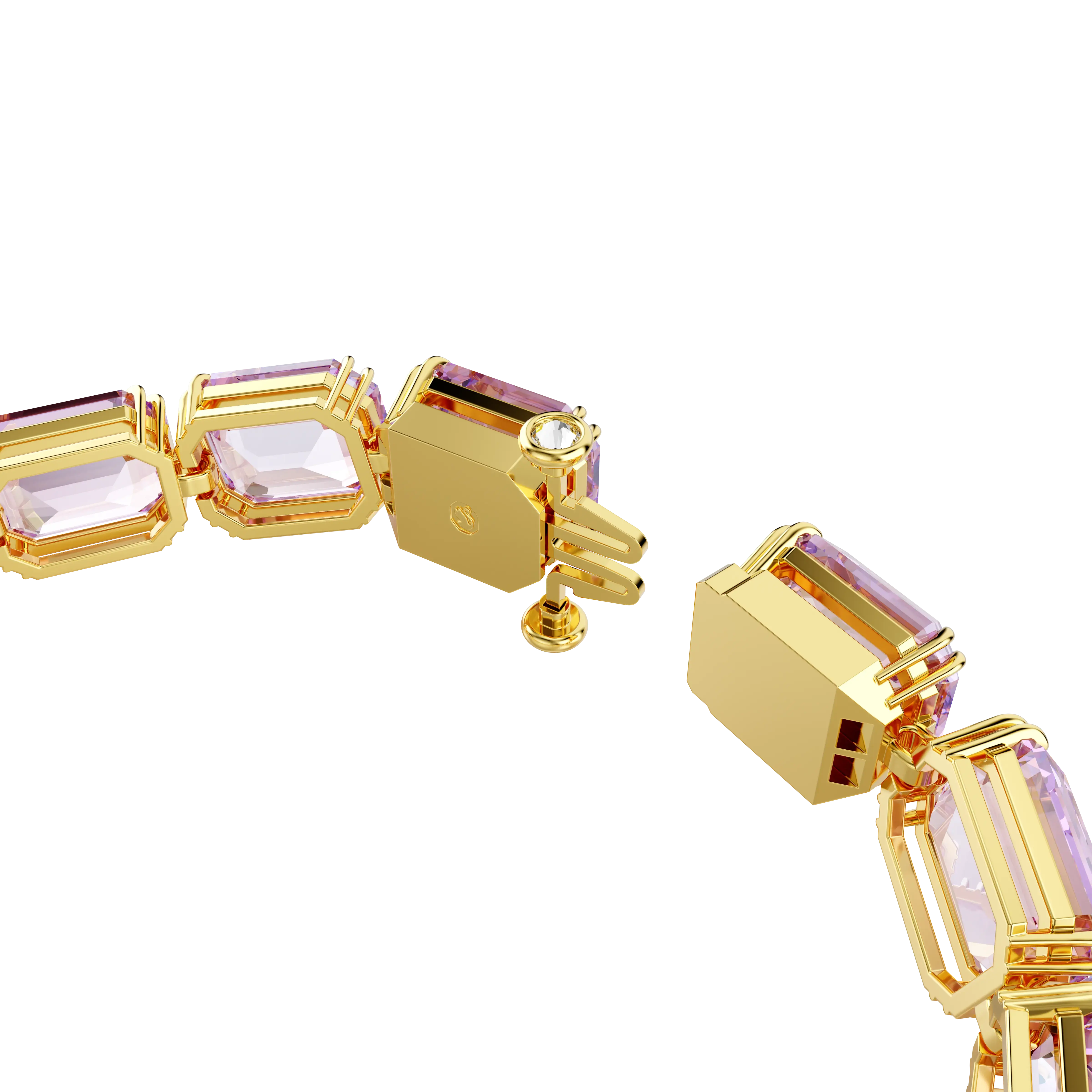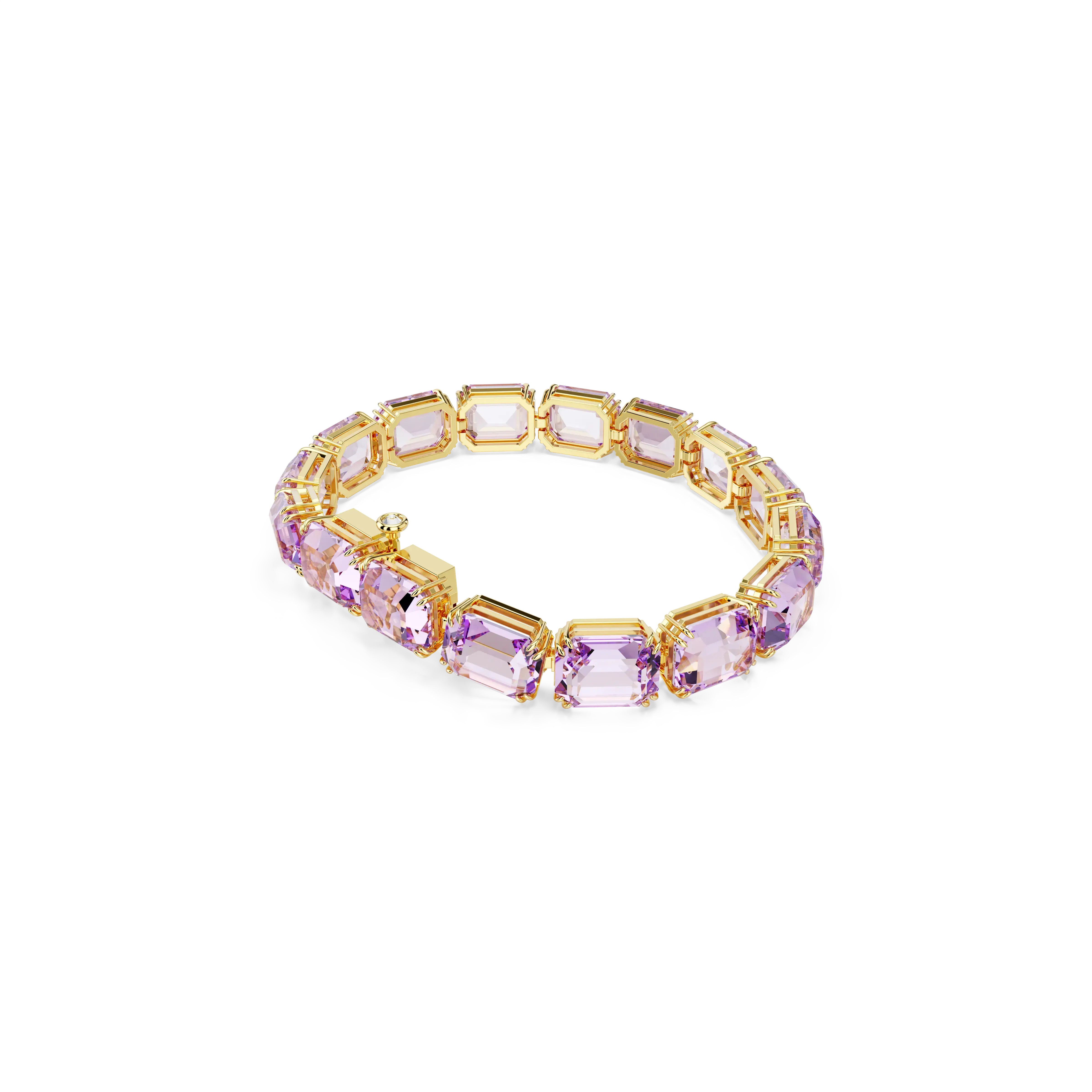 Radiating light and vivid color,this brilliant Millenia bracelet demands attention. The all-round design is gold-tone plated and brought to life by a majestic decoration of octagon-cut crystals in a purple shade. A pure expression of joy that can be easily paired with a matching choker or necklace.
