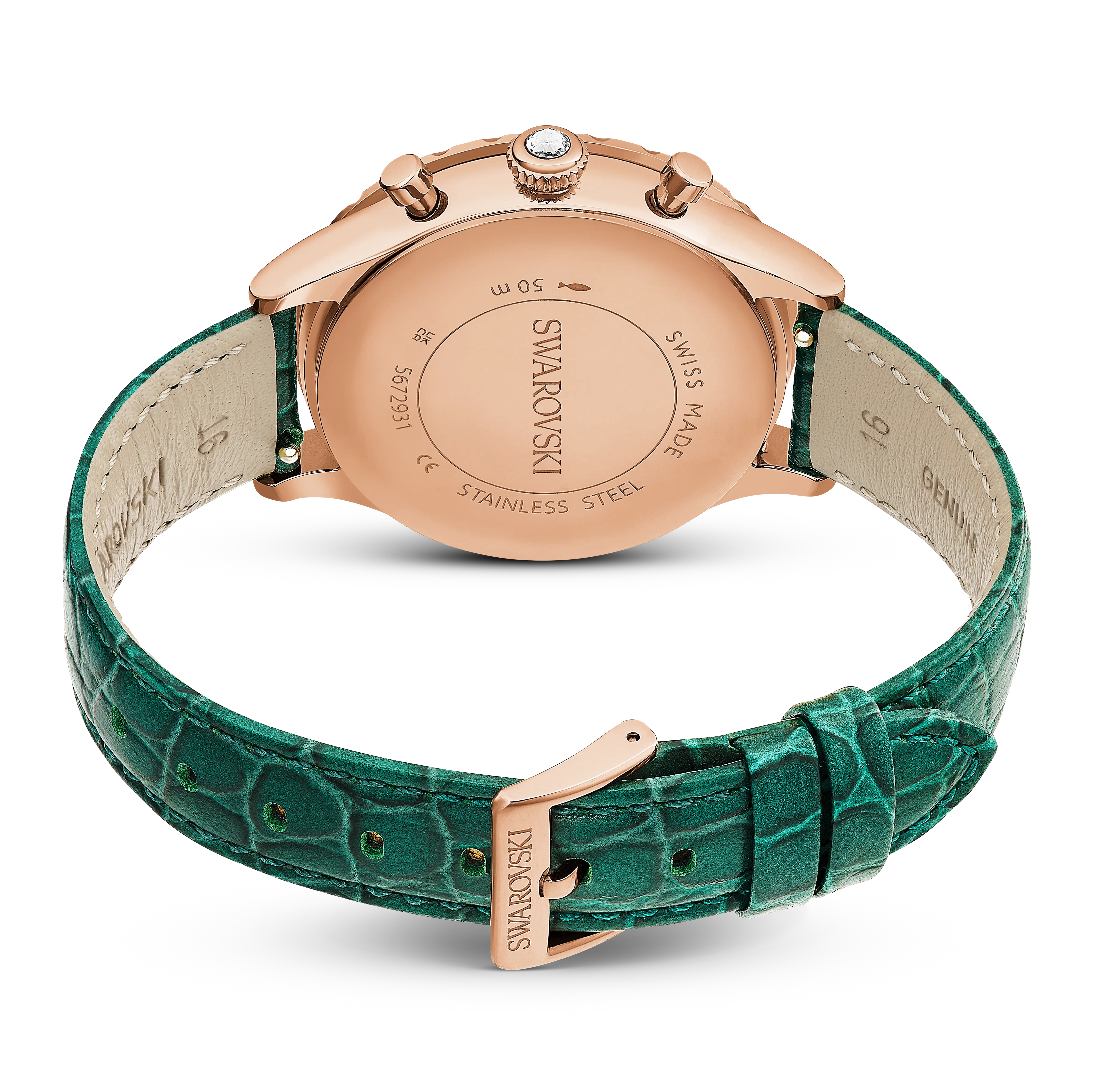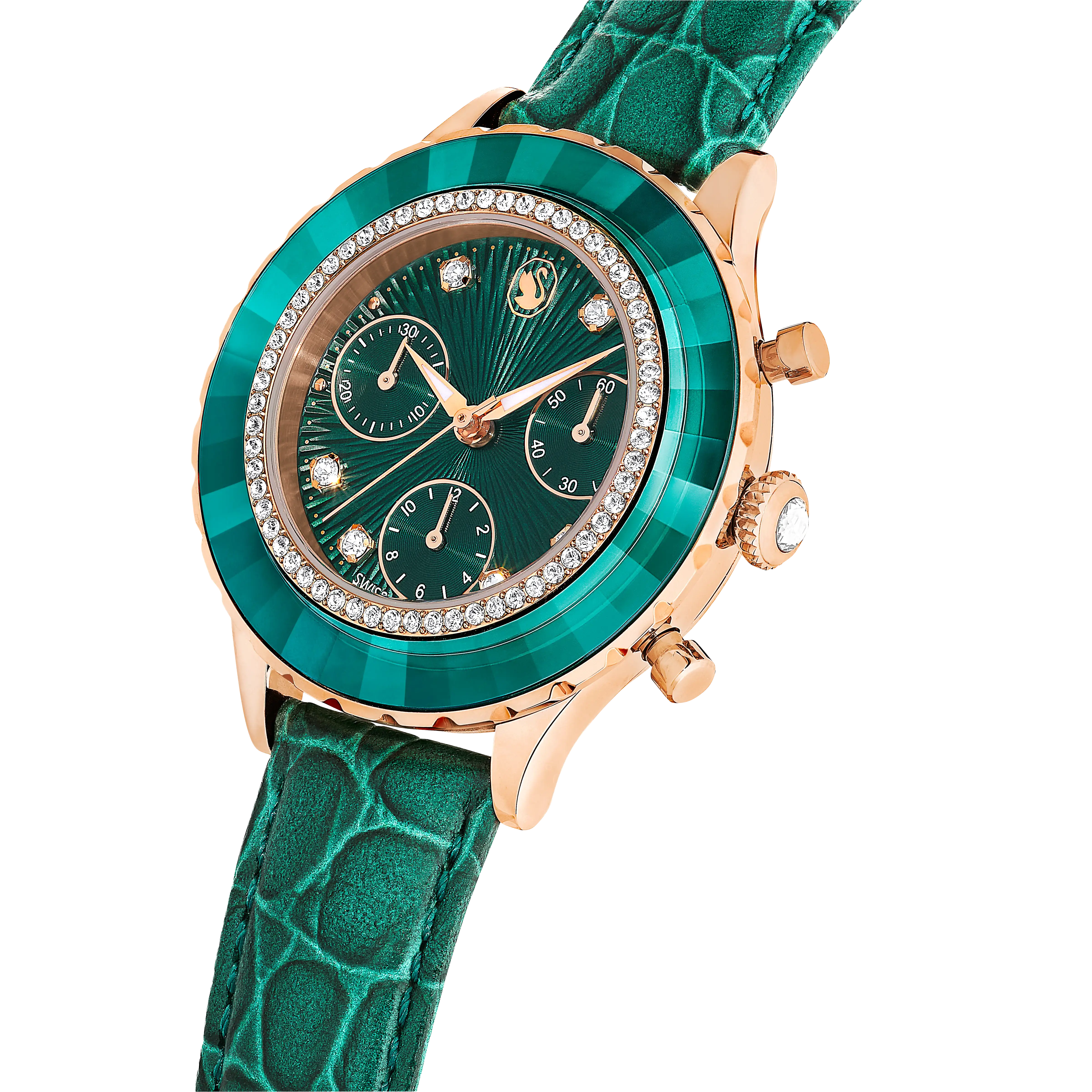 Octea Chrono watch Swiss Made/Leather strap/Green/Rose gold-tone finish