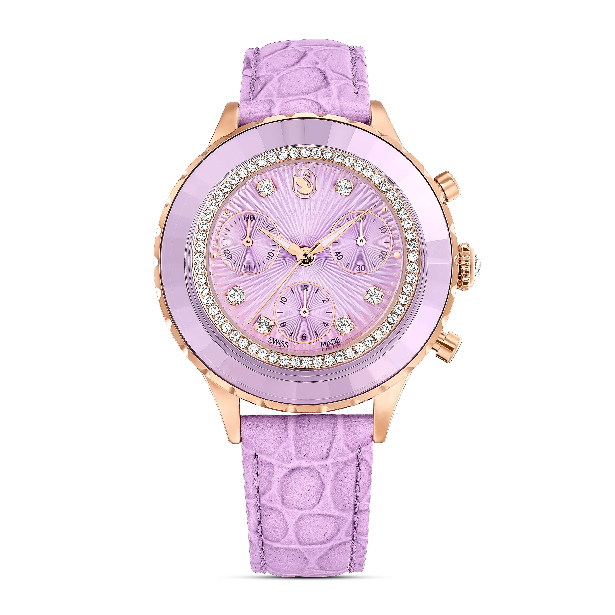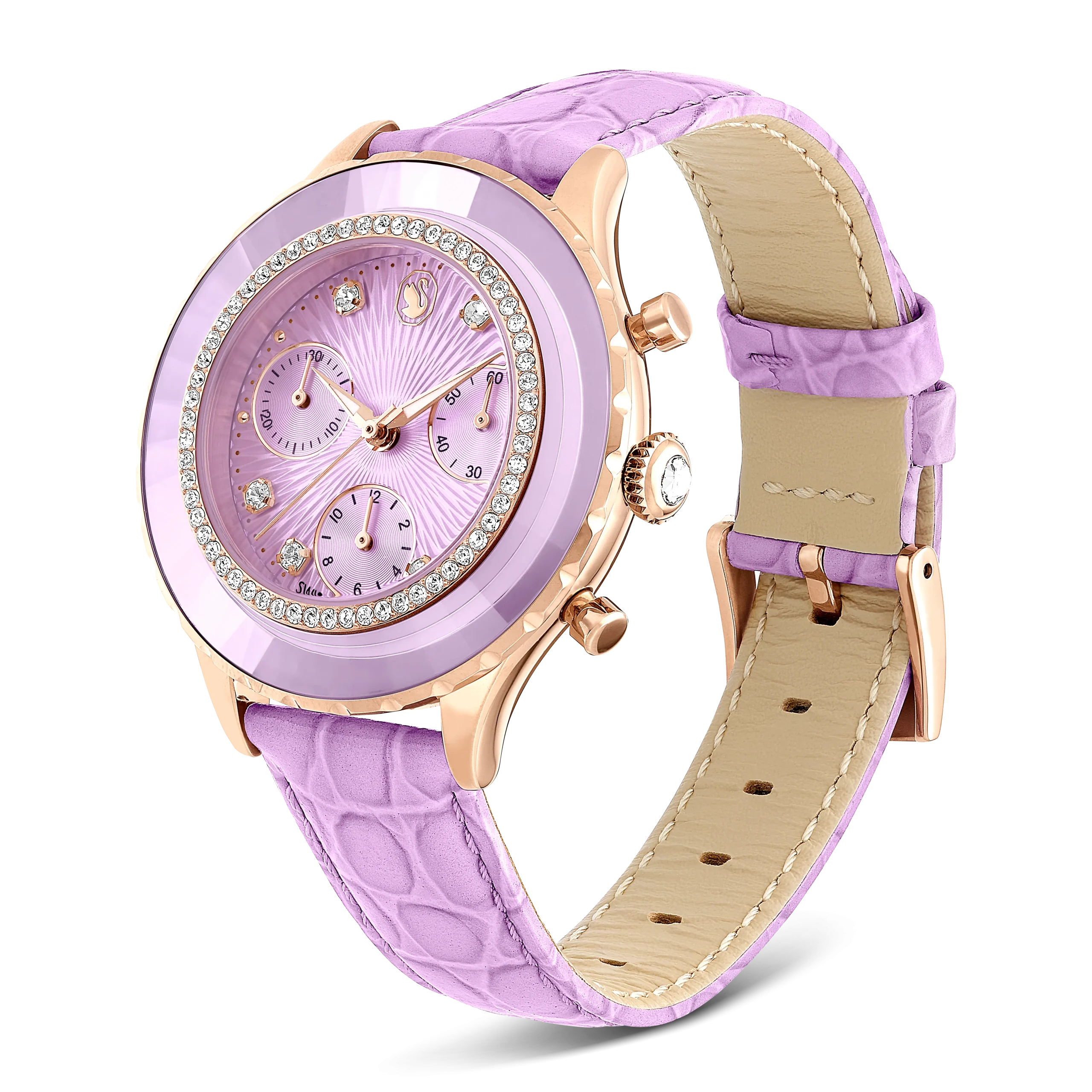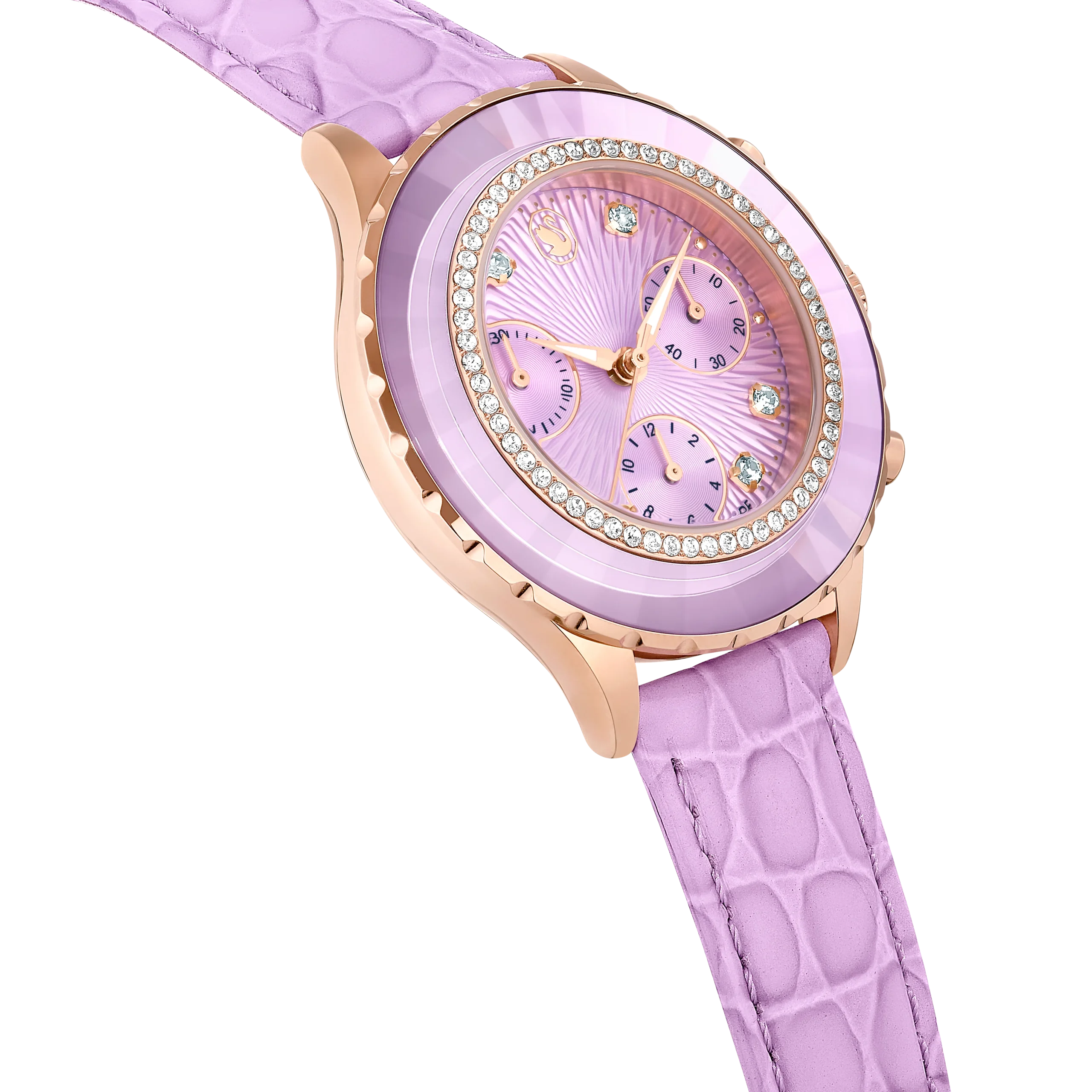 Octea Chrono watch Swiss Made/Leather strap/Purple/Rose gold-tone finish