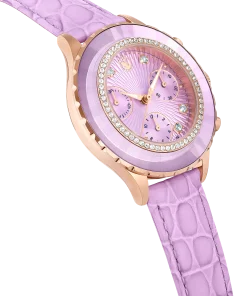 Crystalline Lustre watch Swiss Made/Leather strap/Purple/Rose gold-tone finish