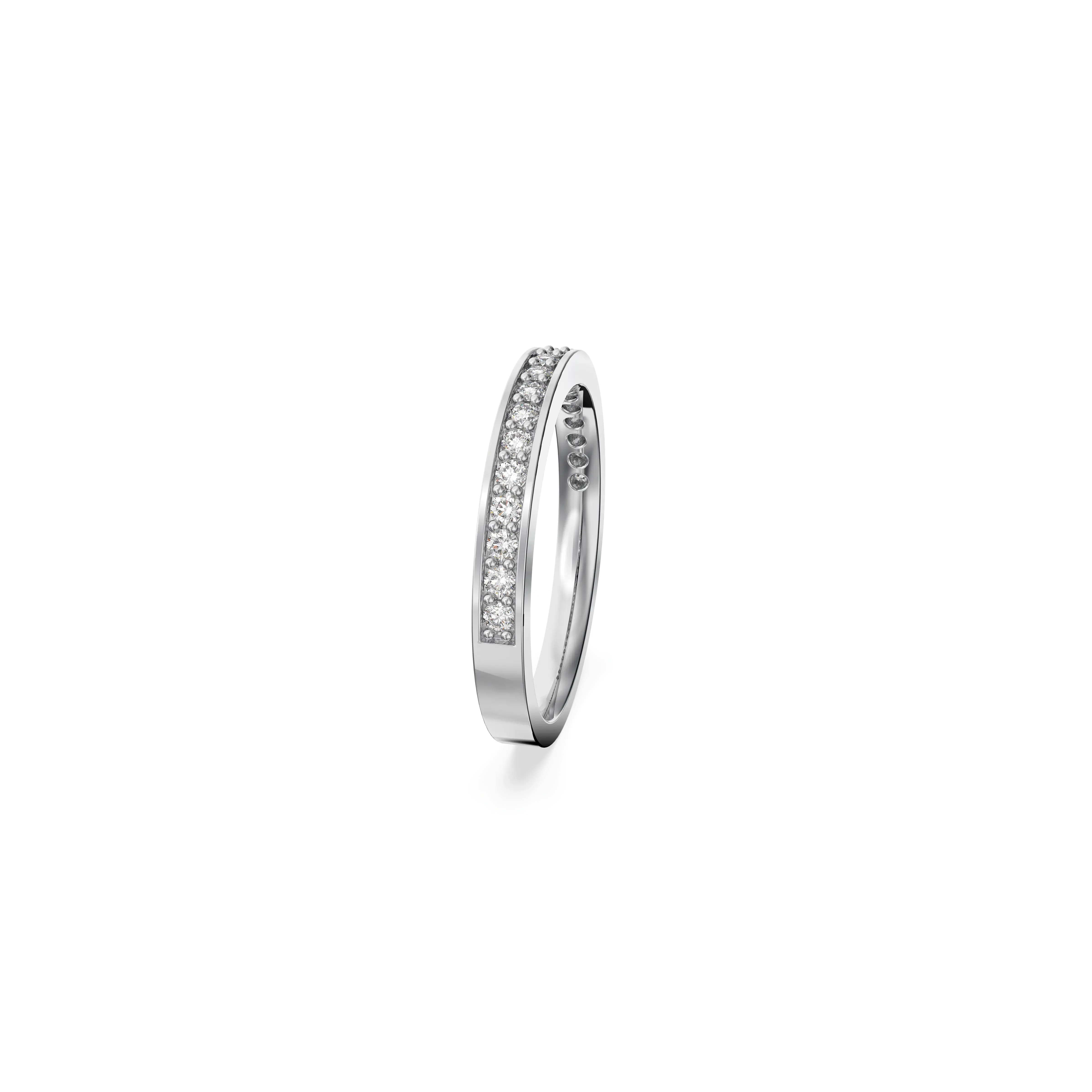 An essential piece for any jewelry box. With a slim silhouette and a half-circle of precision-cut stones,this delicate rhodium-plated ring is refined and easy to wear. Combine it with other pieces in silver tones or mix your metals for added interest.