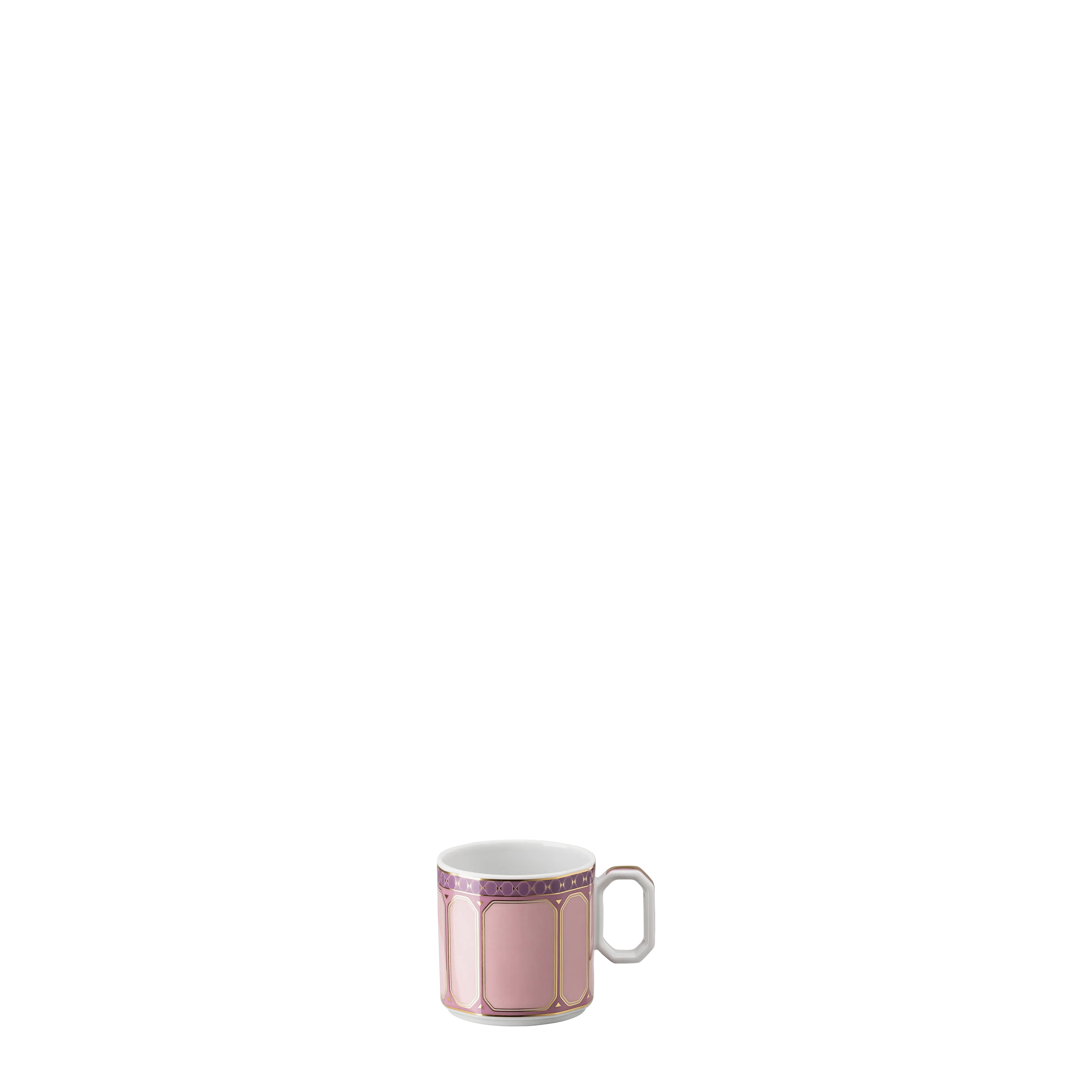 Elevate coffee time with this delightful espresso cup and saucer. The geometric motif in a joyful shade of pink features Swarovski’s signature octagon shape framed in golden tones and complemented by an artful octagonal handle. This cup is part of a collaboration with porcelain brand Rosenthal. It is dishwasher safe.