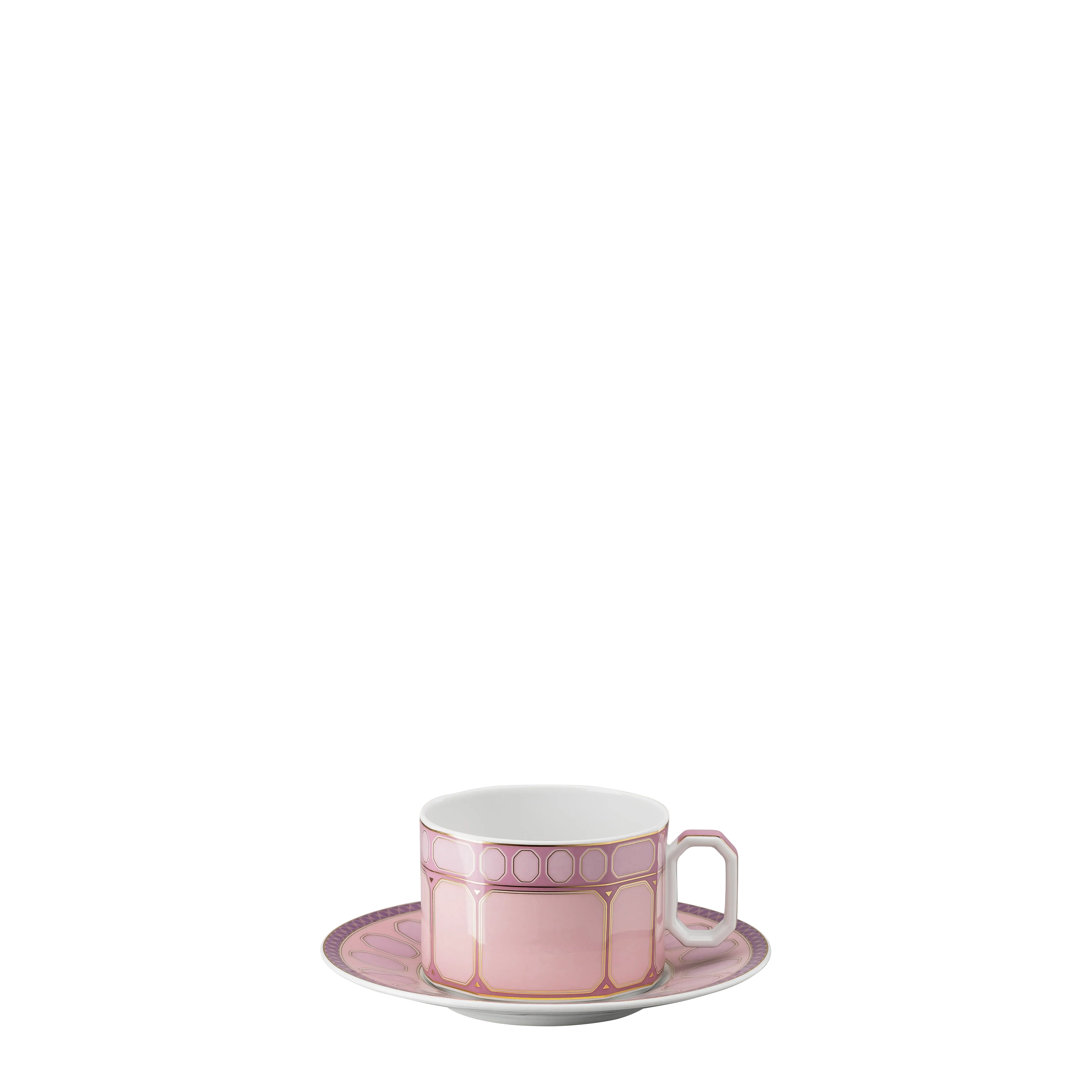 The perfect blend of sweetness and sophistication,this two-tier étagère will bring elegance to any table. Crafted from porcelain,each level of this spectacular cake stand features a pink geometric pattern inspired by Swarovski’s signature octagon. The octagon also appears on the gold-tone handle,alongside a single pink crystal. This étagère was created in partnership with porcelain brand Rosenthal. Do not use in the dishwasher or microwave.