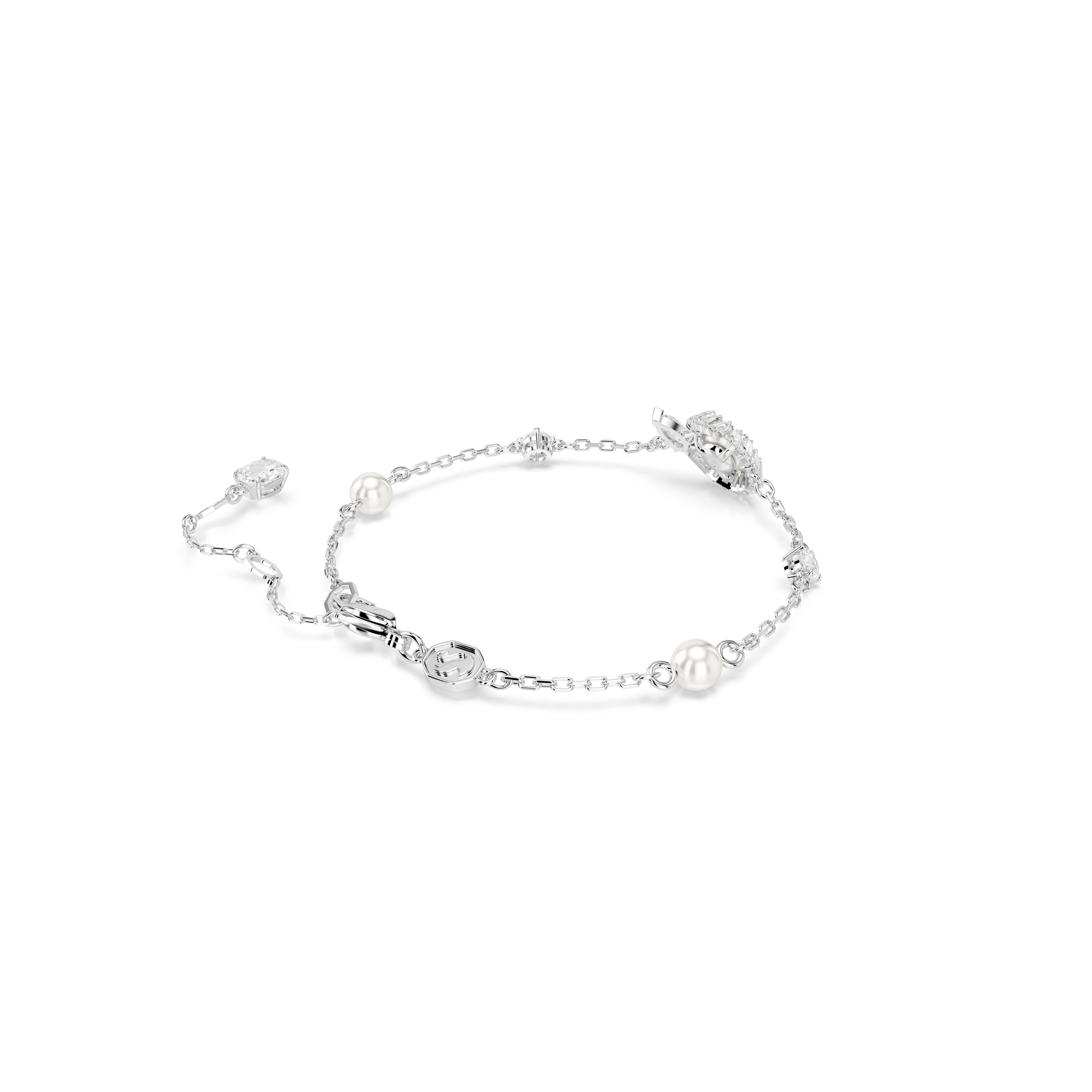 Snake bracelet Crystal pearl/Mixed cuts/Year of the Snake/White/Rhodium plated