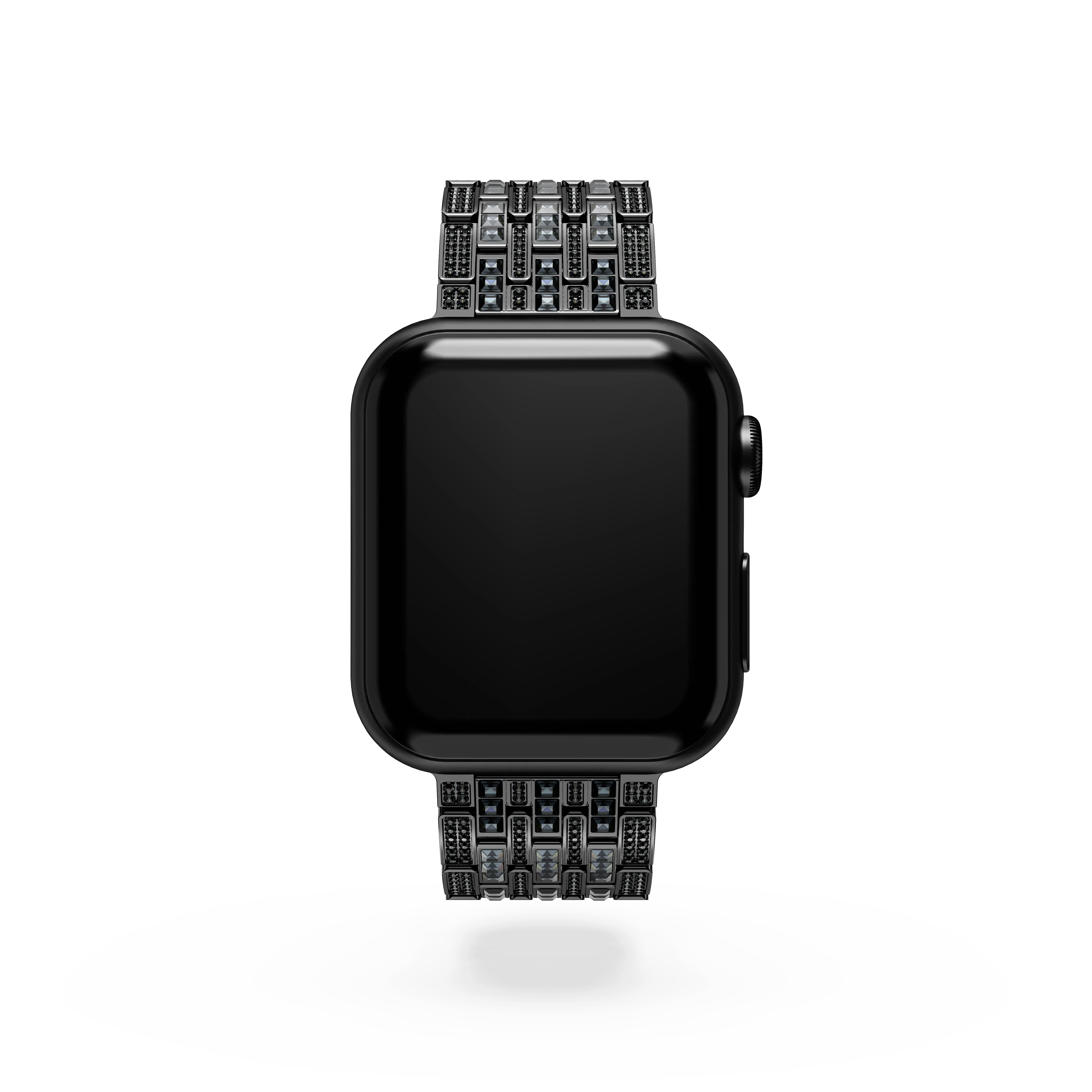 Keep time in style with this striking strap crafted for compatibility with Apple Watch®. The eye-catching design features PVD black tone,fully embellished with silver night crystals. Style with your Swarovski jewelry. This strap suits Apple Watches® sized 40mm or 41mm,including Series 4 – 9 and SE. Apple Watch® is a trademark of Apple Inc. This product is delivered with a standard size bracelet and two additional links,enabling it to be made longer or shorter with the help of our instore staff.