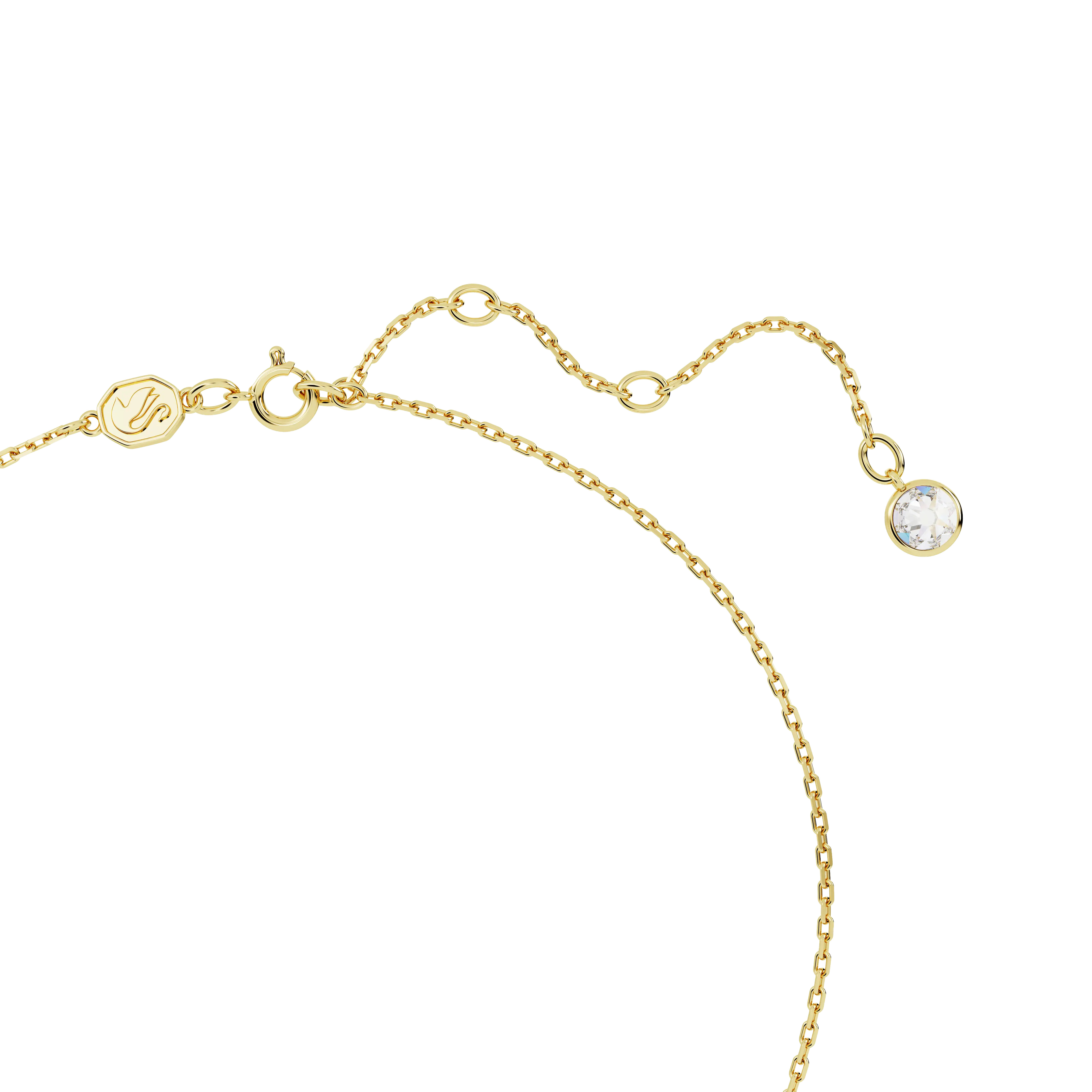 This shimmering pendant from the Chroma family is small yet powerfully beautiful. Like a droplet of light,the pendant features a pear-cut green centerstone in a gold-tone plated surround enhanced with square clear crystals around the edges and the bail. Beautifully attached to a gold-tone plated chain with a round stone detail at the end and a 5cm elongation,this is a piece you can wear every day,making it a signature part of your style.