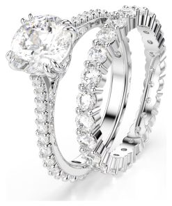 Elevate everyday looks with this rhodium-plated ring set from the Stilla family. Each piece is inspired by fine jewelry techniques: one ring dazzles with a clear princess-cut stone and pavé embellishment on the gallery,while the other features a row of shimmering stones around the band. A beautiful gift idea for a loved one – or yourself.
