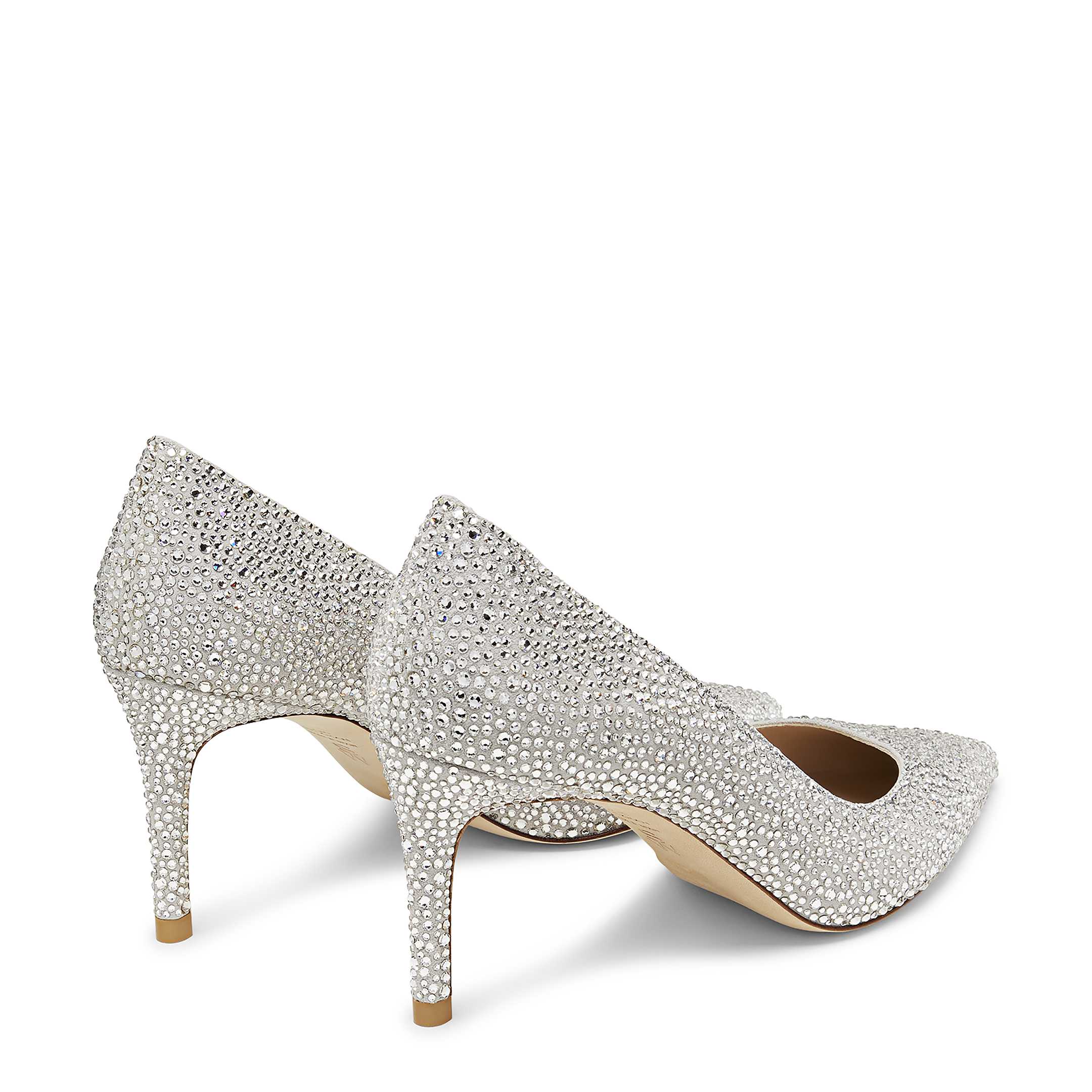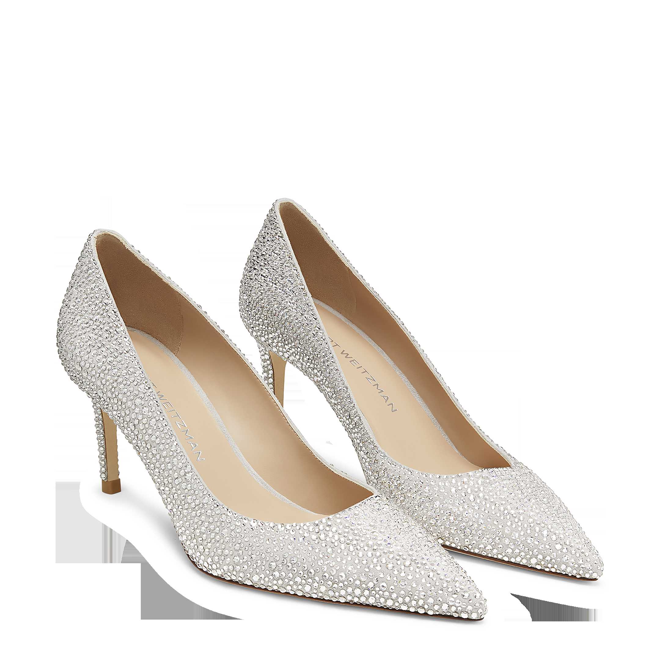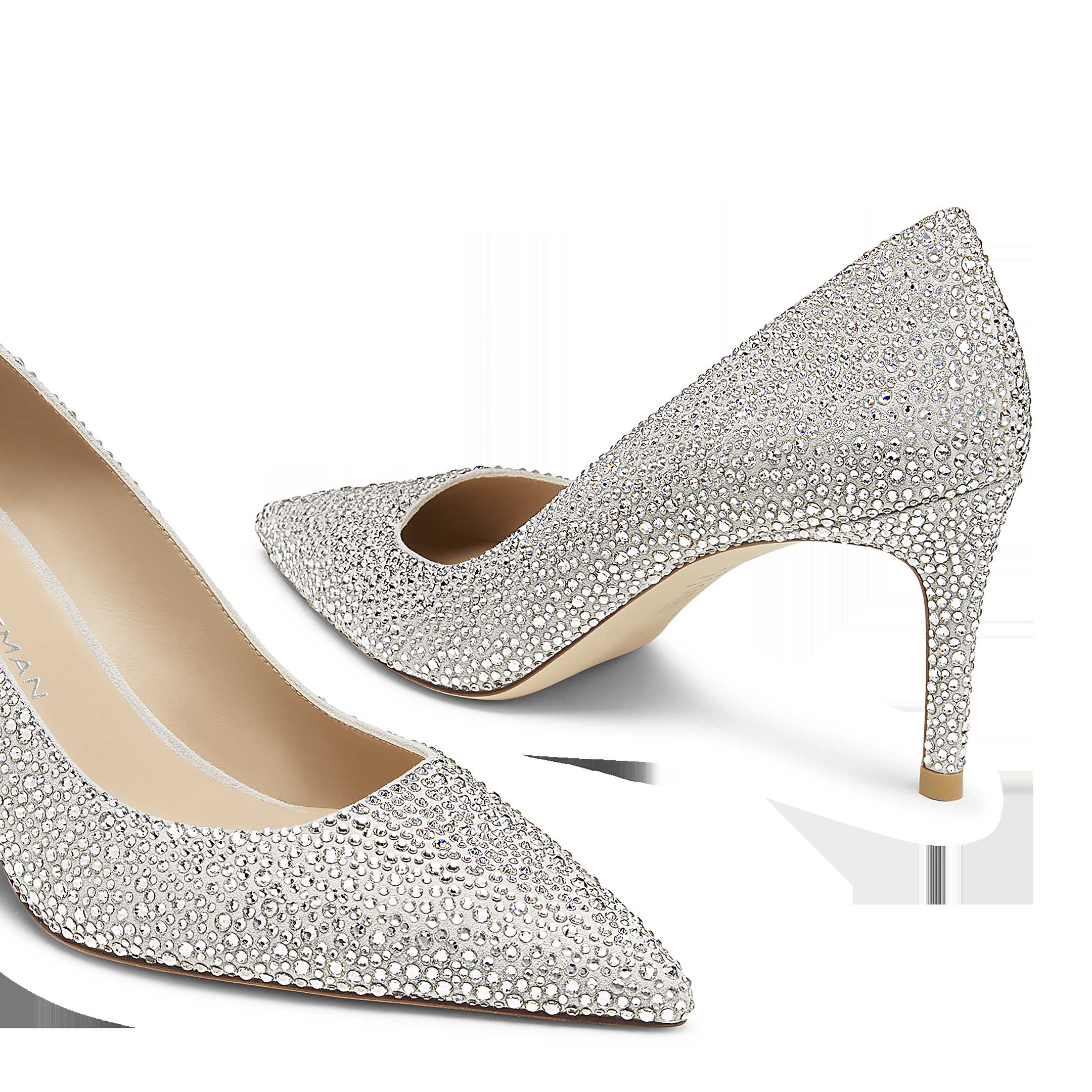 This limited-edition STUART POWER SHINE pump,created in collaboration with the Swarovski Creators Lab,delivers a high-shine,high-glam take on the new icon,the STUART POWER 75 pump. Meticulously crafted by expert artisans in Spain,each pair is adorned with over 6,000 clear Swarovski pavé crystals. The silhouette features a modernized construction for maximum style and comfort,including a reworked 75mm stiletto heel set on a subtle angle for extra support. Make every step striking in this dazzling pump.