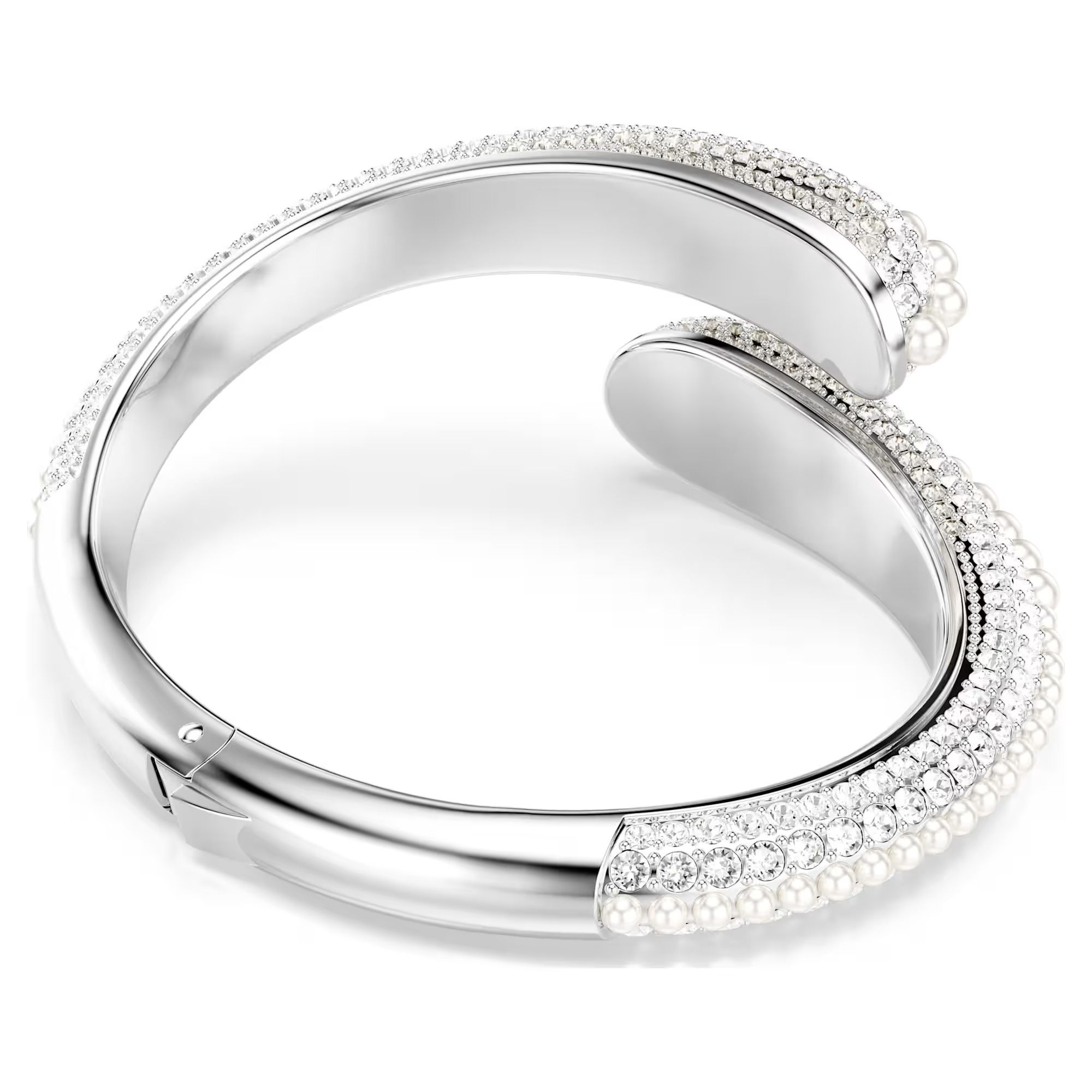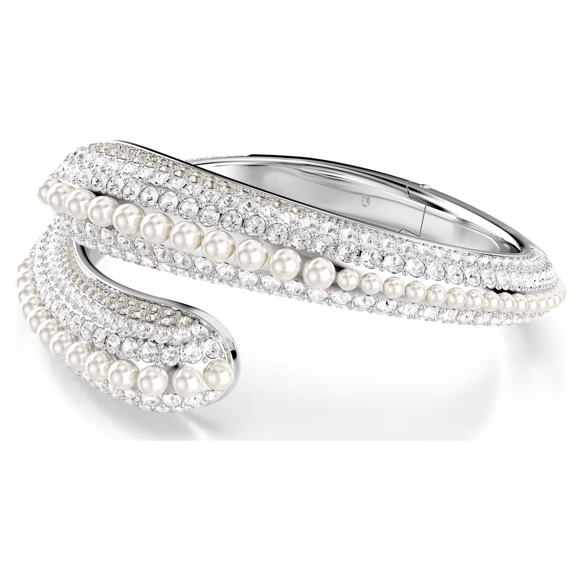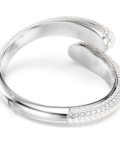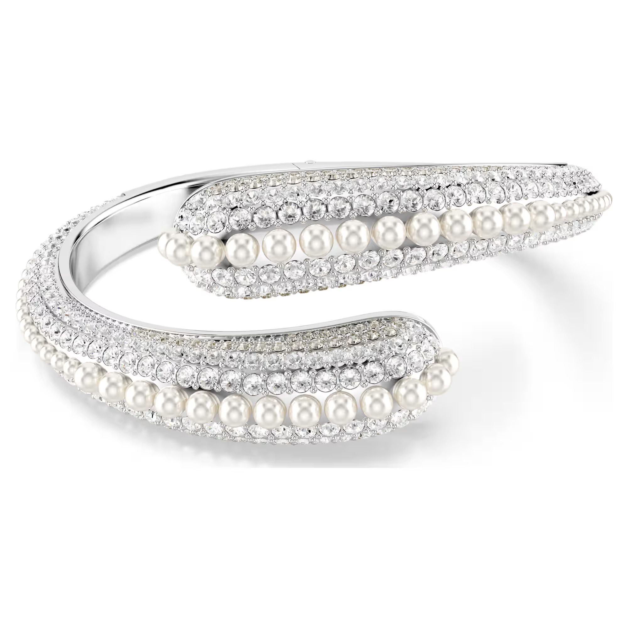Sublima cuff Crystal pearl/Round cut/White/Rhodium plated