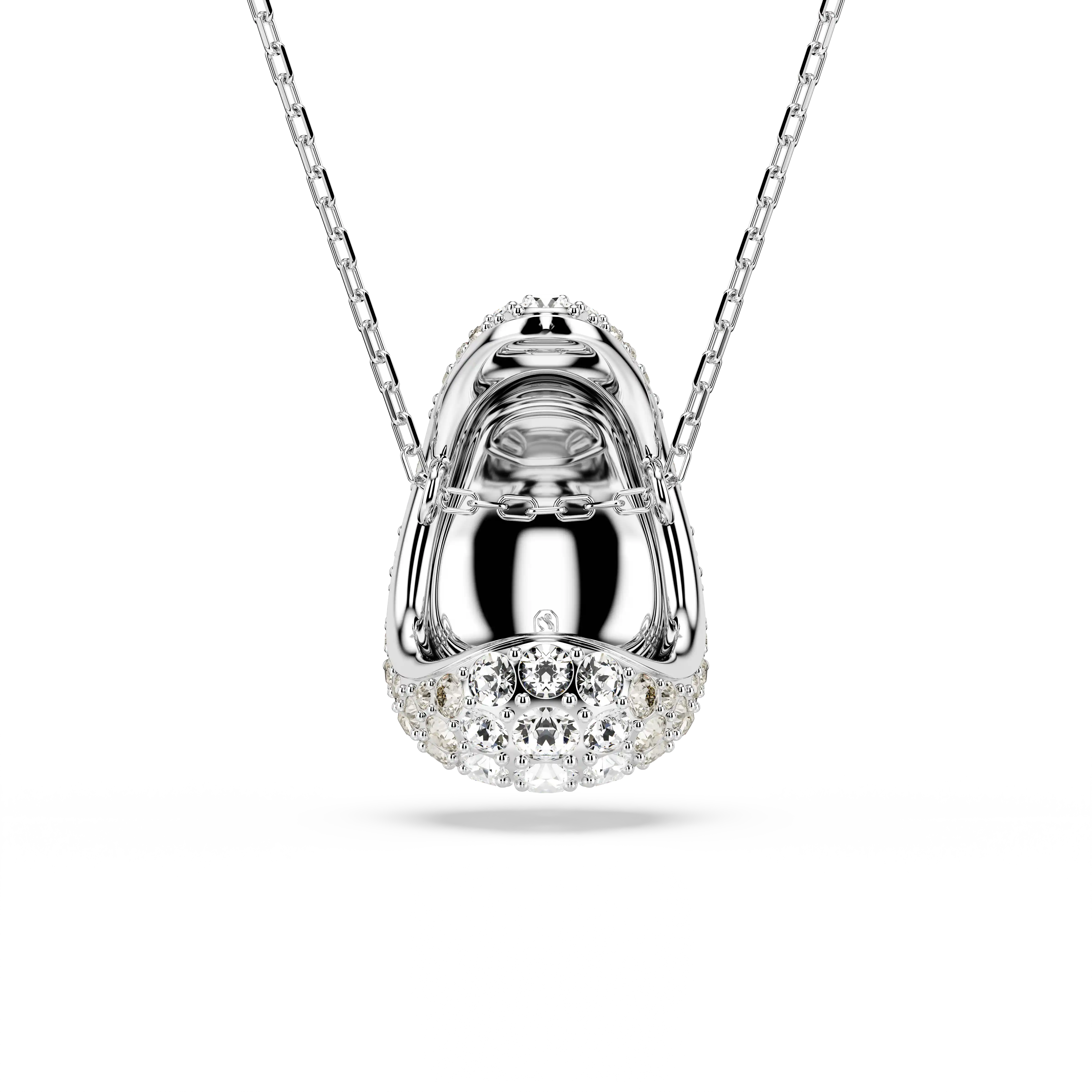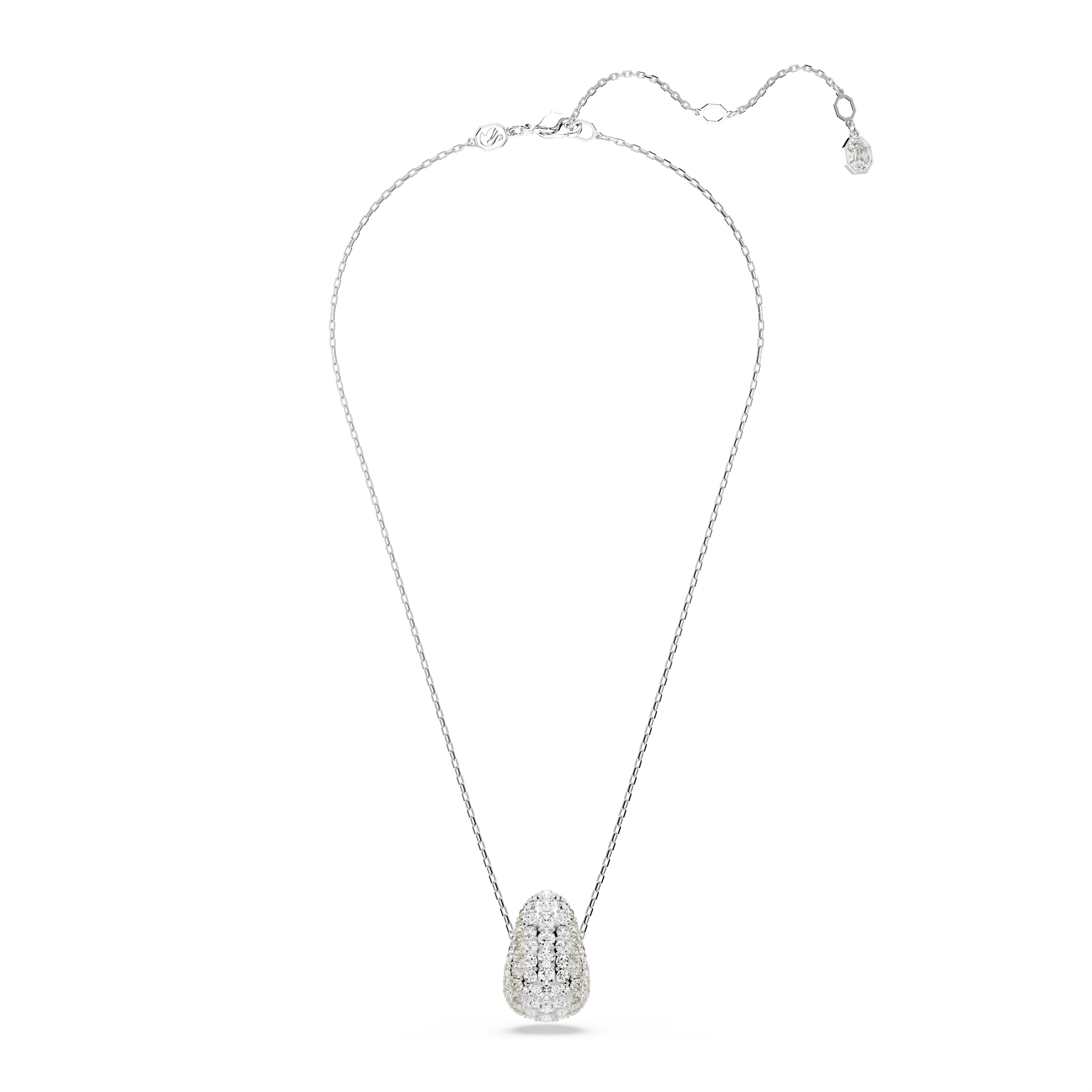 An exquisite example of Swarovski savoir-faire,this Sublima pendant is a powerful centerpiece for any outfit. Suspended from an elegant chain,the rhodium plated motif features a domed metal base for added volume,covered with a pavé of clear crystals. The Meteora pattern,made up of different-sized crystals,dazzles with mesmerizing effect. Wear with similar Sublima pieces to make waves.