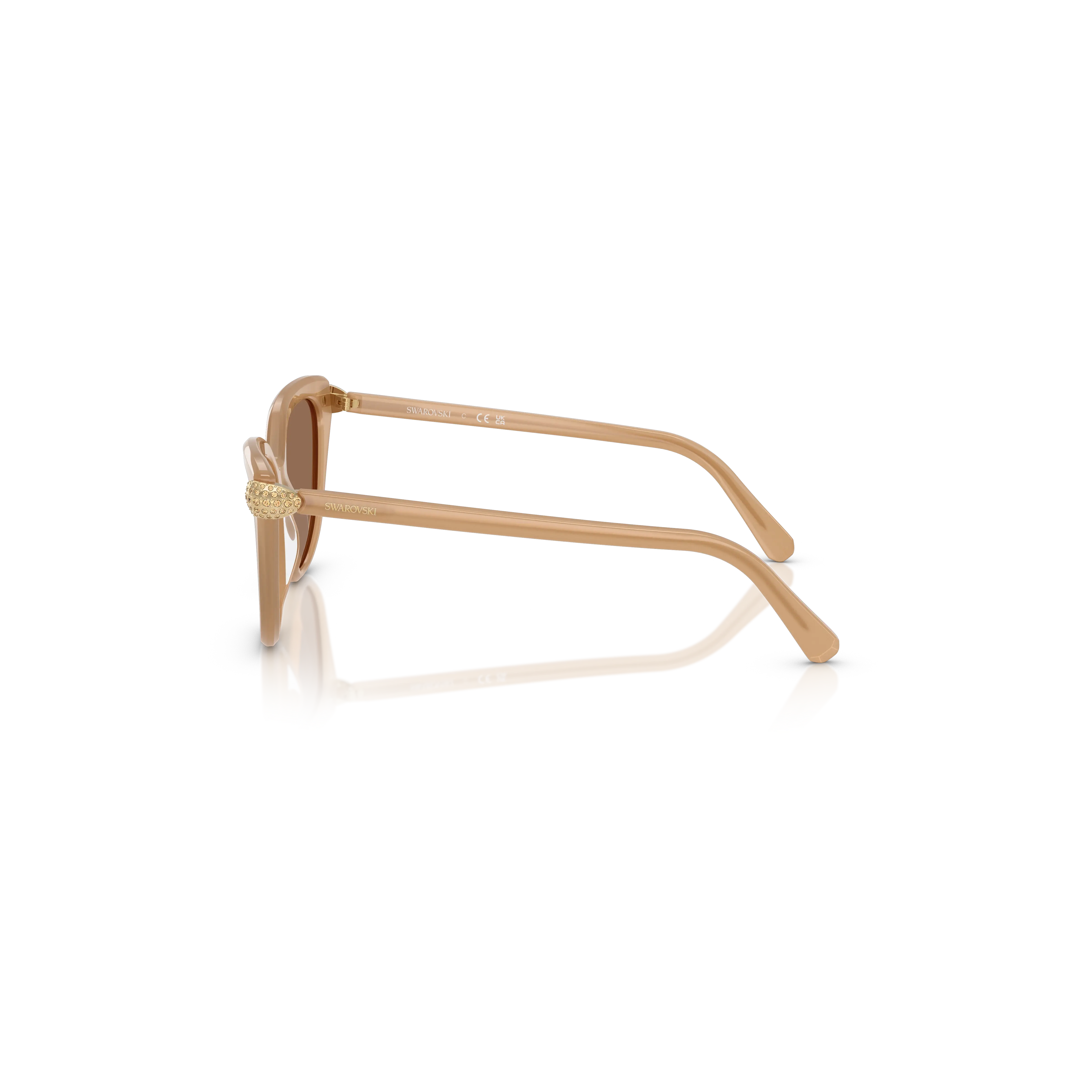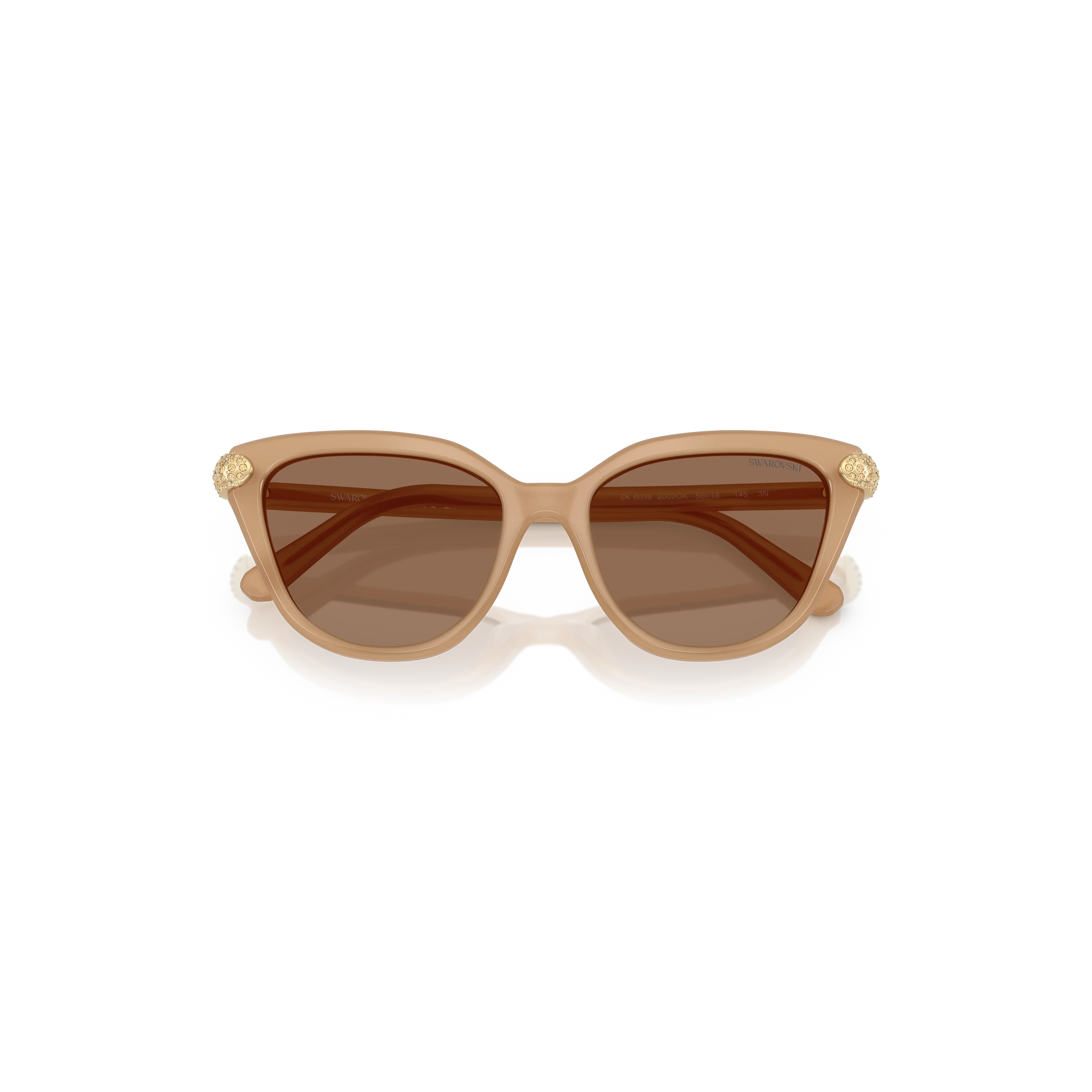 These oversized Swarovski sunglasses are an ideal way to accentuate your radiance. Inspired by the Sublima jewelry family,the cat-eye frames are presented in a milky beige color,and feature solid caramel lenses along with gold-tone crystals on each temple. Wear them on sunny days with your choice of Sublima jewelry.
