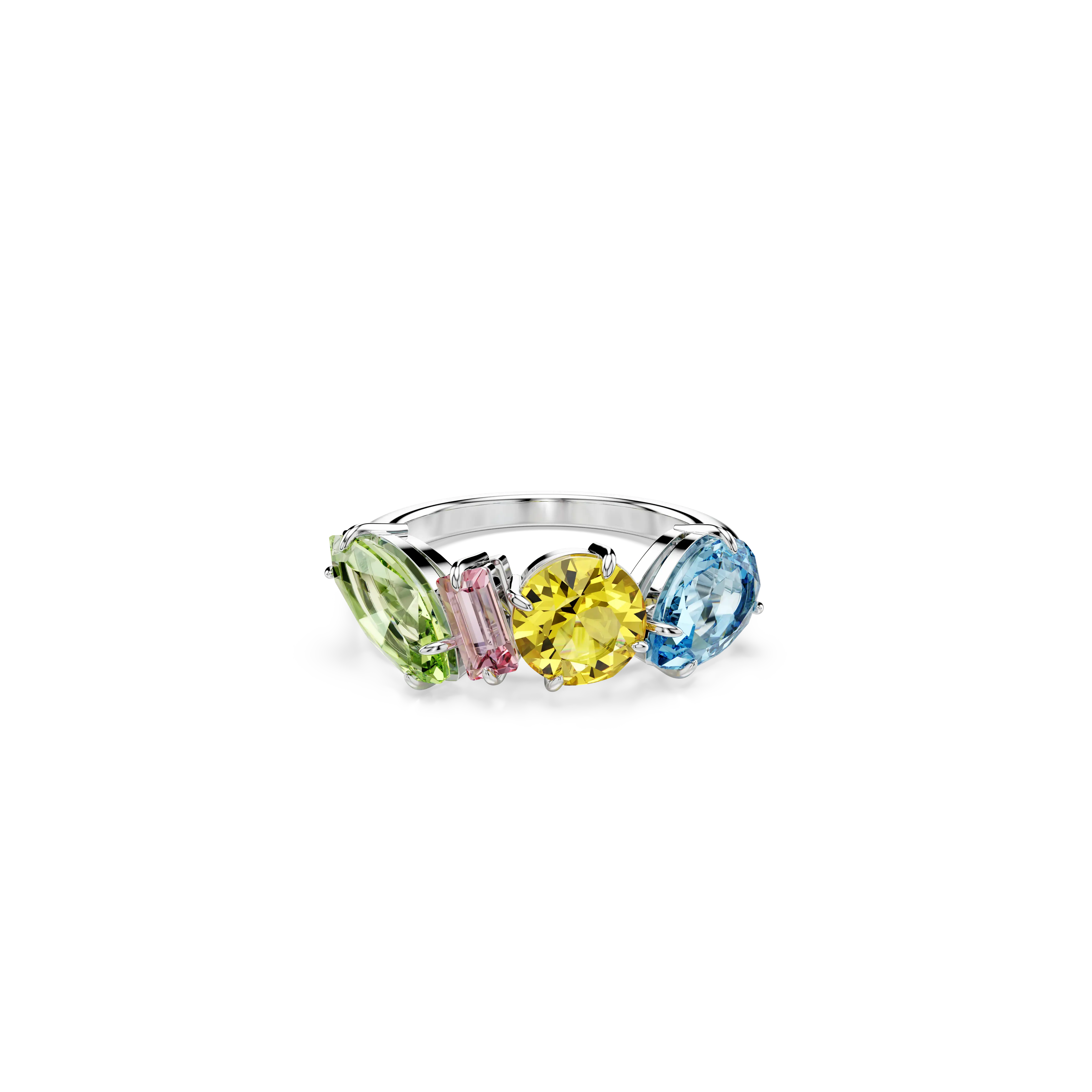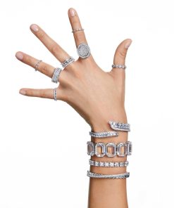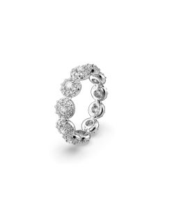 Channel elegance with this rhodium plated ring from the Una family. Inspired by fine jewelry techniques,this sophisticated design shines bright like the stars with round-cut stones and eye-catching pavé embellishment. Why not gift to yourself or a loved one?