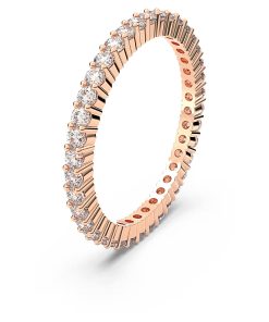 This Matrix Vittore ring is ideal for a subtle touch of glitter. It combines the warm pairing of clear round stones with a rose gold-tone finish,giving you a look that is fiery and luxurious. Designed to shine on all sides,you can stack this jewelry with other styles,such as an eye-catching cocktail ring for an effective contrast.