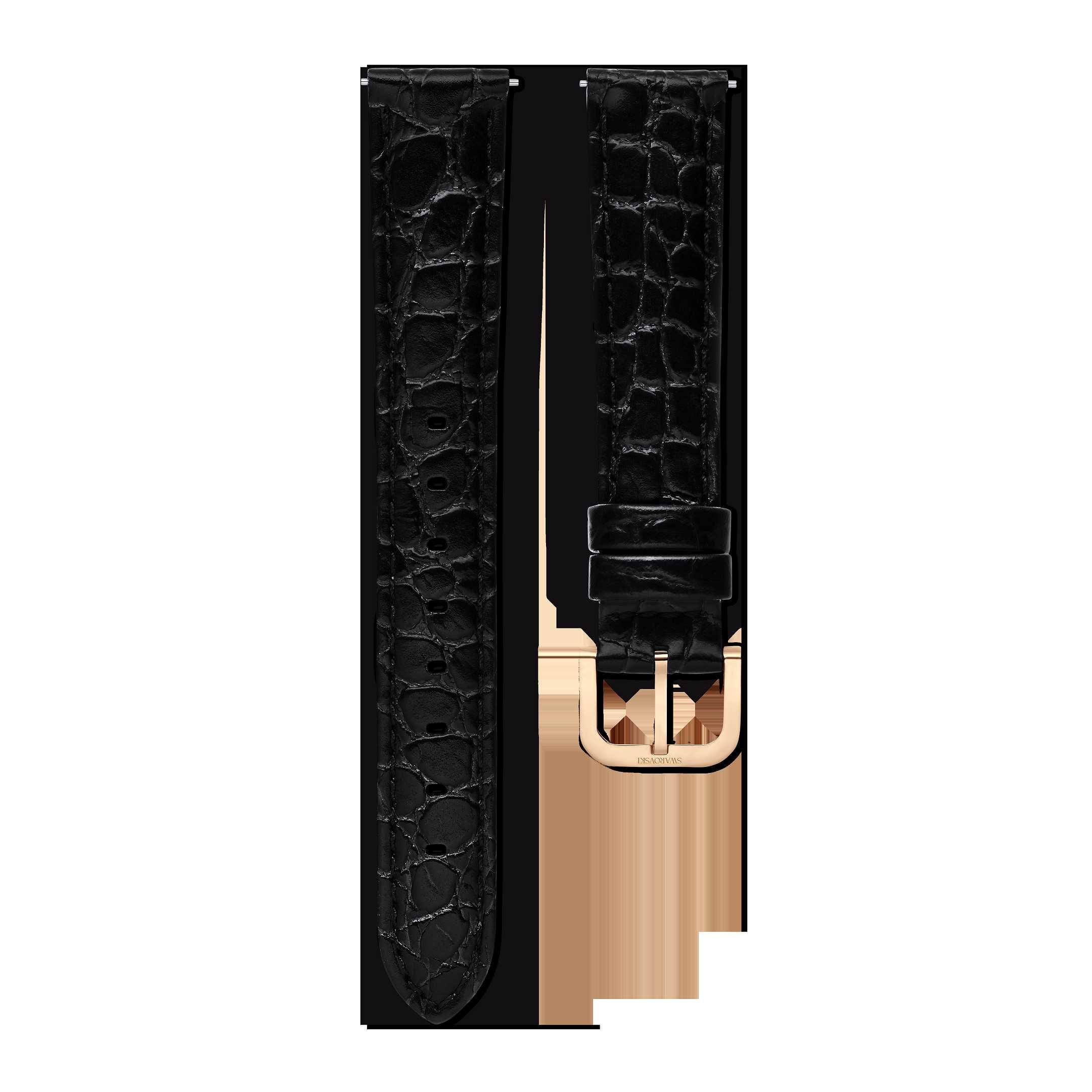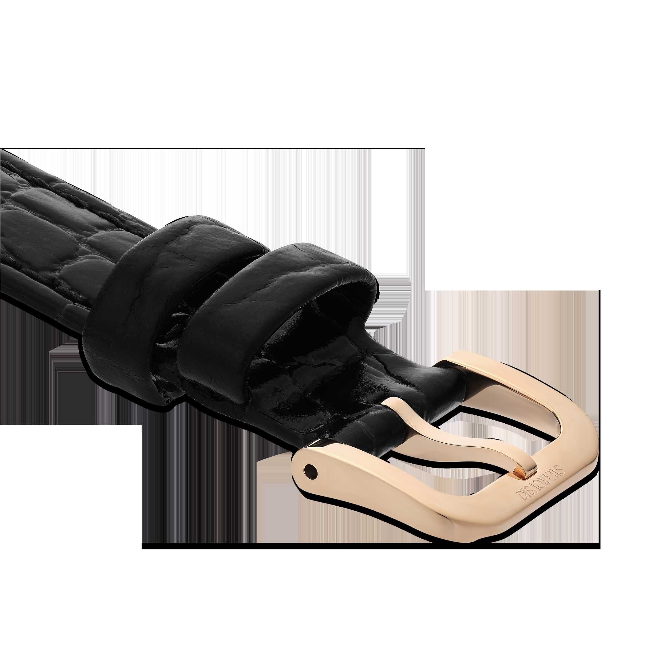 Watch strap 13 mm (0.51") width/Leather/Black/Rose gold-tone finish